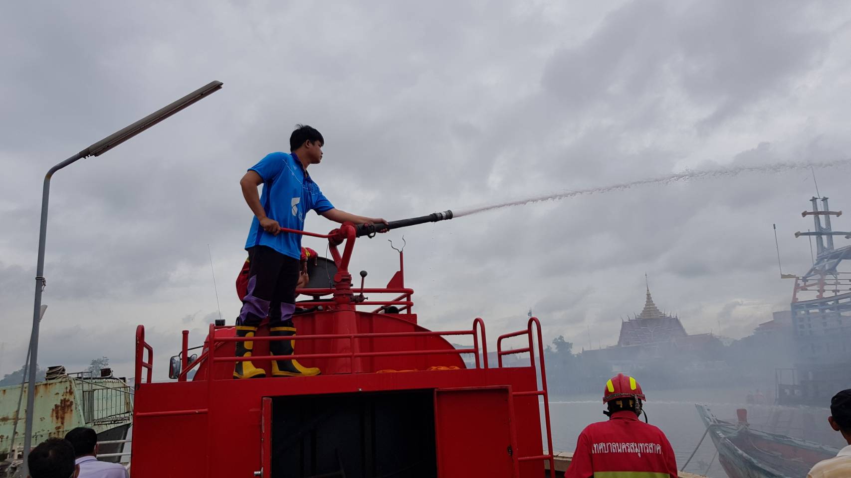 เมื่อเวลาประมาณ 10.30 น. ของวันที่ 15 มิถุนายน 2563 ศูนย์วิทยุสถานีตำรวจภูธรเมืองสมุทรสาครได้รับแจ้งมีเหตุเพลิงไหม้เรือประมงพาณิชย์ ที่จอดซ่อมบำรุงรักษา อยู่บริเวณท่าเรือวัดแหลมสุวรรณาราม ต.ท่าฉลอม อ.เมือง จ.สมุทรสาคร จึงได้ประสานเทศบาลนครสมุทรสาคร พร้อมด้วยเทศบาลตำบลท่าจีน ให้นำรถน้ำดับเพลิงเข้าระงับเหตุ และแจ้งให้ พ.ต.ต.วินัย แพทยารักษ์ สารวัตรสอบสวน สภ.เมืองสมุทรสาคร เข้าตรวจสอบ โดยที่เกิดเหตุพบเพลิงกำลังลุกไหม้ขึ้นในส่วนชั้นบนของเรือที่เป็นห้องควบคุมการเดินเรือ ซึ่งเพลิงได้โหมลุกไหม้อย่างรุนแรง เจ้าหน้าที่ต้องใช้น้ำเข้าช่วยกันฉีดสกัดนานราว 15 นาที จึงสามารถควบคุมเพลิงให้สงบลงได้ แต่ไฟก็ได้เผาผลาญด้านท้ายเรือให้เสียหายเกือบทั้งหมด ส่วนเจ้าของเรือทราบชื่อต่อมาคือ นายศรชัย พันโพธิ์ทอง อยู่บ้านเลขที่ 223/14 หมู่ที่ 4 ต.บางหญ้าแพรก อ.เมือง จ.สมุทรสาคร
