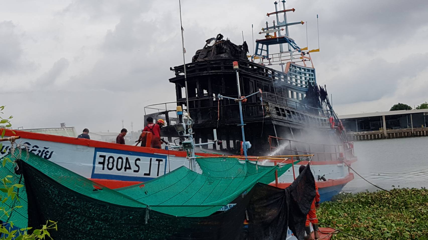 ไฟไหม้เรือประมงพาณิชย์ขณะจอดซ่อมบำรุงรักษา เจ้าของเชื่อถูกลอบวางเพลิง