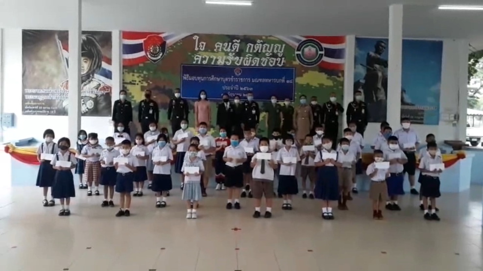 เพื่อเป็นเยาวชนที่ดีของสังคม ของประเทศชาติต่อไป พร้อมกันนี้ ผบ.มทบ.18 และประธานชมรมแม่บ้านมณฑลทหารบกที่ 18 ได้จัดเลี้ยงอาหารว่าง เบเกอรี่ นม น้ำดื่ม ให้กับผู้ที่ได้รับทุนการศึกษาด้วย