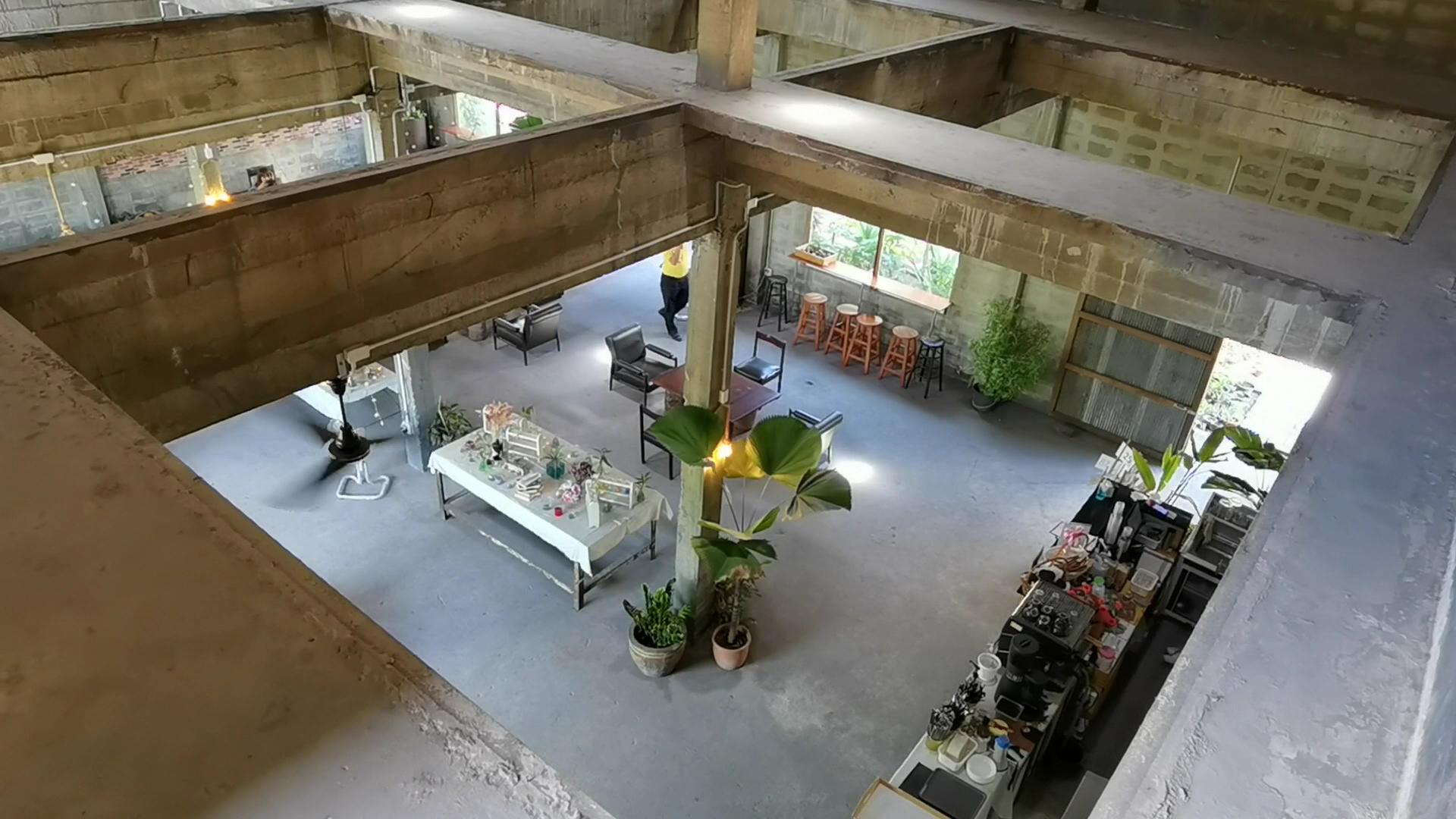 เมื่อเข้าไปข้างใน เปิดเป็นร้านขายกาแฟสมัยใหม่ ไอเดียดีมาก มีมุมให้นั่งรับประทานทั้งเครื่องดื่มและอาหาร ได้แทบจะทุกมุม ทั้งในตัวอาคาร ภายนอกอาคาร และ บนดาดฟ้า ของโรงงานร้าง ที่ปิดกิจการมามากกว่าสามสิบปี ที่สอดคล้องกับราชบุรีเมืองอาร์ท ซึ่งภายในโรงงานมีโครงสร้างเดิมเป็นลักษณะโดมสูงและยังคงมีซากของเครื่องจักรขนาดใหญ่ที่ไม่มีการเคลื่อนย้ายแต่อย่างใด ยังคงสภาพเดิมทุกอย่าง ถูกปรับให้เป็นมุมสำหรับถ่ายภาพ เมื่อเดินเข้าไปภายในร้าน ชั้น 1 เป็นโซนสำหรับนั่งรับประทานอาหาร จิบกาแฟ ถูกตกแต่งใหม่ดูโมเดิร์นๆ แต่ก็มีความเป็นอาร์ทมีมุมให้เซลฟี่แบบทุกซอกทุกมุม ส่วนชั้น 2 จะเป็นโซนคาน ทางเจ้าของร้านสามารถให้เข้าไปถ่ายภาพได้ และไม่สามารถนั่งรับประทานอาหารหรือเครื่องดื่มได้ เพราะเป็นพื้นที่อันตราย และ ชั้น 3 โซนดาดฟ้า ที่ทางร้านได้จัดโต๊ะไว้ให้วางอาหารเครื่องดื่ม และมีเก้าอี้ผ้าบริการ ให้สามารถนั่งรับประทานอาหารและเครื่องดื่มชม พระอาทิตย์ตก และถ่ายภาพมุมปล่องโครงงาน เป็นมุมยอดฮิตและสวยมาก