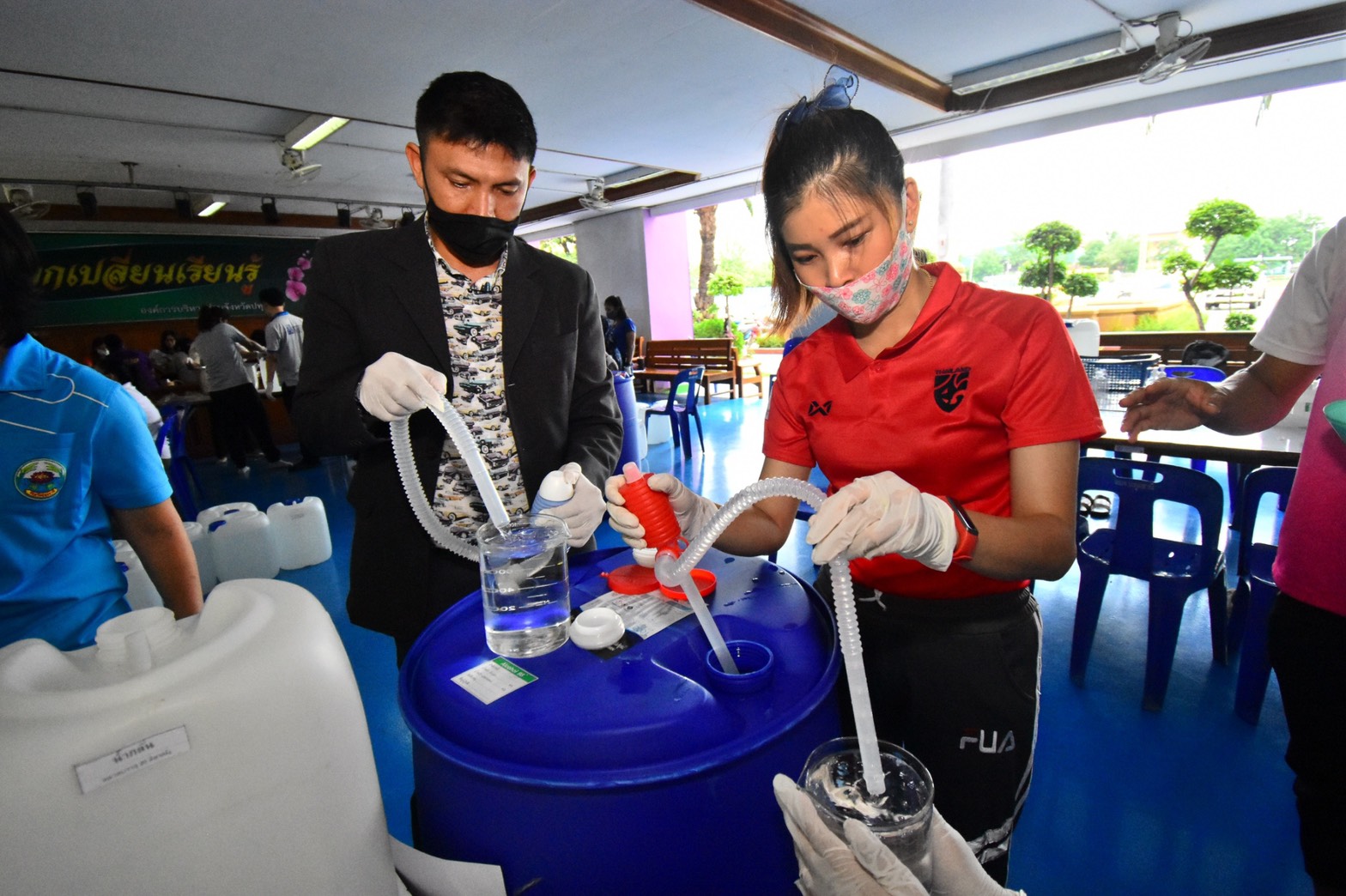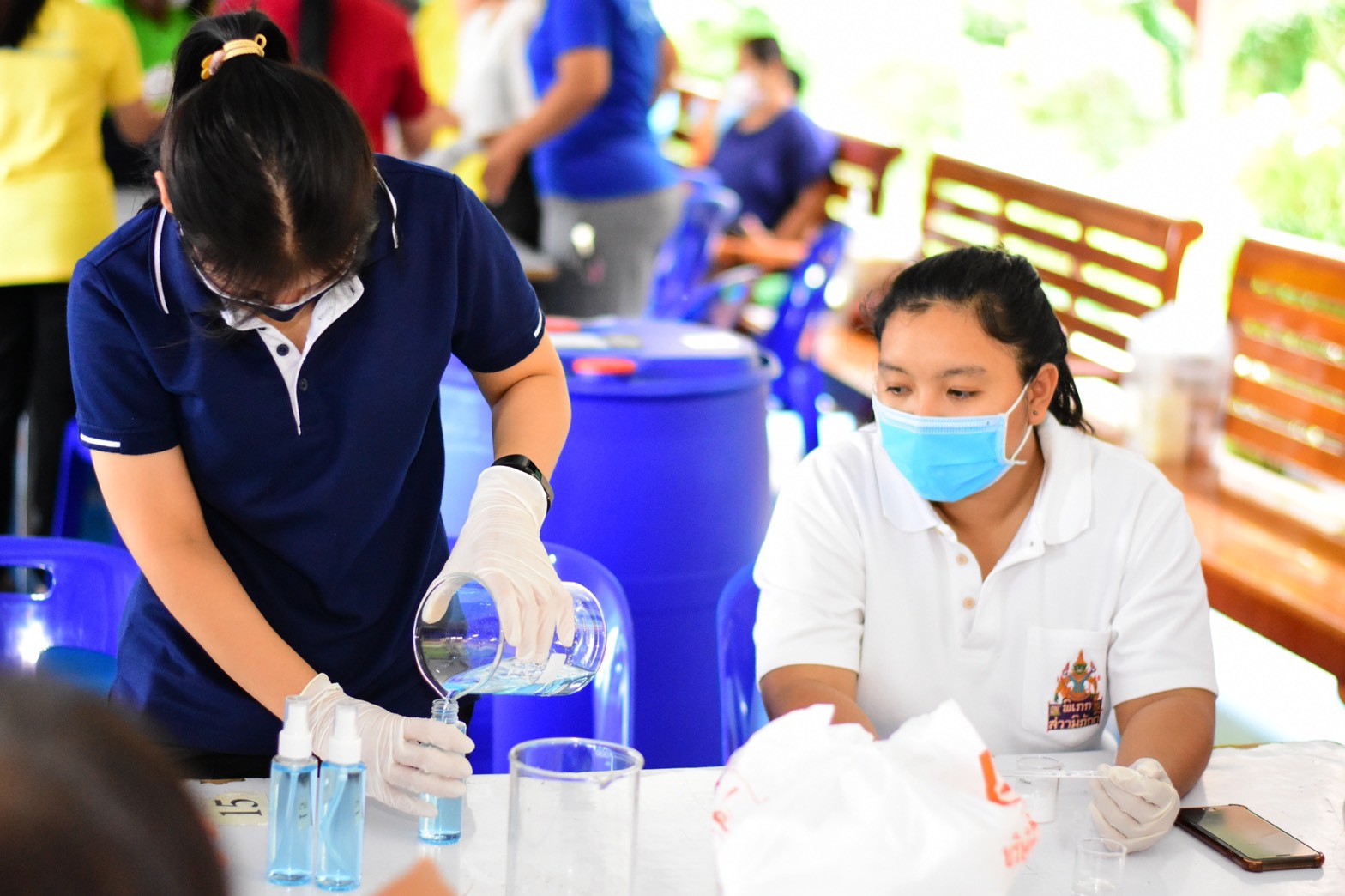 ครู รร.สามโคกปทุมธานีแจ๋วผลิตเจลแอลกอฮอล์และสเปรย์แอลกอฮอล์เองต้นทุนซีซีละ 10 สตางค์รองรับการเปิดภาคเรียน