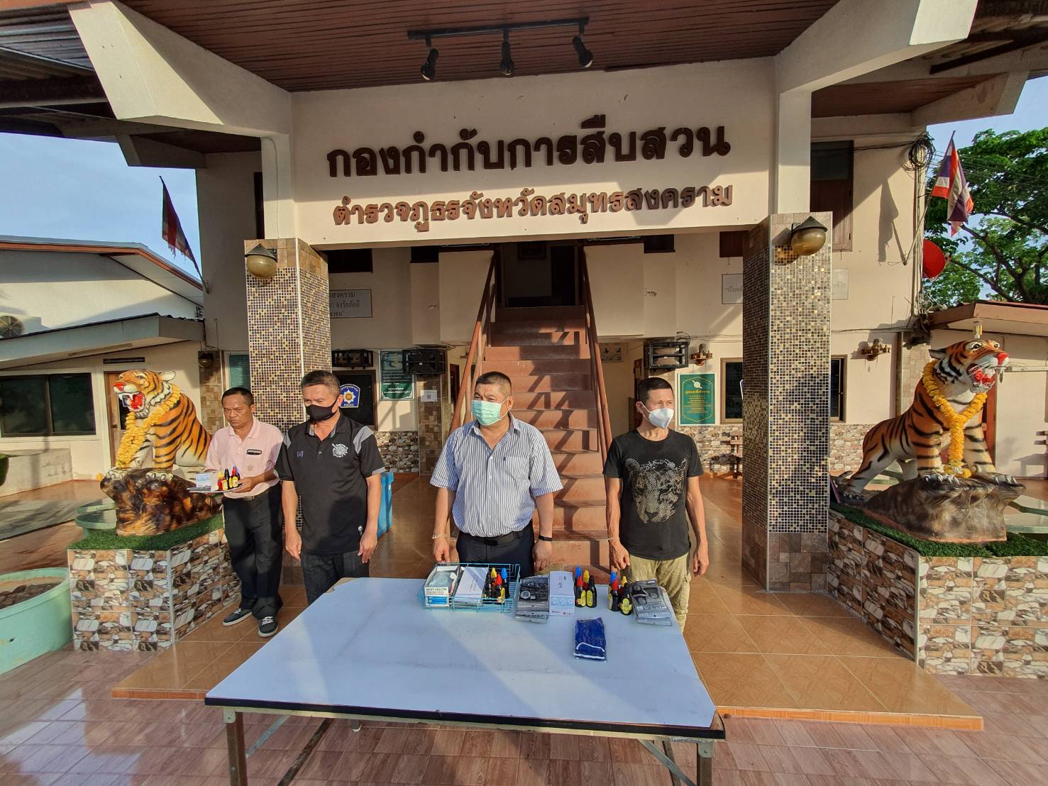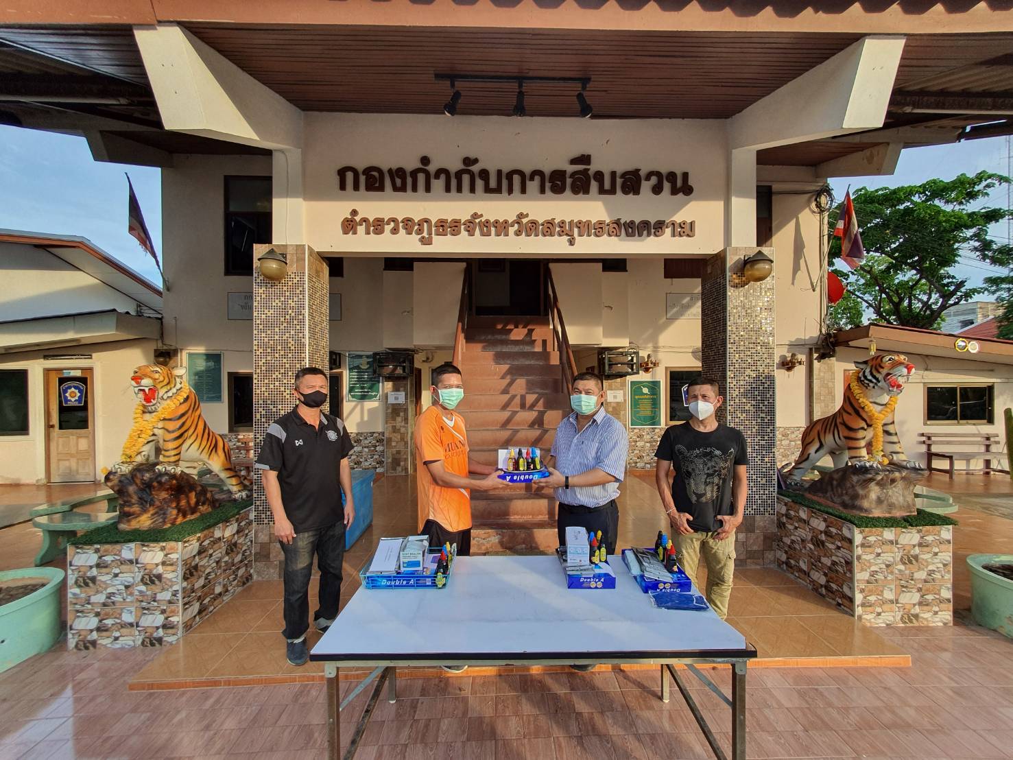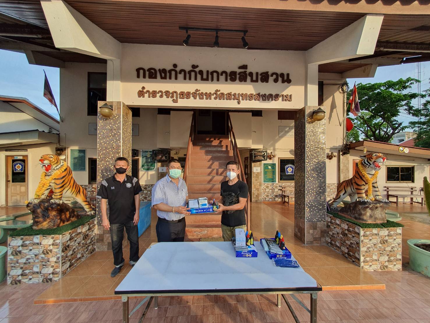 เมื่อวันที่ 23 มิถุนายน 2563 พันตำรวจเอก ธงชัย เนตรสขาวัฒน์ ผกก.สส.ภ.จว.สมุทรสงครามพร้อมด้วยข้าราชการตำรวจ ในสังกัดกองกำกับการสืบสวนจังหวัดสมุทรสงคราม ได้ร่วมกันทำความสะอาดและปรับภูมิทัศน์สถานที่ทำการกองกำกับการสืบสวนฯ ตามโครงการ 5 ส. เพื่อให้บริเวณกองกำกับการสืบสวนฯดูสะอาดและเรียบร้อยให้มากขึ้น และหลังจากเสร็จสิ้นภารกิจทำ 5 ส. แล้วพันตำรวจเอก ธงชัย เนตรสขาวัฒน์ ผกก.สส.ภ.จว.สมุทรสงคราม ได้ทำการแจกหมึกพิมพ์ 4 สี และ กระดาษ A 4 , พร้อมด้วยหน้ากากอนามัย และเงินบำรุงให้กับเจ้าหน้าที่ชุดปฏิบัติงานสืบสวนภ.จว.สมุทรสงครามในแต่ละชุดเพื่อเป็นขวัญกำลังใจ ในการปฏิบัติหน้าที่ต่อไป