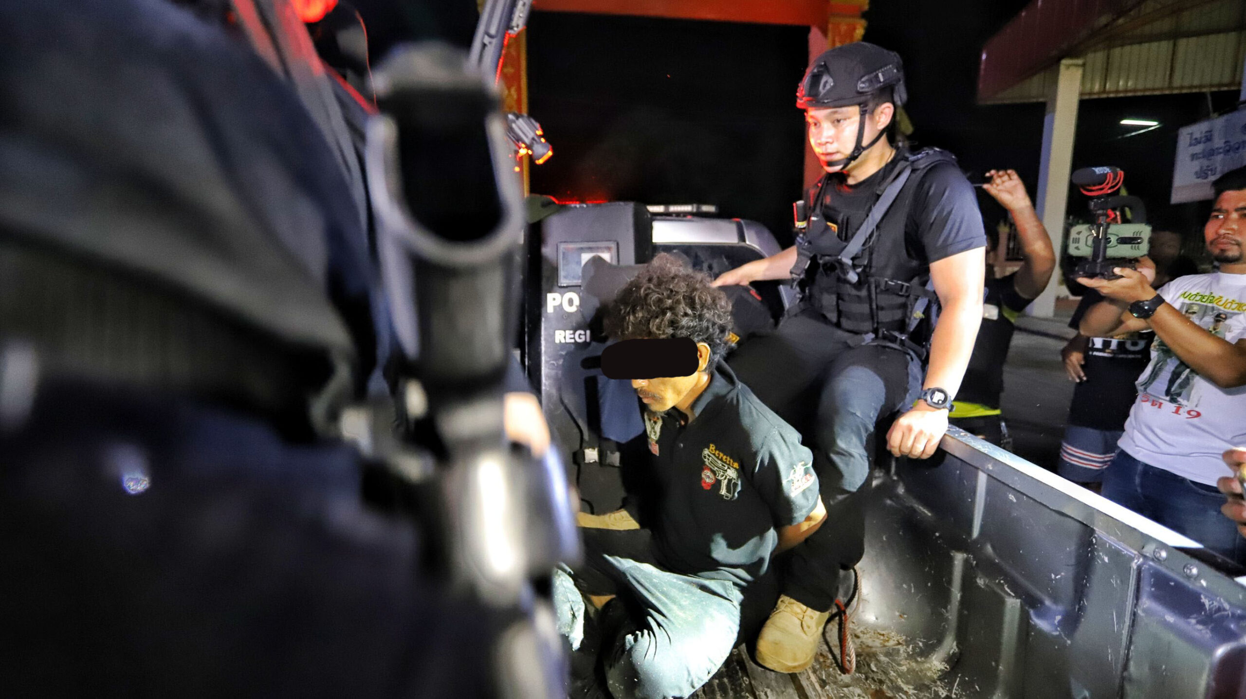 ต่อมาเวลา 01.45 น. พลตำรวจโทอำพล บัวรับพร ผู้บัญชาการตำรวจภูธรภาค1 ลงพื้นที่ อ.หนองแคบริเวณวัดคลองห้า ม.9 ต.หนองโรง อ.หนองแค จ.สระบุรี เพื่อวางแผนการจับกุมไล่ล่าคนร้ายกระทั่งเวลา 02.00 น. ได้พ่อแม่และญาติเกลี้ยกล่อมคนร้ายซึ่งหนีไปอยู่บ้านญาติ เขต ต.นพรัตน์ อ.หนองเสือ จ.ปทุมธานี เป็นเขตติดต่อ อ.หนองแค ให้เข้ามอบตัว โดยผู้เป็นแม่ได้พูดเกลี้ยกล่อมลูกชายให้เข้ามอบตัว แต่คนร้ายไม่ยอมมอบตัว จนผู้เป็นพ่อช่วยเจรจาจนคนร้ายยอมมอบตัวพร้อมอาวุธปืนขนาด 11 มม. พร้อมพร้อมแม็กกาซีน