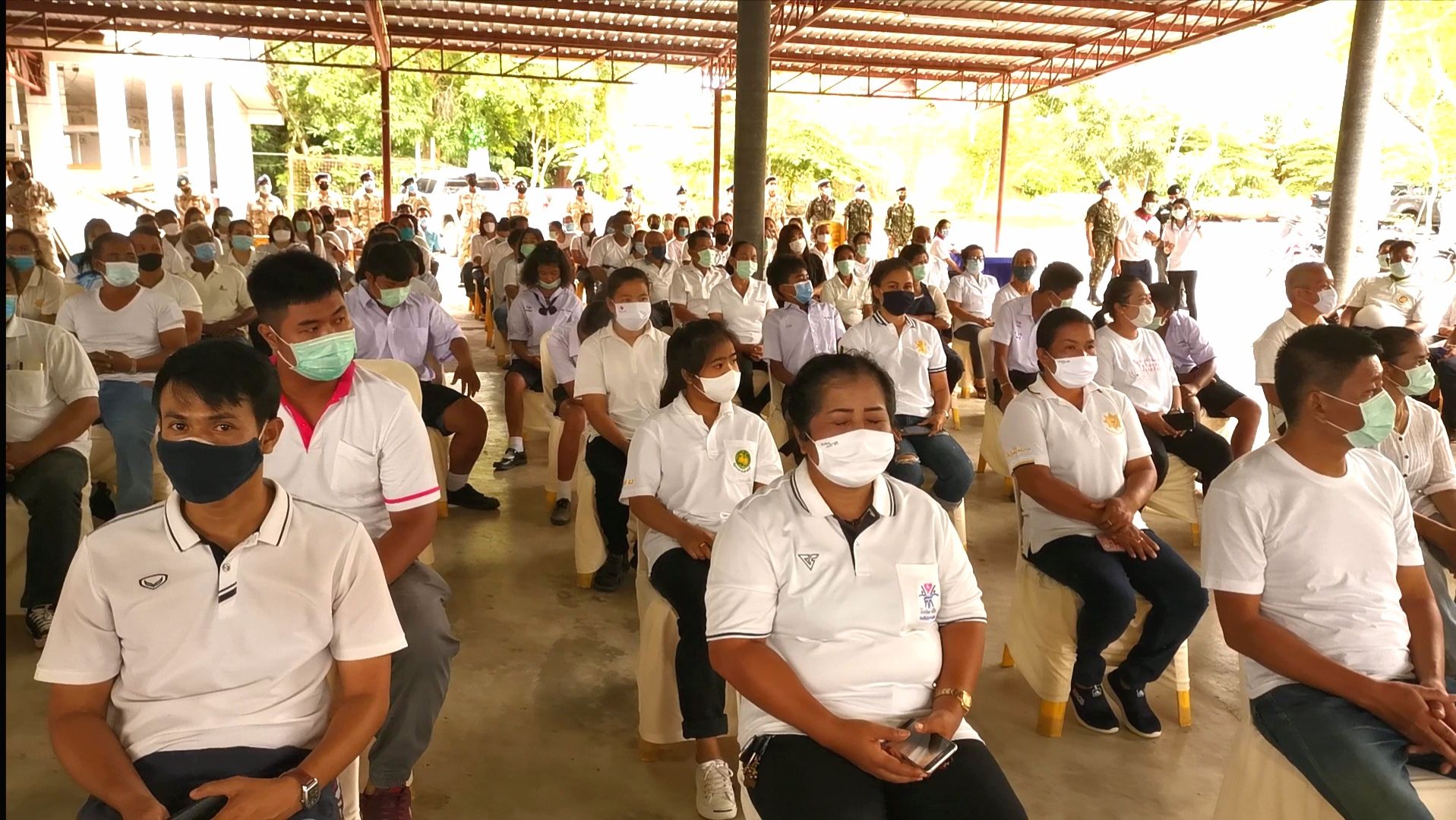 โดยมี นายเลียบ อ่อนเอียด ปลัดอาวุโส อำเภอทับสะแก นายบรรจงศักดิ์ โพธิ์ทอง ปลัดฝ่ายความมั่นคง พ.ต.ท.อาวัศ รักยงค์ รอง ผกก.ป.สภ.ทับสะแก นายบังเอิญ พึ่งโพธิ์ทอง นายกอบต.อ่างทอง นายเชิดชาย สุธรรมารักษ์ สาธารณสุขอำเภอทับสะแก นายสมพร สุดพิมศรี กำนันตำบลอ่าวทอง พร้อม กำนัน ผู้ใหญ่บ้าน ทีมวิทยากรและชาวบ้านหมู่ 6 บ้านหนองหอยร่วมกิจกรรม