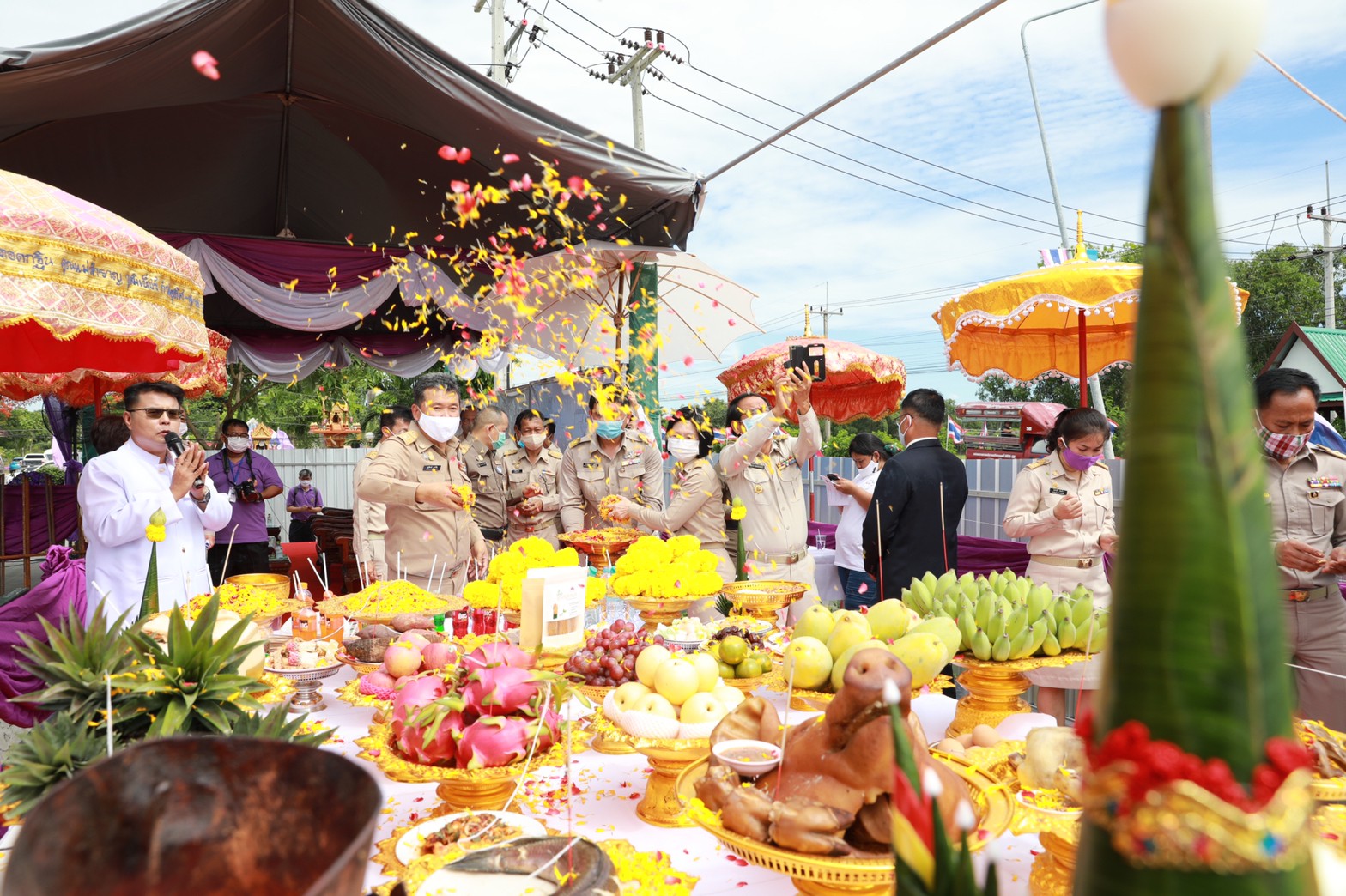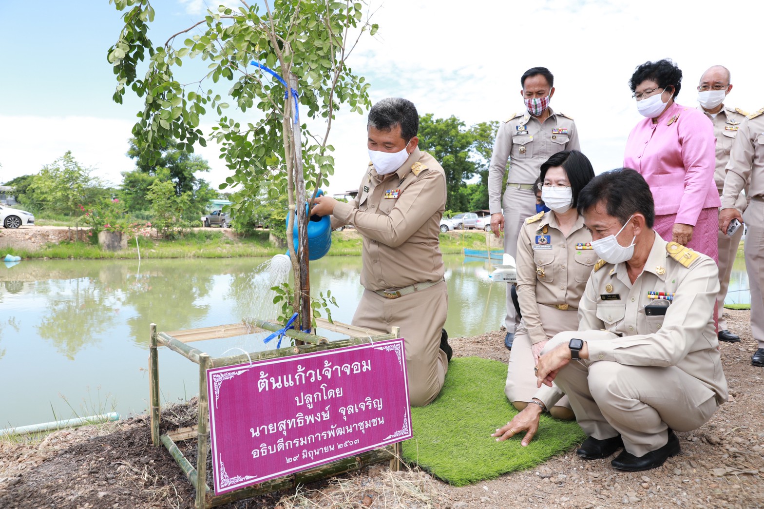 วันนี้ 29 มิ.ย. 63 นายสุทธิพงษ์ จุลเจริญ อธิบดีกรมการพัฒนาชุมชน (พช.) กระทรวงมหาดไทย เป็นประธานในพิธีทำบุญเพื่อความเป็นสิริมงคล อาคารศูนย์การเรียนรู้การพัฒนาอาชีพอย่างยั่งยืนในพระราชดำริ สมเด็จพระกนิษฐาธิราชเจ้า กรมสมเด็จพระเทพรัตนราชสุดาฯ สยามบรมราชกุมารี ณ ที่ทำการองค์การบริหารส่วนตำบลพระยาบันลือ อำเภอลาดบัวหลวง จังหวัดพระนครศรีอยุธยา โดยมี นายจักรกฤษณ์ ทองทับ เจ้าหน้าที่งานในพระองค์ นายชวลิต ธูปตาก้อง ที่ปรึกษาผู้ตรวจการแผ่นดิน นางสาวเรไร แย้มสะอาด ผู้อำนวยการสำนักเครือข่ายและการมีส่วนร่วม นางสาวนุชนาถ ประทีปธีรานันต์ รองผู้ว่าราชการจังหวัดพระนครศรีอยุธยา นายชนาธิป โคกมณี นายอำเภอลาดบัวหลวง พร้อมด้วยหัวหน้าส่วนราชการ องค์กรปกครองส่วนท้องถิ่น และประชาชนจำนวนมากเข้าร่วมพิธี โดยมีอาจารย์โสภณ สืบสม ประธานมูลนิธิบ้านจิตธรรมดี ทำพิธีบวงสรวง และอาจารย์ประดิษฐ์ รัตนโกมล ประธานคณะกรรมการอิสลามจังหวัดพระนครศรีอยุธยา ทำพิธีดุอา