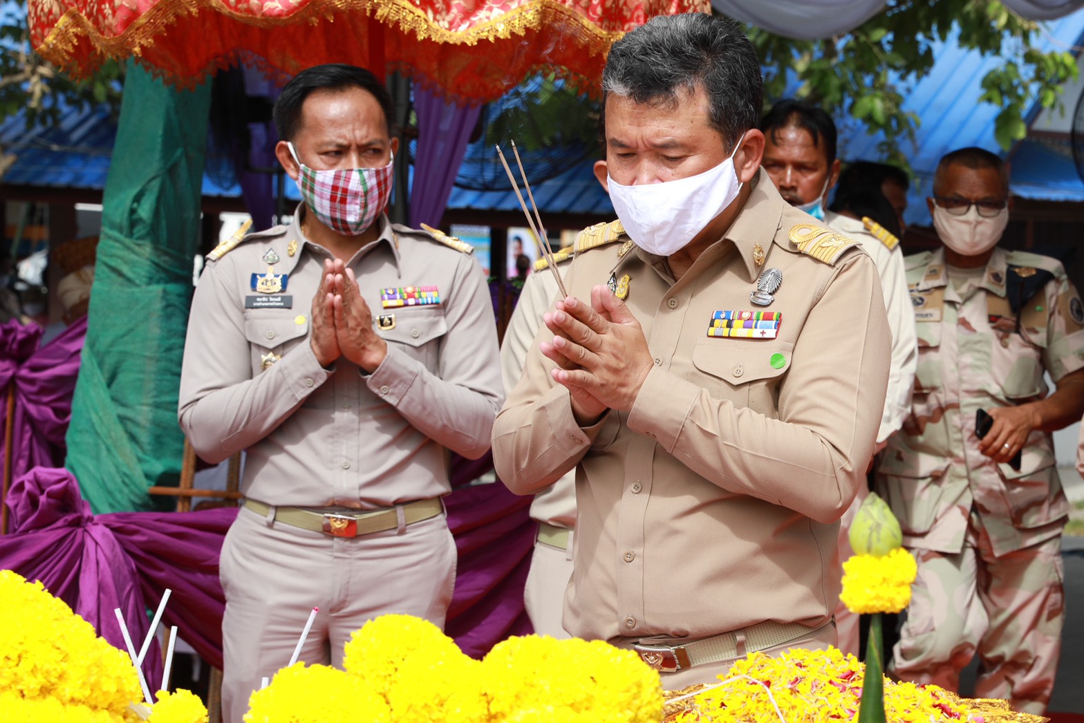 “กรมการพัฒนาชุมชนได้น้อมนำแนวทางที่สมเด็จพระกนิษฐาธิราชเจ้า กรมสมเด็จพระเทพรัตนราชสุดาฯ สยามบรมราชกุมารีทรงพระราชทานไว้ เพื่อพัฒนาอาชีพประชาชนอย่างยั่งยืน โดยผมได้นำทีมงานจากกรมการพัฒนาชุมชน ไปศึกษาเรียนรู้ที่ อบต.โก่งธนู จังหวัดลพบุรี ซึ่งเป็นต้นแบบในการสร้างความมั่นคงทางด้านอาหาร ที่พระองค์พระราชทานผ่านมูลนิธิชัยพัฒนา และศูนย์พัฒนาพันธุ์พืชจักรพันธ์เพ็ญศิริ อีกทั้งยังทรงเสด็จพระราชดำเนินไปเยี่ยมด้วยพระองค์เอง ผมจึงขอเชิญชวนให้พี่น้องทุกคนร่วมกันปลูกพืชผักสวนครัว เพื่อสร้างความมั่นคงด้านอาหาร โดยในขณะนี้เราดำเนินการมาได้ 89 วัน และมีเปอร์เซ็นต์การร่วมปลูกผักทั้งหมดคือ 95.6 % จาก 12,976,932 ครัวเรือนทั่วประเทศ ทำให้เรามีอาหารปลอดภัยไว้รับประทาน อาหารที่ไม่มีสารพิษไม่มียาฆ่าแมลง และทำให้ครัวเรือนประหยัดรายจ่าย ซึ่งผู้ที่ทำจะต้องทำด้วยจิตใตที่แน่วแน่ มุ่งมั่น และเชื่อมั่นในสิ่งที่ทำ โดยกรมการพัฒนาชุมชนชักชวนผู้นำในแต่ละจังหวัด รวมถึงข้าราชการกรมการพัฒนาชุมชน มาช่วยกันปลูกและช่วยเชิญชวนพี่น้องประชาชน ซึ่งปลูกกันได้ถึงครัวเรือนละกว่า 20 ประเภท และความสำเร็จนี้ก็เกิดขึ้นได้เพราะเราทุกคนร่วมมือกัน โดยในช่วงสถานการณ์การแพร่ระบาดของเชื้อโควิด-19 ที่ผ่านมา นอกจากจะสามารถนำผลผลิตมารับประทานในครัวเรือนแล้ว ยังแปรเป็นรายได้ได้ด้วย อาทิ ชาวตำบลโก่งธนู ที่ได้นำพืชผักสวนครัวจำนวนมาก ไปขายให้ผู้คนในอำเภอเมืองจังหวัดลพบุรี เป็นเครื่องยืนยันว่าถ้าปลูกกันทุกบ้าน ก็สามารถนำมาแบ่งปัน ขาย และแปรรูปได้”