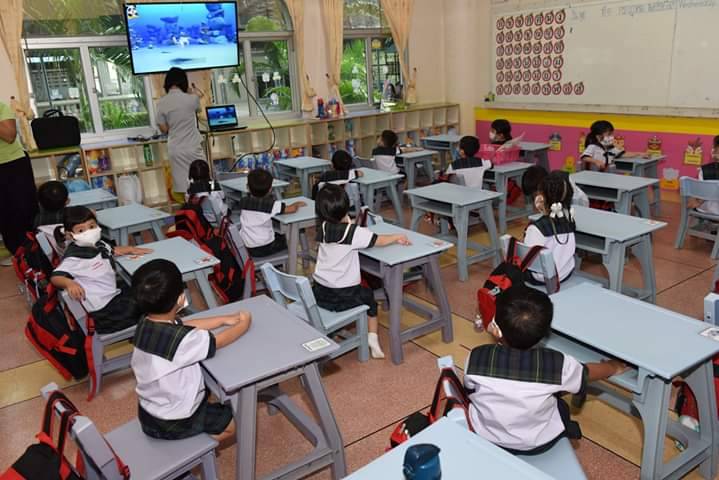 โดยวันนี้เปิดเรียนวันแรก ทางโรงเรียนได้จัดระบบคัดกรองตามหลักสาธารณสุข ทั้งตรวจวัดอุณหภูมิ ด้วยเครื่องแสกนใบหน้า (Face Scan) และวัดอุณหภูมิแบบอินฟราเรด รวมทั้งให้สวมใส่หน้ากากผ้าหรือหน้ากากอนามัย และกดเจลแอลกอฮอล์ล้างมือก่อนเข้าพื้นที่ของโรงเรียน เบื้องต้นยังไม่มีการทำกิจกรรมหน้าเสาธง ส่วนการเรียนการสอน ให้สลับวันคู่วันคี่ ห้องละไม่เกิน 25 คน โดยอีกครึ่งห้องจะต้องเรียนอยู่ที่บ้าน ผ่านระบบออนไลน์ไปพร้อมกับนักเรียนในห้อง เพื่อลดความหนาแน่นภายในห้องเรียน ขณะที่โรงอาหารได้จัดให้เว้นระยะห่างของที่นั่ง มีฉากกั่น และให้เหลื่อมเวลาในการพักกลางวัน