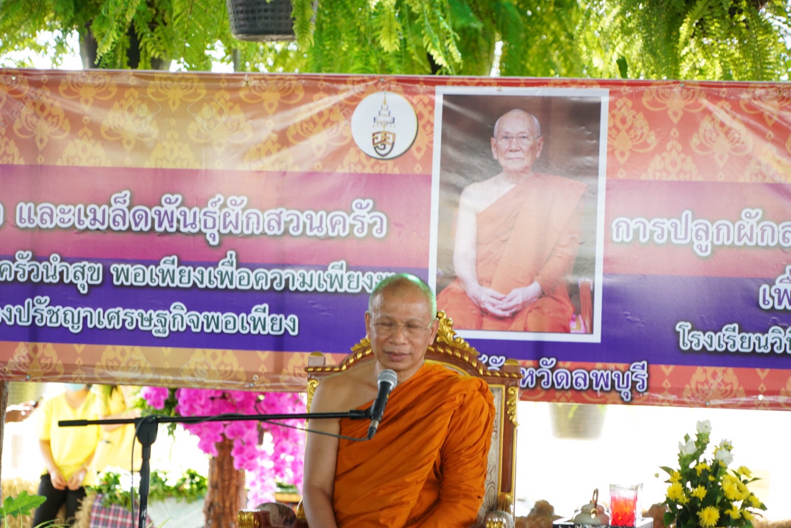 ต่อมา เจ้าประคุณสมเด็จพระมหาวีรวงศ์ เลขานุการ ในสมเด็จพระสังฆราช กรรมการมหาเถรสมาคม ได้เดินทางต่อไปยัง ศูนย์การเรียนรู้ศาสตร์พระราชา โรงเรียนวินิตศึกษา ในพระราชูปถัมภ์ฯ (แห่งที่ 2) อ.เมือง จ.ลพบุรี เป็นประธานสงฆ์พิธีมอบต้นกล้าและเมล็ดพันธุ์ผักสวนครัว วัดสู่ชุมชน ภายใต้โครงการ “สวนครัวนำสุขพอเพียงเพื่อเพียงพอตามแนวทางปรัชญาเศรษฐกิจพอเพียง” ตามพระดำริของสมเด็จพระอริยวงศาคตญาณ สมเด็จพระสังฆราช สกลมหาสังฆริณายก เพื่อช่วยเหลือผู้ได้รับผลกระทบจากโควิด-19 ให้กับคณะสงฆ์จังหวัดลพบุรี จำนวน 30,000 ต้น และเยี่ยมชมแปลงผักสวนครัว วัดสู่ชุมชน โดยมี พระเทพเสนาบดี เจ้าคณะจังหวัดลพบุรี พร้อมพระเถรานุเถระ ดร.วันดี กุญชรยาคง จุลเจริญ ประธานสภาสตรี นายสุปกิต โพธิ์ปภาพันธ์ ผู้ว่าราชการจังหวัดลพบุรี พร้อมผู้แทนจากหน่วยงานต่างๆ ร่วมให้การต้อนรับ