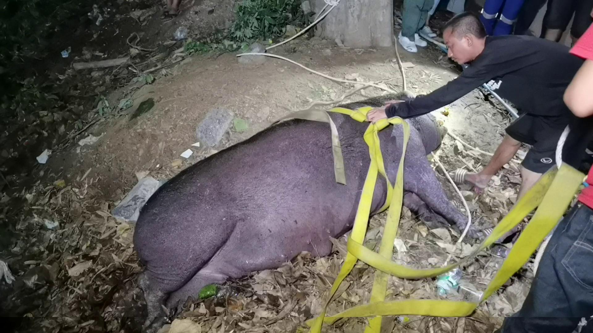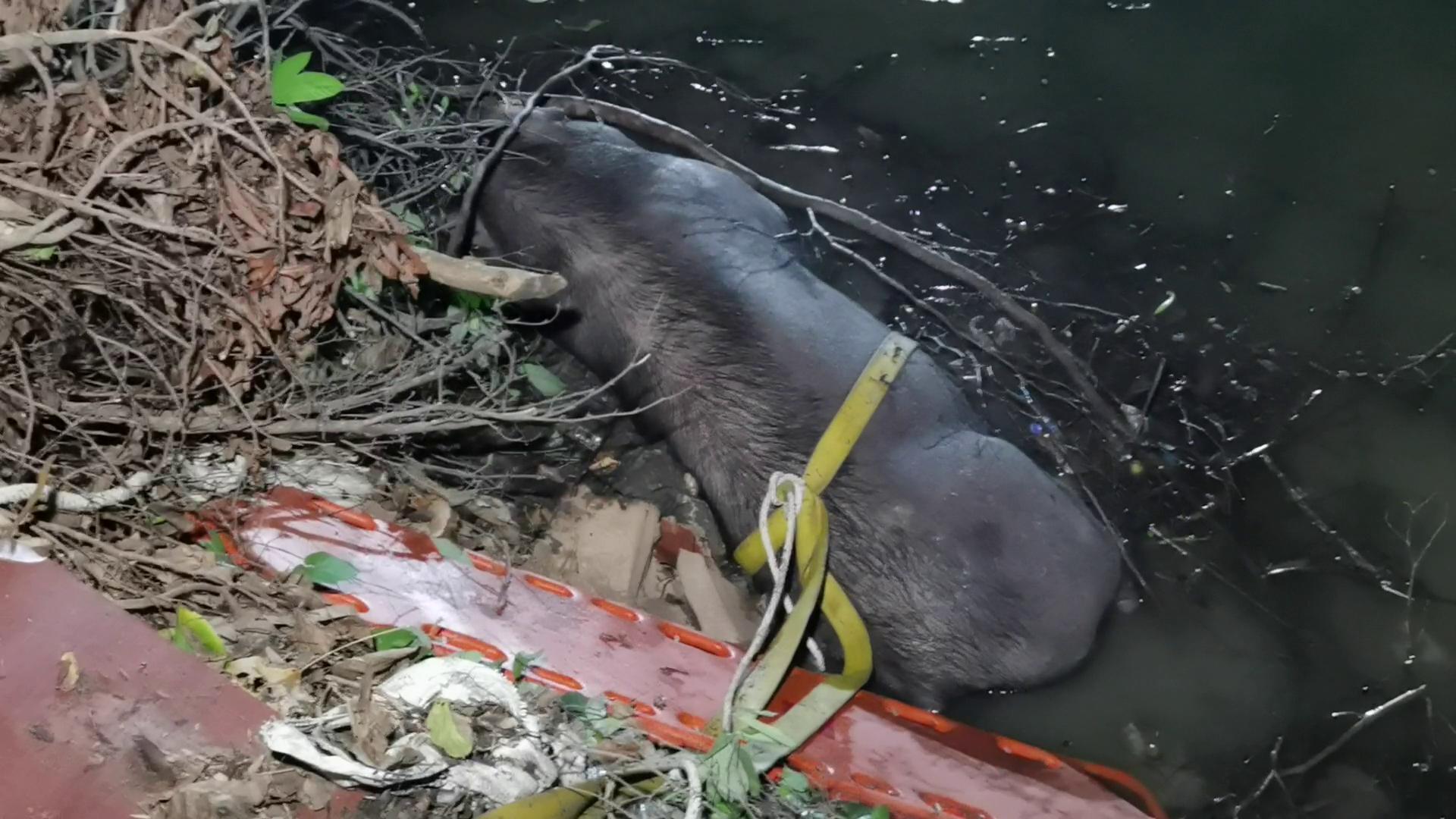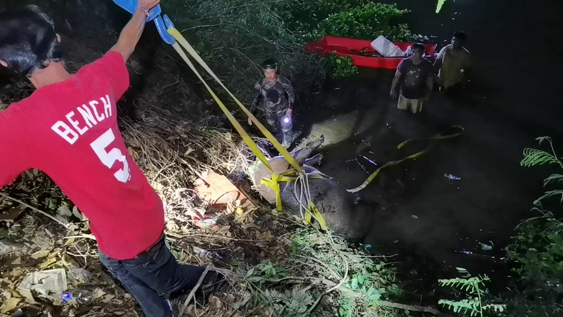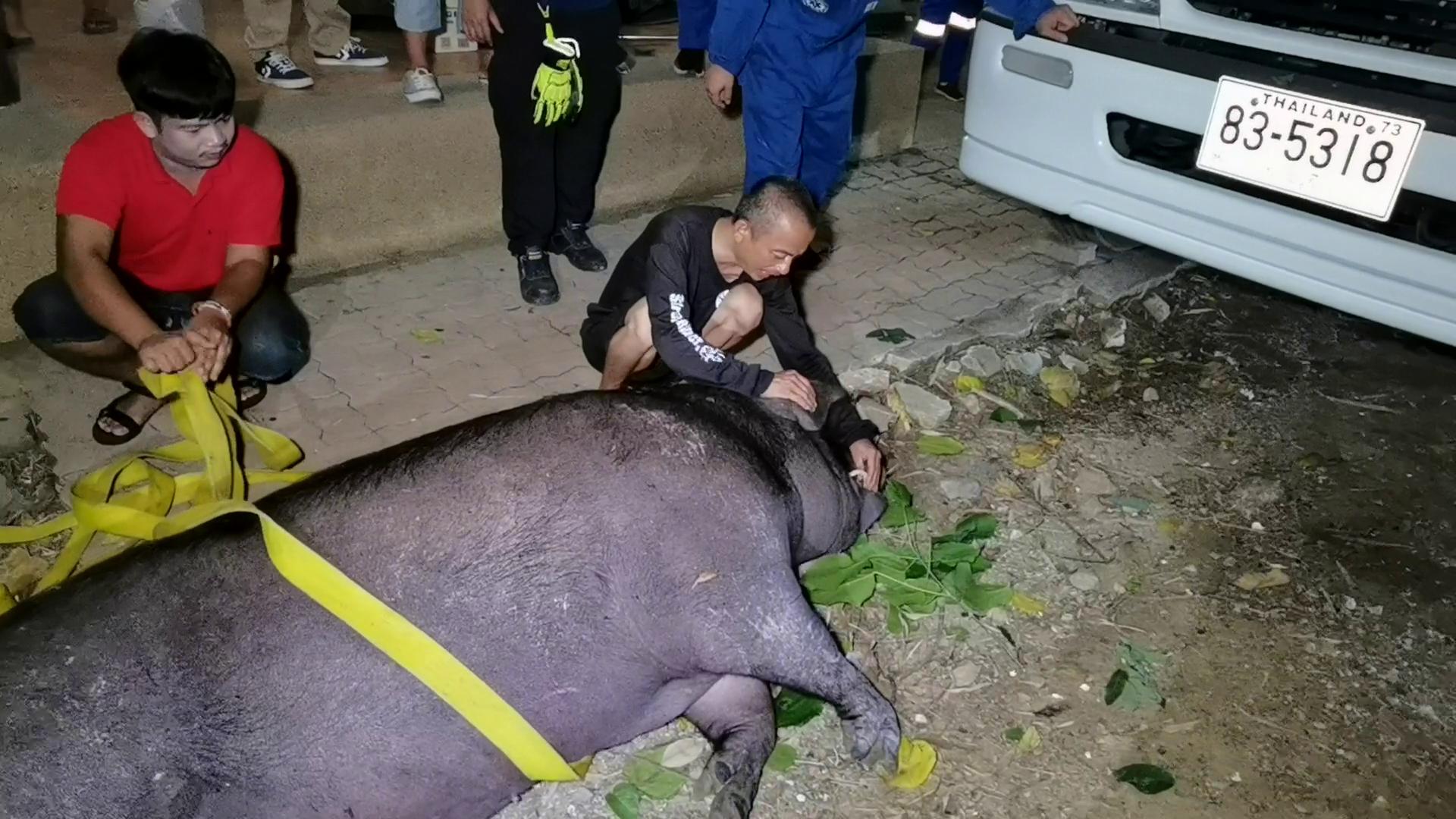 ราชบุรี เร่งช่วยเจ้าอู๊ดหมูป่าวัดที่ไถ่ชีวิตมาหนัก300โลตกลงไปในคลองอย่างทุลักทุเล