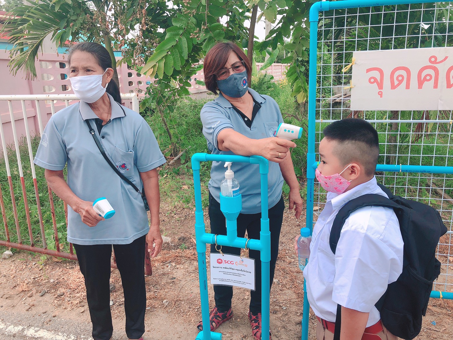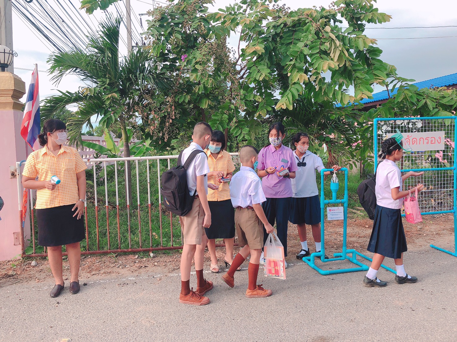 ในการนี้ได้มี อสม. ของ รพ.สต.ท่าผา โดยการนำของนางนิภา เก่งธัญกร ผู้อำนวยการ รพ.สต. ท่าผา ต. ท่าผา อ. บ้านโป่ง จ. ราชบุรี ได้มาร่วมกับครูโรงเรียนวัดดอนเสลาคัดกรองเด็กและผู้ปกครองที่เข้า-ออกโรงเรียน วันนี้เป็นวันที่ 2 ของการเปิดการเรียนการสอน และอสม. ของ รพ.สต. ท่าผาก็จะมาช่วยคัดกรองเช่นนี้ทุกวันในช่วงโรงเรียนเปิดเทอม