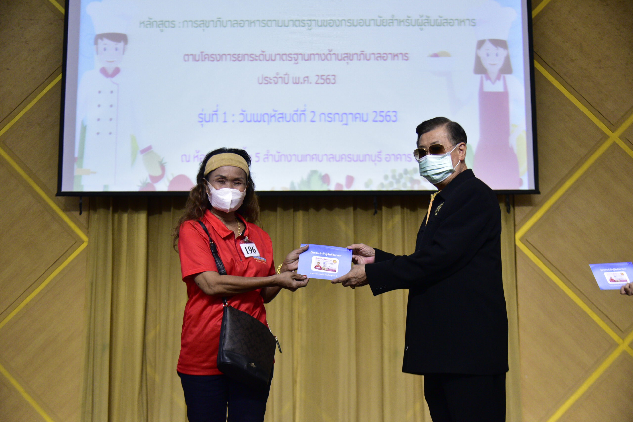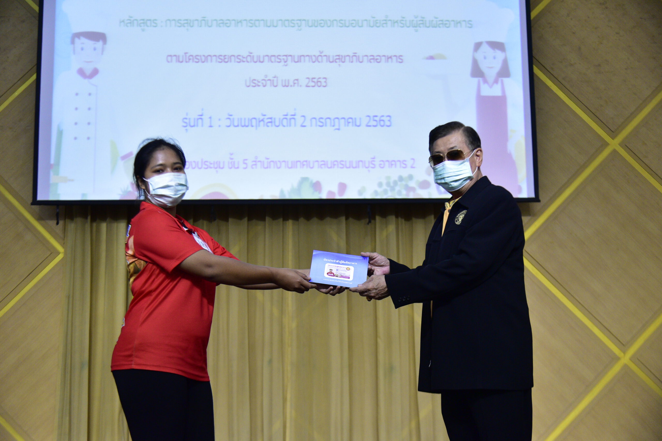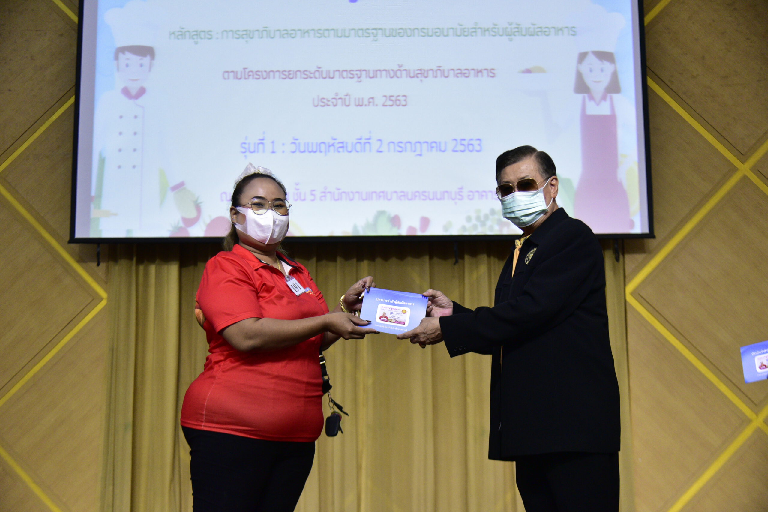 วันที่ 2 กรกฎาคม 2563 เวลา 13.00 น. นายสมนึก ธนเดชากุล นายกเทศมนตรีนครนนทบุรี เป็นประธานในพิธีเปิดการอบรมหลักสูตรการสุขาภิบาลอาหารสำหรับผู้สัมผัสอาหาร ประจำปี 2563 รุ่นที่ 1 พร้อมด้วยคณะผู้บริหาร สมาชิกสภาเทศบาล และหัวหน้าส่วนราชการ ร่วมเป็นเกียรติ ณ ห้องประชุม ชั้น 5 สำนักงานเทศบาลนครนนทบุรี อาคาร 2