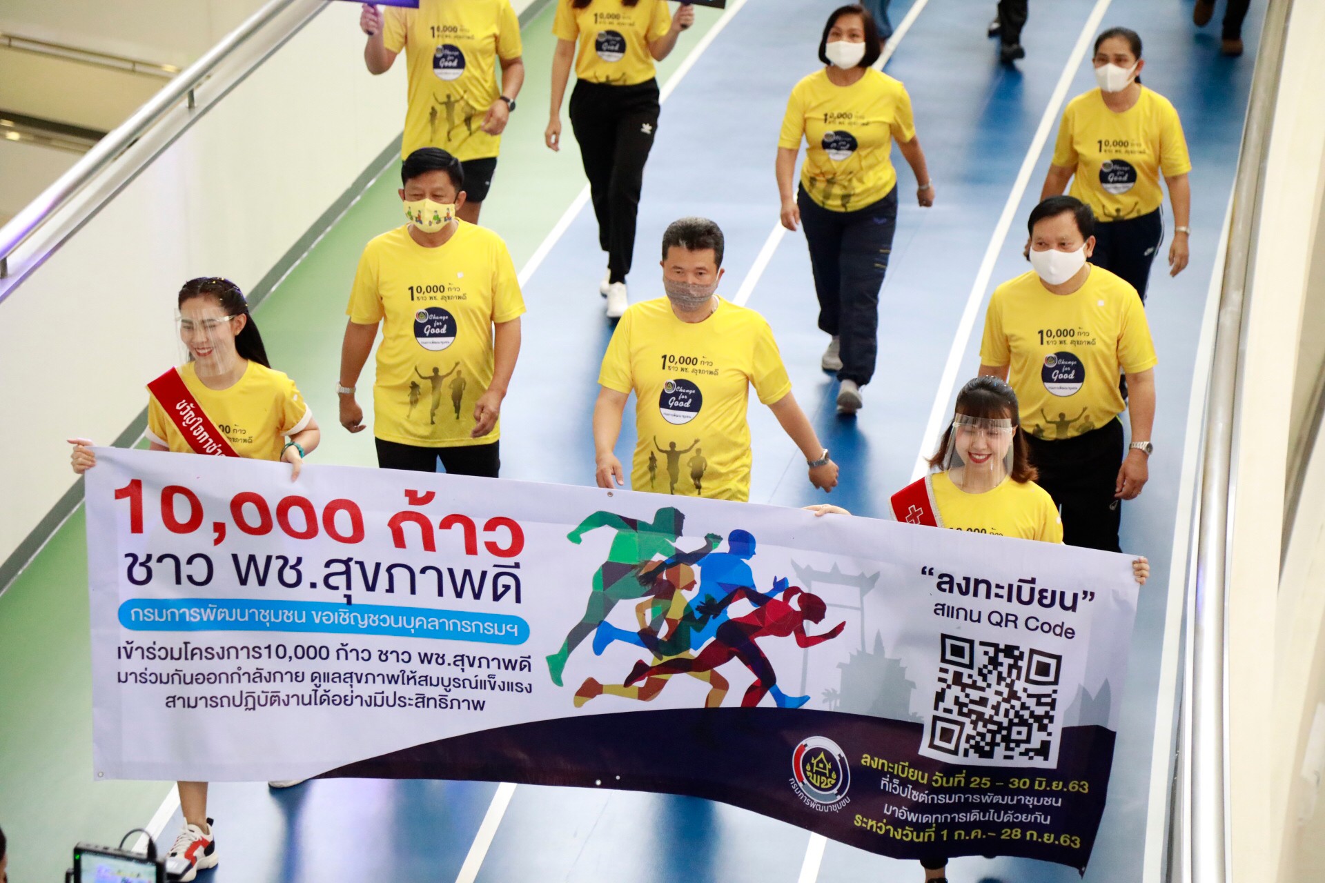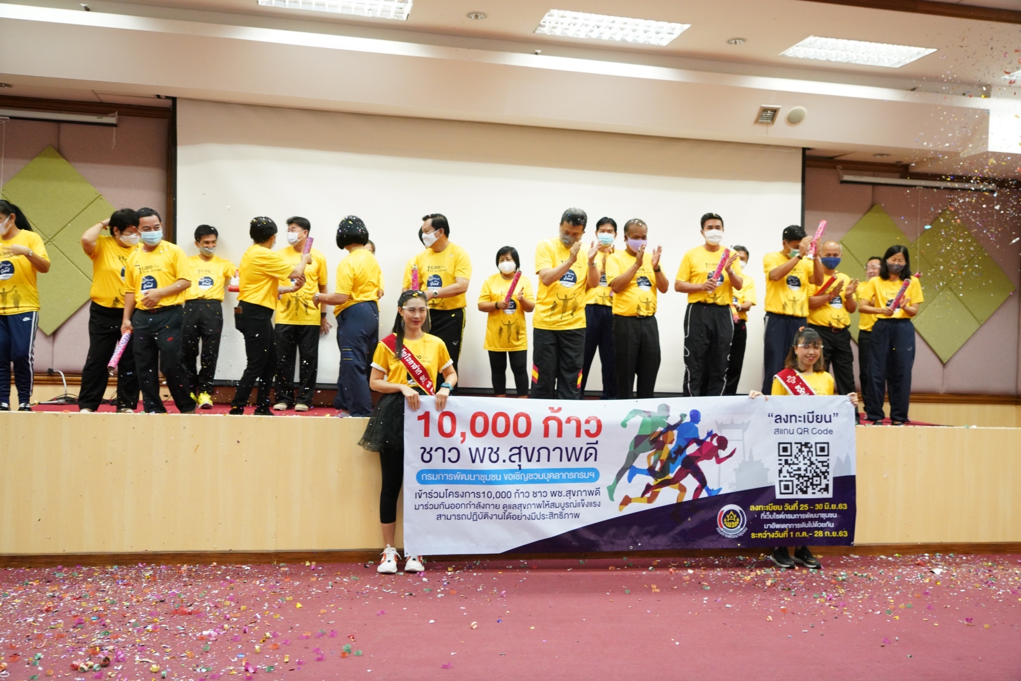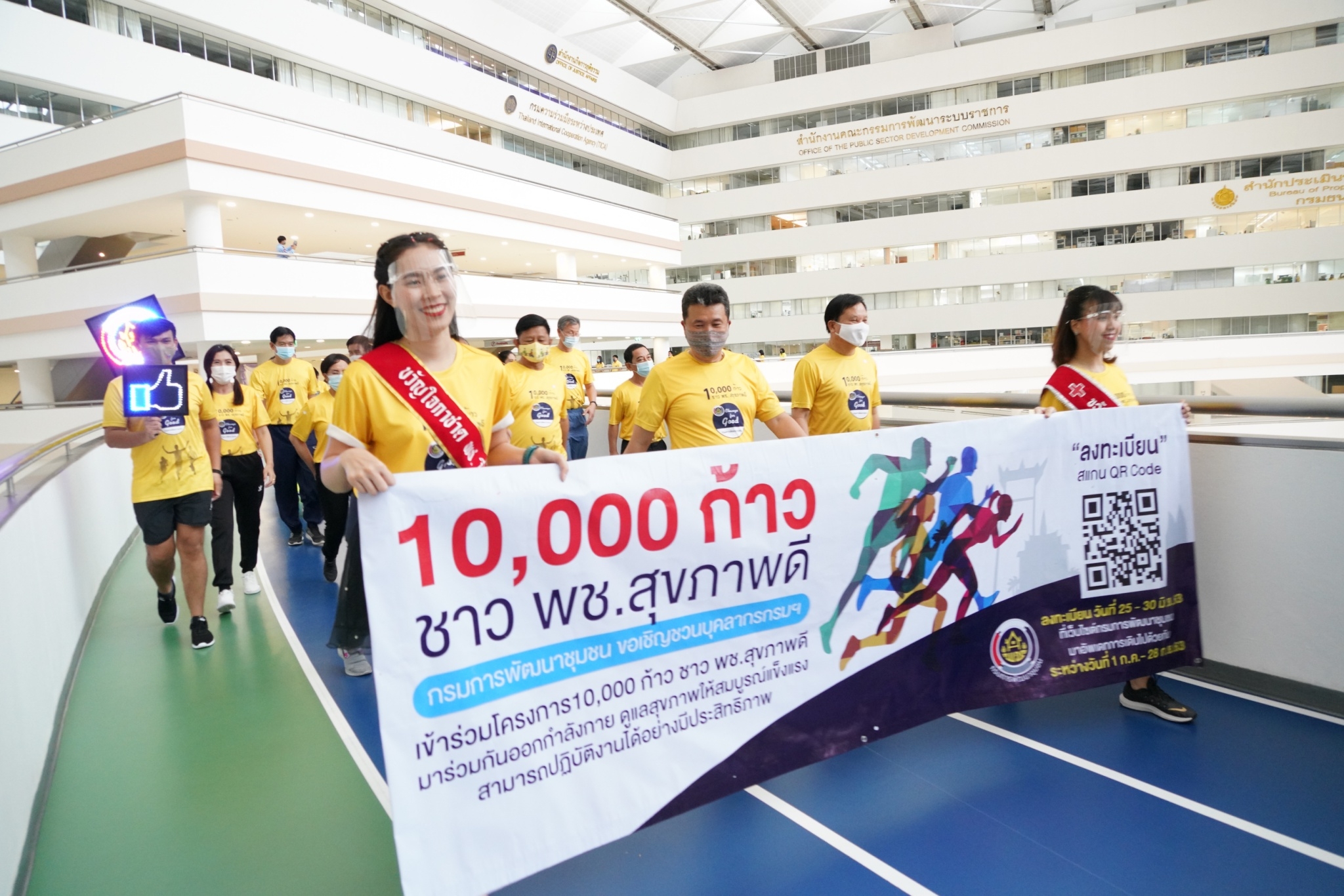ทั้งนี้ กรมการพัฒนาชุมชน จึงได้ดำเนินโครงการ “10,000 ก้าว ชาว พช. สุขภาพดี” เพื่อส่งเสริมให้บุคลากรกรมฯ หันมาสนใจการออกกำลังกาย เพื่อสุขภาพที่สมบูรณ์แข็งแรงสามารถปฏิบัติงานได้อย่างมีประสิทธิภาพ โดยเชิญชวนบุคลากรกรมฯ ทั้งในส่วนกลางและส่วนภูมิภาค สมัครเข้าร่วมโครงการและรายงานผลในระบบโดยใช้แอพพลิเคชั่นนับก้าวการเดิน ทุกวัน จนครบ 90 วัน จากนั้นจะมีการมอบรางวัลเพื่อสร้างแรงจูงใจ จำนวน 51 รางวัล ได้แก่รางวัลจอมขยัน 21 รางวัล รางวัลจอมขยับ 21 รางวัล และรางวัลพิเศษ 3 ประเภท ได้แก่ รางวัลสำหรับหน่วยงานที่มีร้อยละของบุคลากรลงทะเบียนเข้าร่วมโครงการมากที่สุด 3 รางวัล รางวัลหน่วยงานที่มีค่าเฉลี่ยจำนวนก้าวต่อคนมากที่สุด 3 รางวัล และรางวัลการประกวดภาพถ่ายการออกกำลังกาย 3 รางวัล โดยได้เปิดโปรแกรมให้ลงทะเบียนสมัครเข้าร่วมโครงการระหว่างวันที่ 25–30 มิถุนายน 2563 ที่ผ่านมา มีผู้ลงทะเบียน จำนวนทั้งสิ้น 2,447 คน และให้รายงานผลการเดิน ตั้งแต่วันที่ 1 กรกฎาคม ถึง วันที่ 28 กันยายน 2563 รวม 90 วัน
