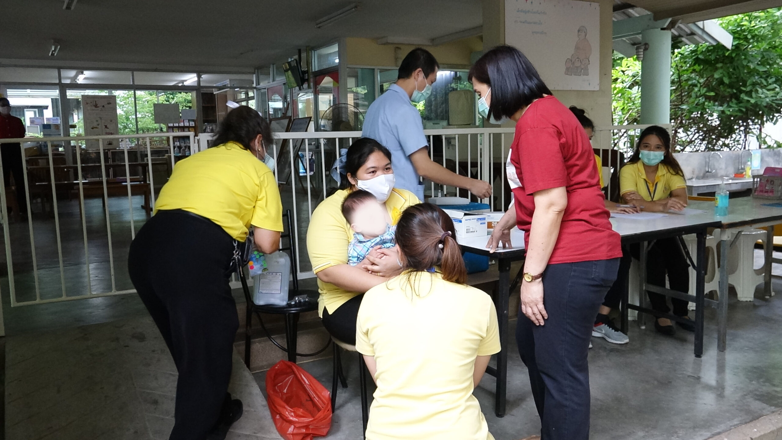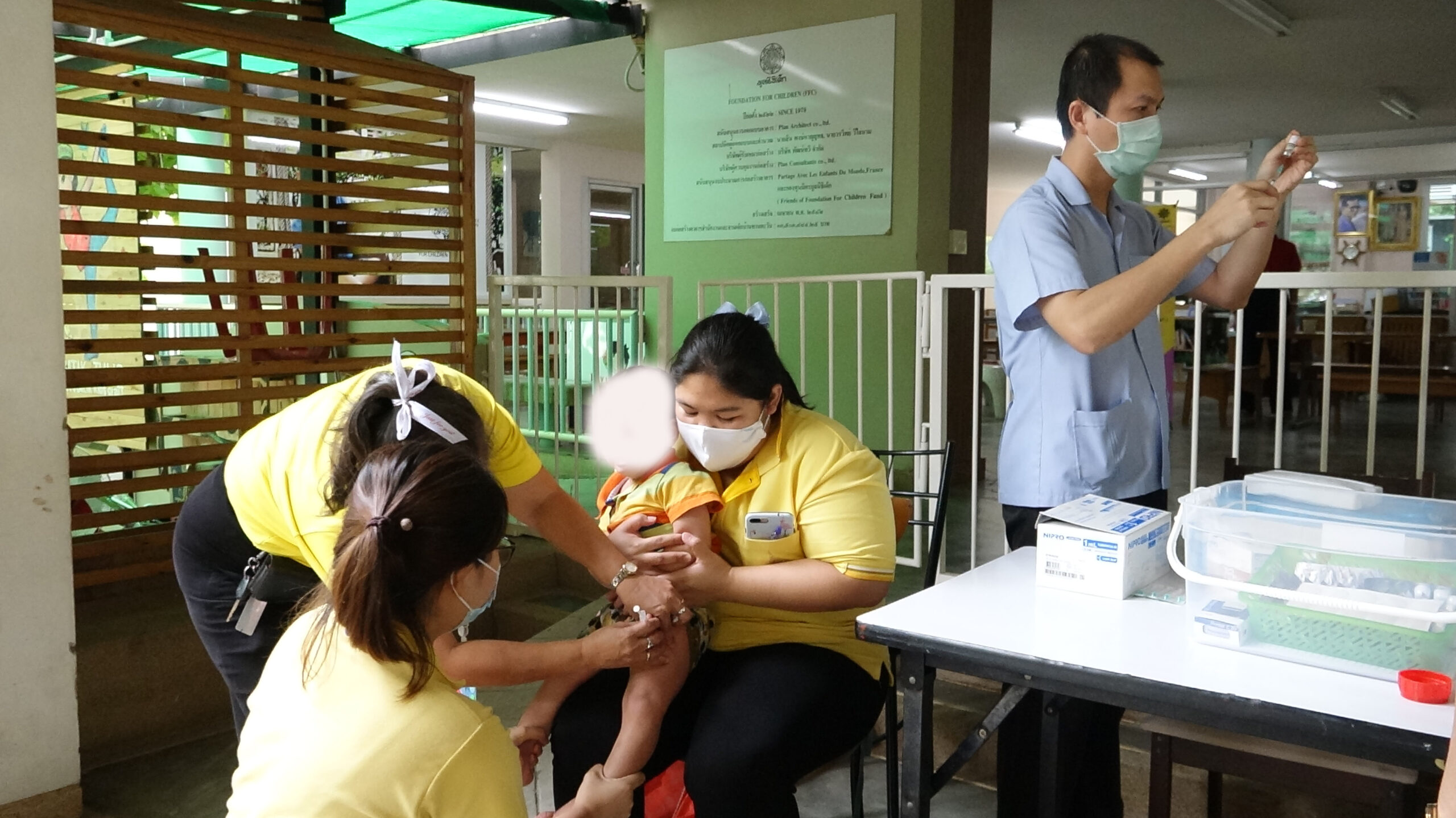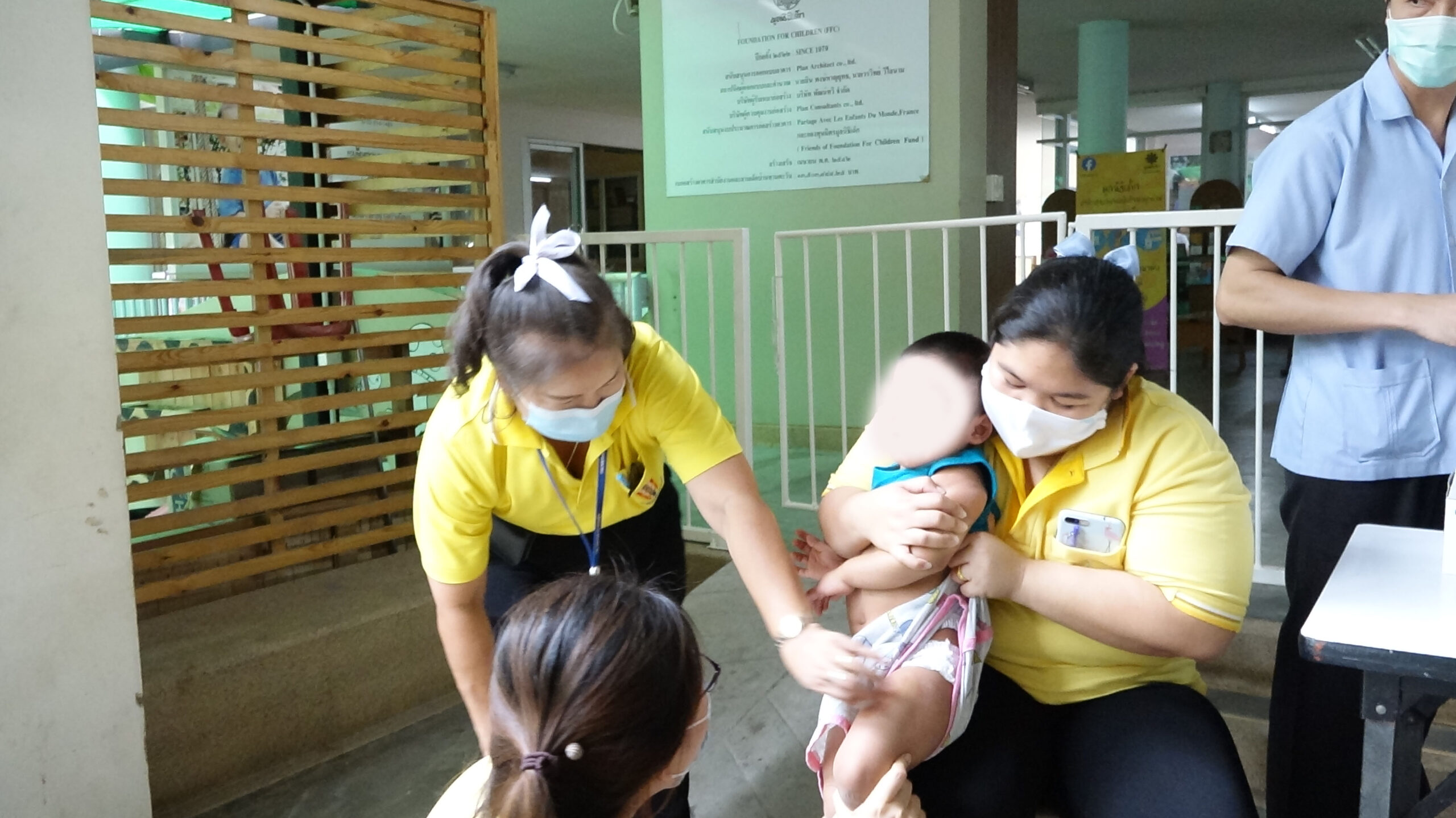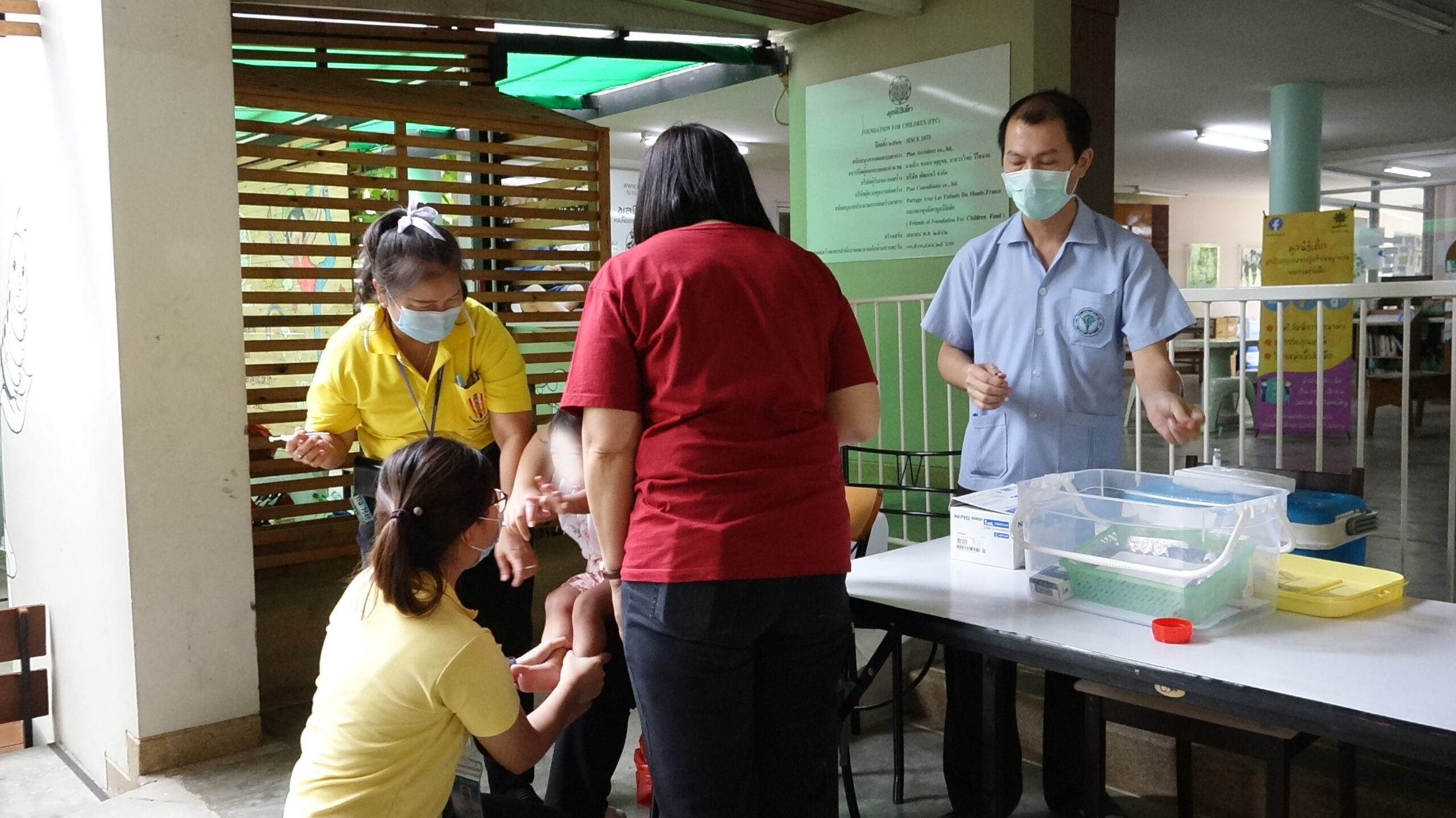 โรงพยาบาลสามพรานส่งเจ้าหน้าที่ฉีดวัคซีนป้องกันไข้หวัดใหญ่โครงการบ้านทานตะวัน มูลนิธิเด็ก