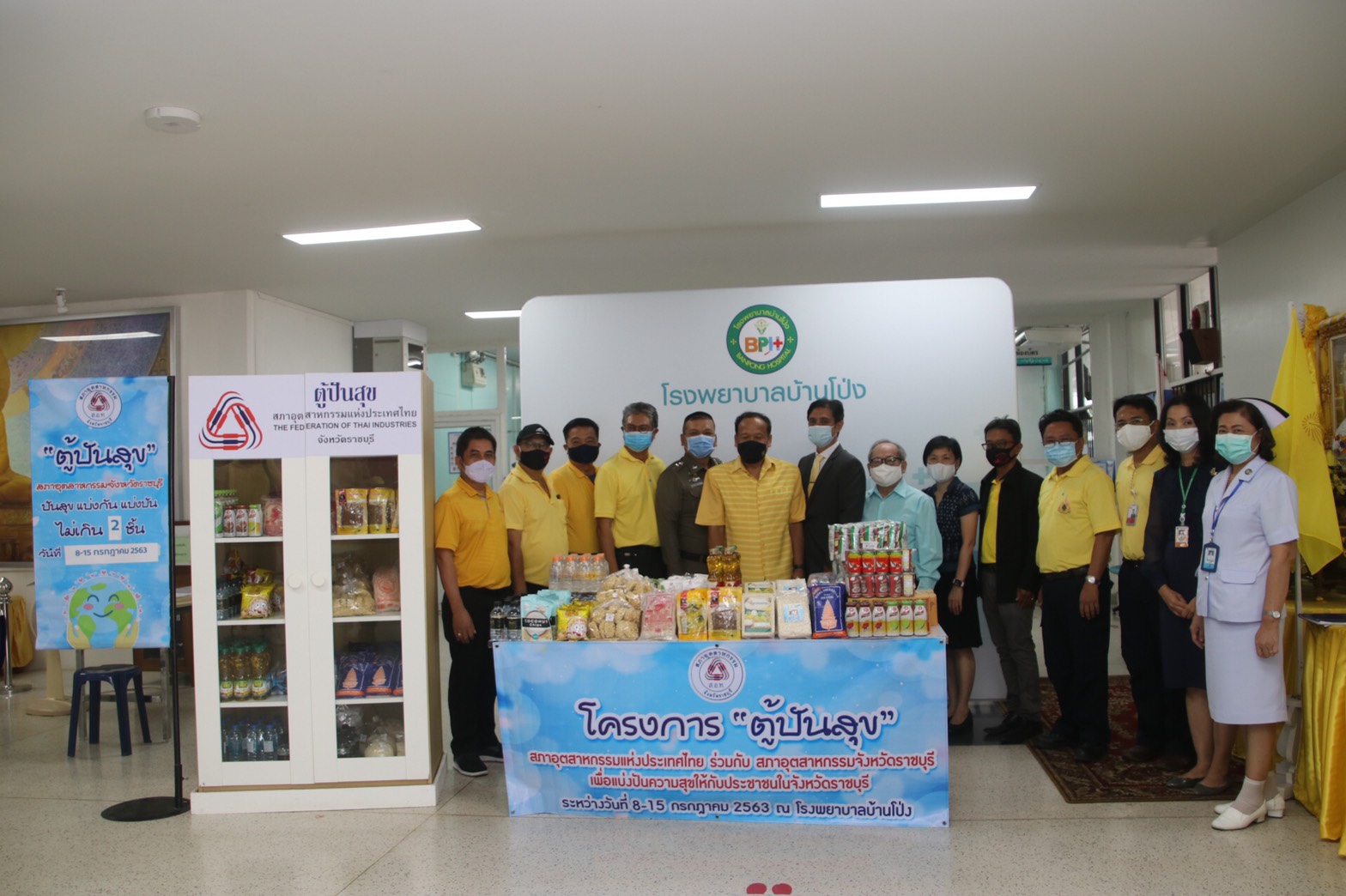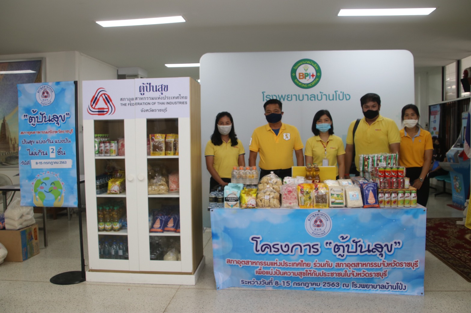 สภาอุตสาหกรรมจังหวัดราชบุรี ได้รับมอบหมายจากสภาอุตสาหกรรมแห่งประเทศไทย ดำเนินโครงการ “ตู้ปันสุข” เพื่อแบ่งปันความสุขให้กับประชาชนที่ได้รับความเดือดร้อนจากสถานการณ์การแพร่ระบาดของโรคติดเชื้อไวรัสโคโรนา 2019 (โควิด-19) ตามพื้นที่เป้าหมาย ได้แก่