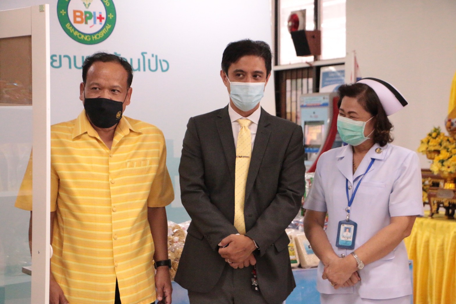 ในวันนี้ วันที่ 8 กรกฎาคม 2563 ได้มีพิธิมอบสิ่งของ ให้กับประชาชนที่มาใช้บริการภายในโรงพยาบาลบ้านโป่ง โดยได้รับเกียรติจาก นายรณภพ เวียงสิมมา นายอำเภอบ้านโป่ง , พ.ต.อ.สุทธิพงษ์ พงศ์ประภาอำไพ ผู้กำกับการสถานีตำรวจภูธรบ้านโป่ง , คุณพินิจ สันรัฐกิจ รองนายกเทศมนตรีเมืองบ้านโป่ง , คุณสหรัฐ พัฒนวิบูลย์ ผู้อำนวยการโรงงานบ้านโป่ง บริษัท สยามคราฟท์อุตสาหกรรม จำกัด รองประธานสภาอุตสาหกรรมจังหวัดราชบุรี ,คุณสุรวุฒิ ปวุติภัทรพงศ์ รองประธานสภาฯ , คุณเสนีย์ แก้วพิจิตร เลขาธิการสภาฯ คุณทรงพล ชัยชิตาทร กรรมการสภาฯ พร้อมด้วยคณะกรรมการฯ โดยมีนายแพทย์ธิติ แสวงธรรม ผู้อำนวยการโรงพยาบาลบ้านโป่ง , แพทย์หญิงมนัญญา วรรณไพสิฐกุล รองผู้อำนวยการฝ่ายการแพทย์ , คุณจิรภัทร สิทธิสันต์ รองผู้อำนวยการฝ่ายบริหาร , คุณกิ่งกาญจน์ ทรัพย์เย็น รองผู้อำนวยการฝ่ายการพยาบาล ร่วมเป็นเกียรติในพิธีมอบสิ่งของในครั้งนี้ด้วย
