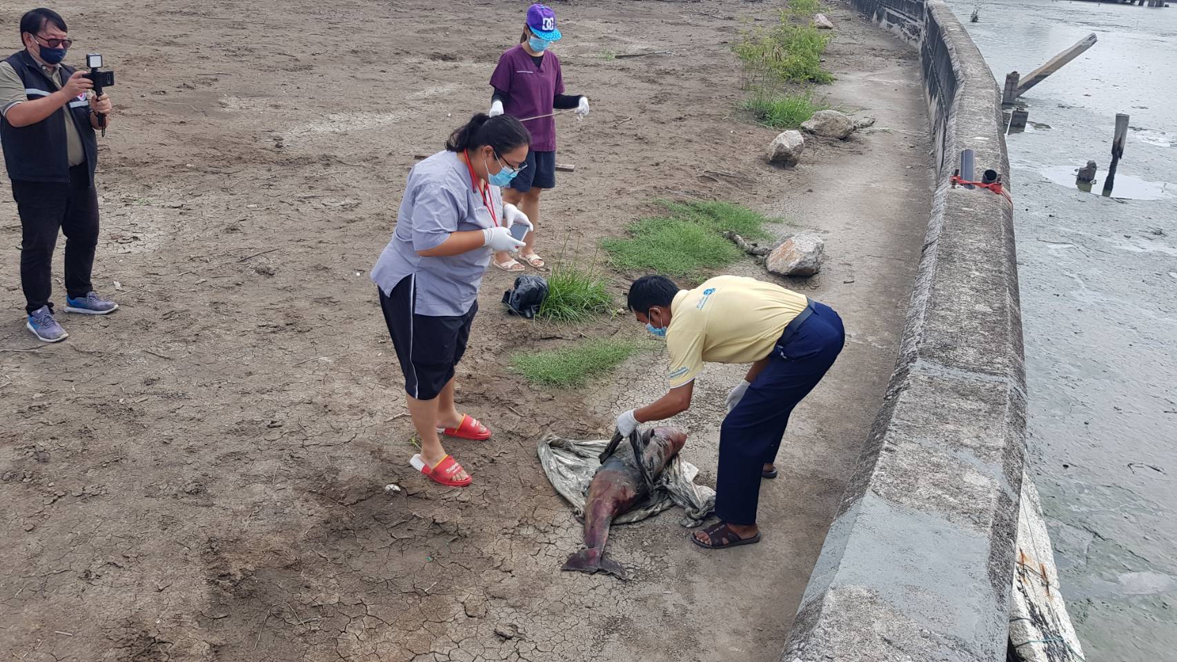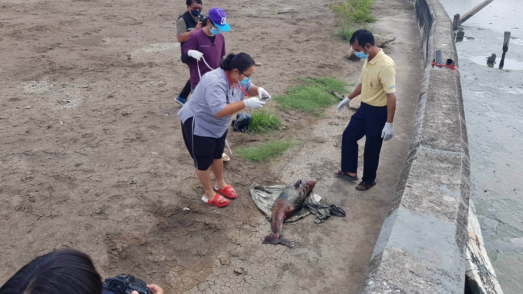 พบซากโลมาน้อยตายเกยตื้นริมแม่น้ำท่าจีน