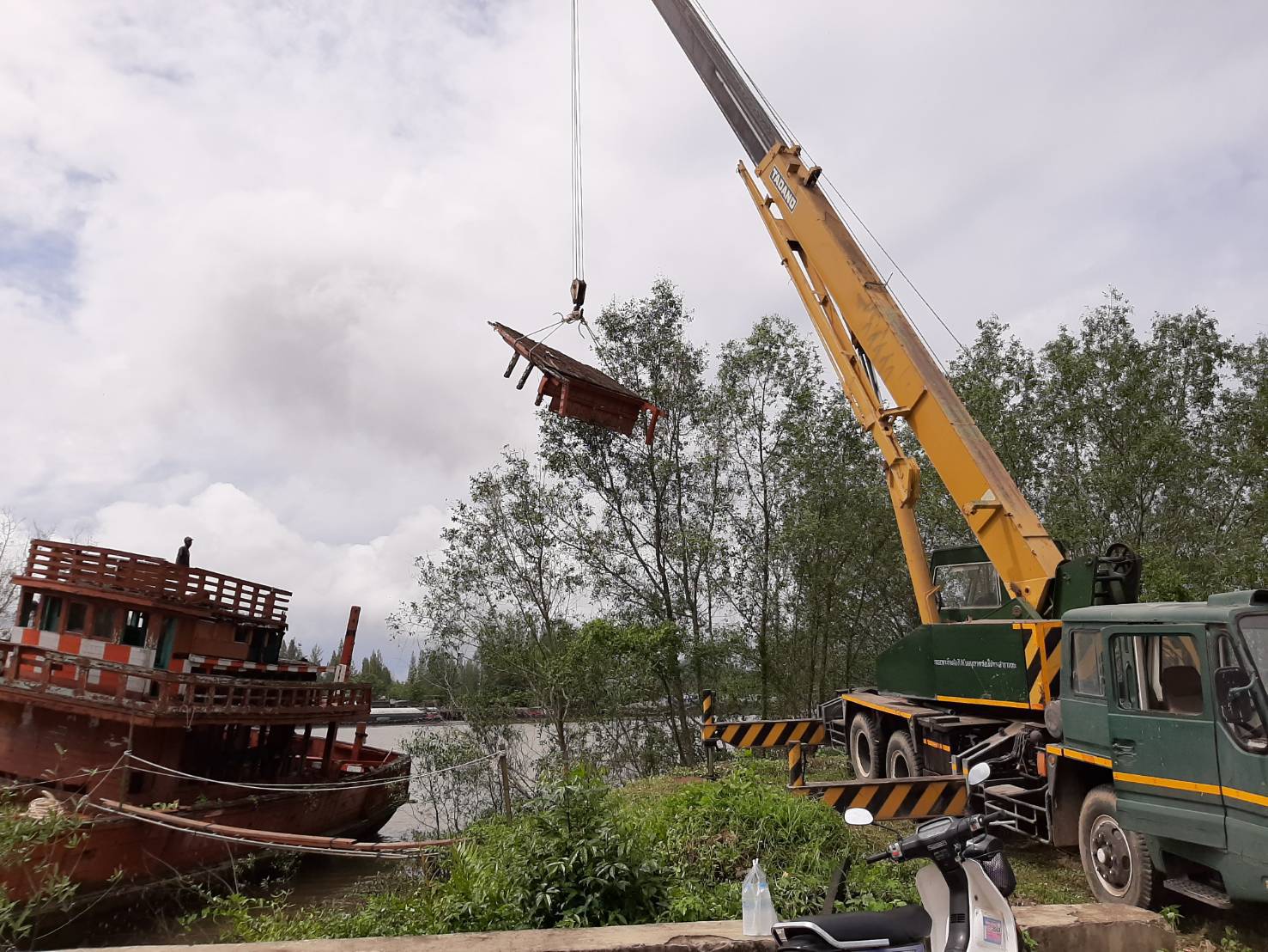 ที่อำเภอกันตัง จังหวัดตรัง นายโกวิทย์ เก้าเอี้ยน ประมงจังหวัดตรัง พร้อมคณะเจ้าหน้าที่ลงพื้นที่ตรวจสอบเรือประมงที่ประสงค์นำออกนอกระบบ ที่ได้รับการจ่ายค่าชดเชยเรือประมงที่ประสงค์นำออกนอกระบบ ภายใต้ โครงการนำเรือประมงออกนอกระบบเพื่อการจัดการทรัพยากรประมงทะเลที่ยั่งยืน ระยะที่ 1 (ระยะเร่งด่วน) ช่วงที่ 2 การชดเชยเยียวยาเจ้าของเรือที่ได้รับผลกระทบจากมาตรการของรัฐ ปี 2558 ของจังหวัดตรัง จำนวน 1 ลำ ชื่อเรือ น้อมเกล้าสมุทร หมายเลขทะเบียนเรือ 319202191 โดยมีนายปราโมทย์ ชลวิศิษฎ์ เป็นเจ้าของเรือ และเจ้าของเรือได้ยื่นแบบแจ้งผลก่อนและระหว่างการแยกชิ้นส่วนทำลายเรือประมง ณ หจก.พีมารีน เซอร์วิส เลขที่ 24/1 หมู่ที่ 3 ตำบลบ่อน้ำร้อน อำเภอกันตัง จังหวัดตรัง
