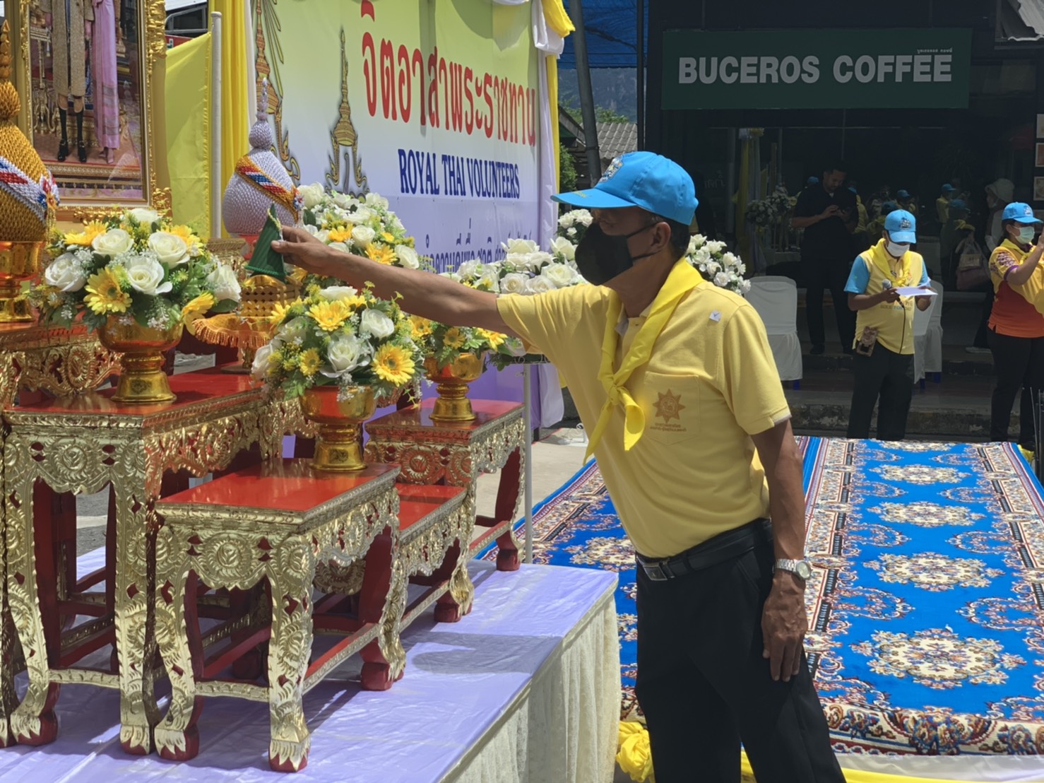 นายสาวิตร เจียมจิระพร นายอำเภอไทรโยค พร้อมด้วยหัวหน้าส่วนราชการ หัวหน้าหน่วยงานรัฐวิสาหกิจ ผู้ปกครองท้องที่ และประชาชนจิตอาสา ทุกทนด้วยสำนึกพระมหากรุณาธิคุณ ที่สมเด็จพระเจ้าอยู่หัวมหาวชิราลงกรณบดินทรเทพยวรางกูร พระราทานโครงการจิตอาสาพระราชทานตามแนวพระราชดำริ”เราทำความ ด้วยหัวใจ” ด้วยทรงมุ่งหวังให้ พสกนิกรทุกหมู่เหล่า มีความสมัครสมานสามัคคี ร่วมมือร่วมไจ ประกอบกิจกรมสาธารณะ เพื่อประโยชน์สุขของชุมซนส่วนรวมโดยไม่หวังสิ่งตอบแทน เพื่อให้เกิดความรัก ความผูกพัน 4 สถาบันหลักของชาติคือ สถาบันชาติ สถาบันศาสนา สถาบันพระมหากษัตริย์ และประซาซนเป็นที่นำยินดีอย่างยิ่งที่ในวันนี้ ท่านทั้งหลายได้มาชุมนุมโดยพร้อมเพรียงกัน เพื่อร่วมพิธีปิดกิจกรรมจิตอาสาพัฒนา เนื่องในวันสมเด็จพระนารายณ์มหาราช