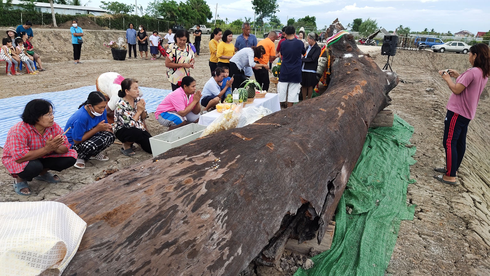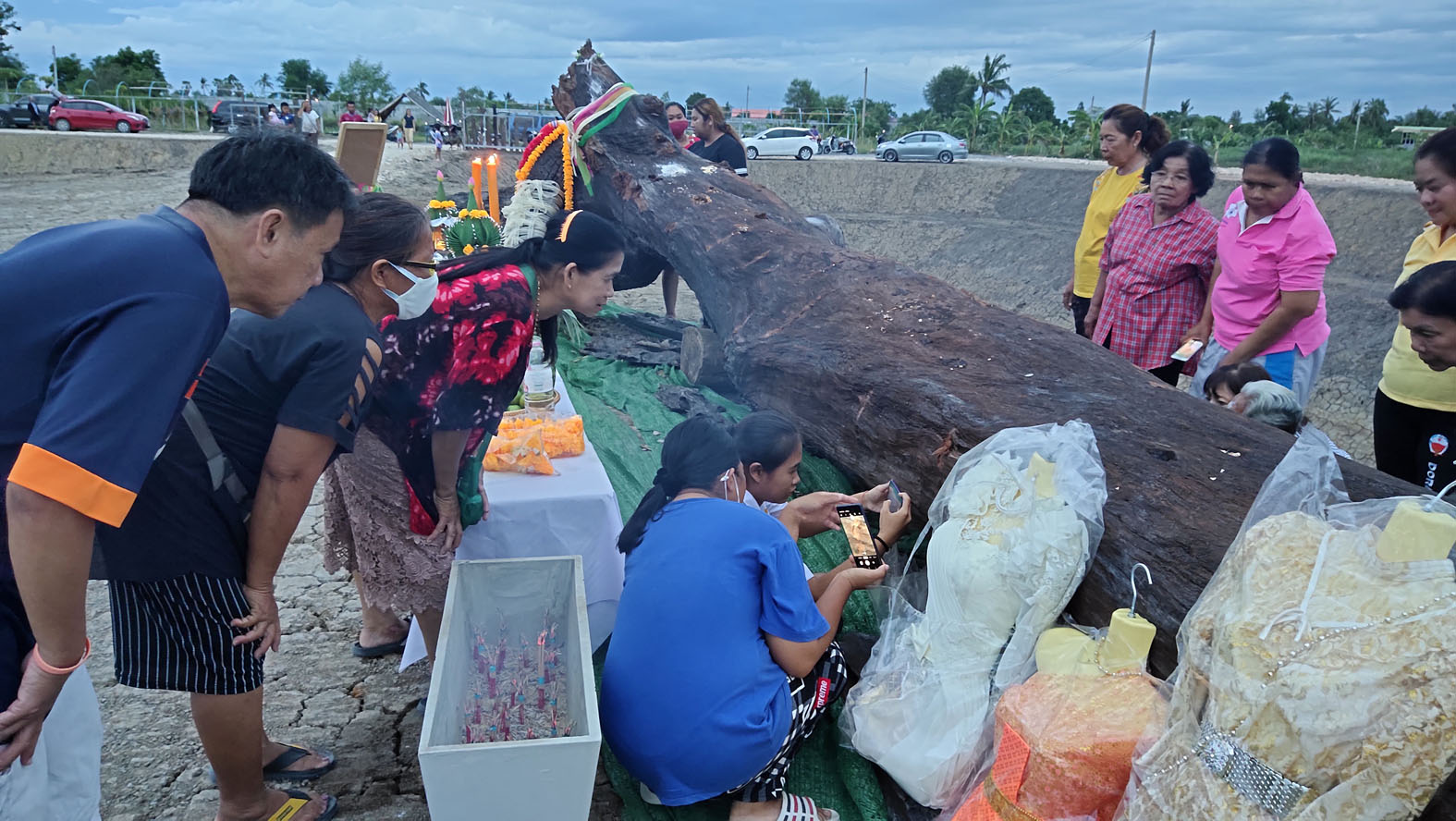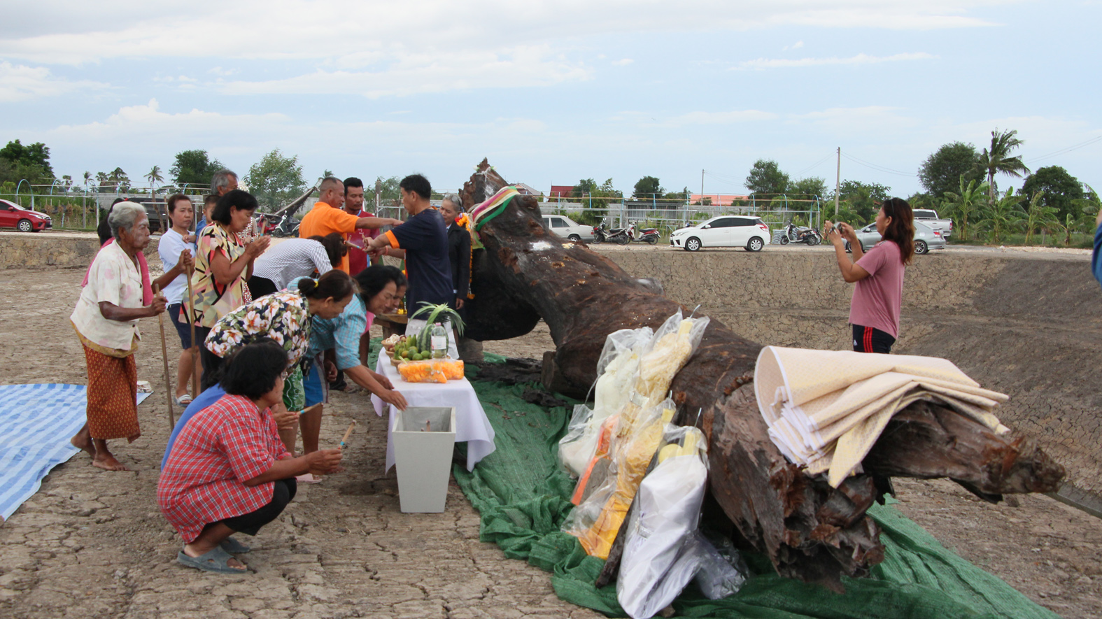 จากการสอบถามคุณยายสำอางค์ พงษ์สุวรรณ อายุ 81 ปี อยู่บ้านเลขที่ 225 หมู่ 2 ต.บ้านโพธิ์ ซึ่งเป็นเจ้าของที่แปลงดังกล่าวเล่าว่าที่แปลงนี้มีจำนวน 8 ไร่ ได้แบ่งให้ลูกๆหลานไว้ทำมาหากิน และได้ว่าจ้างรถแบ็คโฮ มาขุดตักทำคันล้อมเตรียมทำเป็นสวนผสมปลูกพืชผัก ไม้ผลไม้ยืนต้น และเมื่อวันที่ 14 มิ.ย.ที่ผ่านมาขณะที่รถแบ็คโฮกำลังขุดบ่อซึ่งลึกประมาณ 10 เมตรก็พบต้นไม้ขนาดใหญ่มีความยาววัดได้ 10 เมตรเส้นผ่าศูนย์กลางประมาณ 1 เมตรสภาพสมบูรณ์ไม่ผุเชื่อมีอายุเกือบ 1,000 ปี จึงนำขึ้นมาไว้ด้านบนพบว่าเป็นต้นตะเคียนขนาดใหญ่อายุนับพันปีจึงทำพิธีบวงสรวง เนื่องจากเชื่อว่าต้นตะเคียนต้นนี้มีสิ่งศักดิ์สิทธิ์สิงสถิตย์อยู่และจะมาให้โชคให้ลาภกับเจ้าของญาติมิตรและชาวบ้านที่มาขอพรขอโชคขอลาภให้อยู่เย็นเป็นสุข หลังจากทำพิธีบวงสรวงเสร็จชาวบ้านที่มาร่วมพิธีต่างพากันส่องหาเลขเด็ด ด้วยวิธีใช้โทรศัพท์มือถือทั้งถ่ายภาพทั้งส่องหาบางคนมุดลงไปแหงนคอส่องดูเลขเด็ดกันอย่างคึกคักและได้เลขเด็ด 285 ไปเสี่ยงโชคทำให้โชคดีรับทรัพย์กันไป