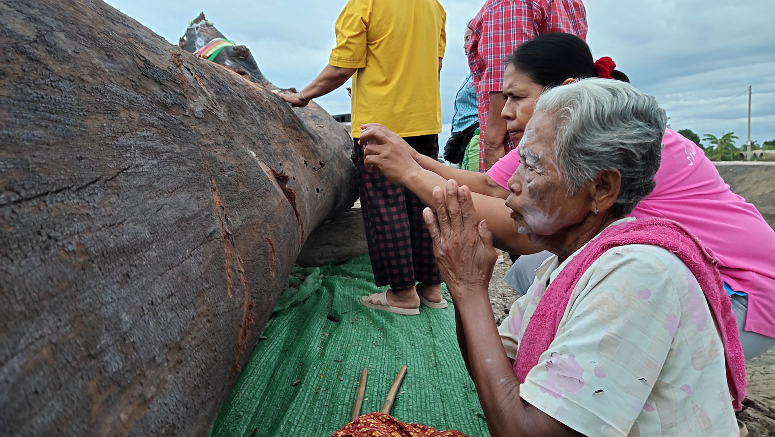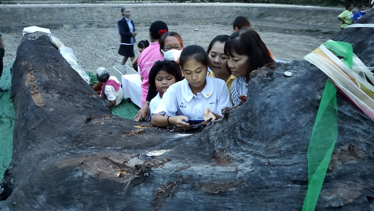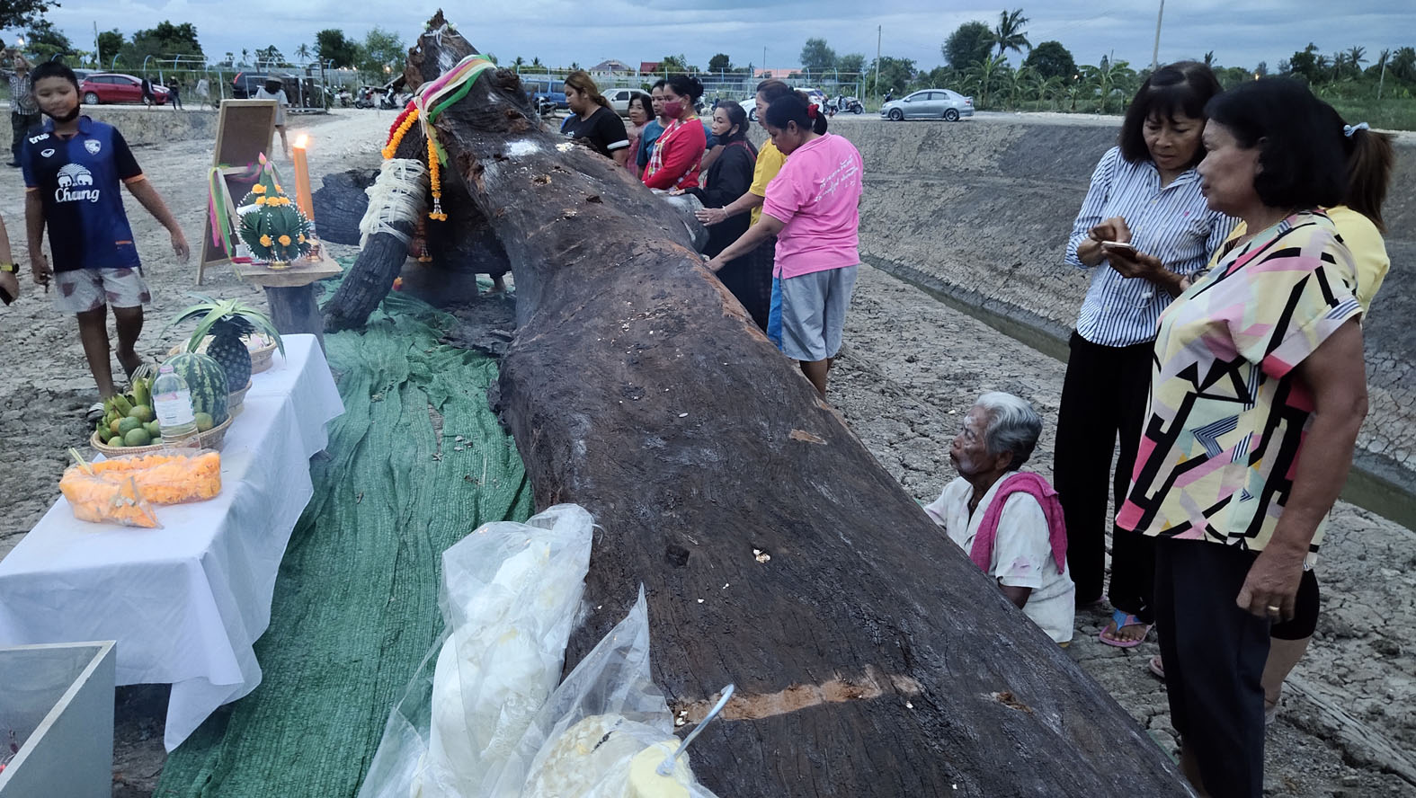 จากการสอบถามคุณยายสำอางค์ พงษ์สุวรรณ อายุ 81 ปี อยู่บ้านเลขที่ 225 หมู่ 2 ต.บ้านโพธิ์ ซึ่งเป็นเจ้าของที่แปลงดังกล่าวเล่าว่าที่แปลงนี้มีจำนวน 8 ไร่ ได้แบ่งให้ลูกๆหลานไว้ทำมาหากิน และได้ว่าจ้างรถแบ็คโฮ มาขุดตักทำคันล้อมเตรียมทำเป็นสวนผสมปลูกพืชผัก ไม้ผลไม้ยืนต้น และเมื่อวันที่ 14 มิ.ย.ที่ผ่านมาขณะที่รถแบ็คโฮกำลังขุดบ่อซึ่งลึกประมาณ 10 เมตรก็พบต้นไม้ขนาดใหญ่มีความยาววัดได้ 10 เมตรเส้นผ่าศูนย์กลางประมาณ 1 เมตรสภาพสมบูรณ์ไม่ผุเชื่อมีอายุเกือบ 1,000 ปี จึงนำขึ้นมาไว้ด้านบนพบว่าเป็นต้นตะเคียนขนาดใหญ่อายุนับพันปีจึงทำพิธีบวงสรวง เนื่องจากเชื่อว่าต้นตะเคียนต้นนี้มีสิ่งศักดิ์สิทธิ์สิงสถิตย์อยู่และจะมาให้โชคให้ลาภกับเจ้าของญาติมิตรและชาวบ้านที่มาขอพรขอโชคขอลาภให้อยู่เย็นเป็นสุข หลังจากทำพิธีบวงสรวงเสร็จชาวบ้านที่มาร่วมพิธีต่างพากันส่องหาเลขเด็ด ด้วยวิธีใช้โทรศัพท์มือถือทั้งถ่ายภาพทั้งส่องหาบางคนมุดลงไปแหงนคอส่องดูเลขเด็ดกันอย่างคึกคักและได้เลขเด็ด 285 ไปเสี่ยงโชคทำให้โชคดีรับทรัพย์กันไป