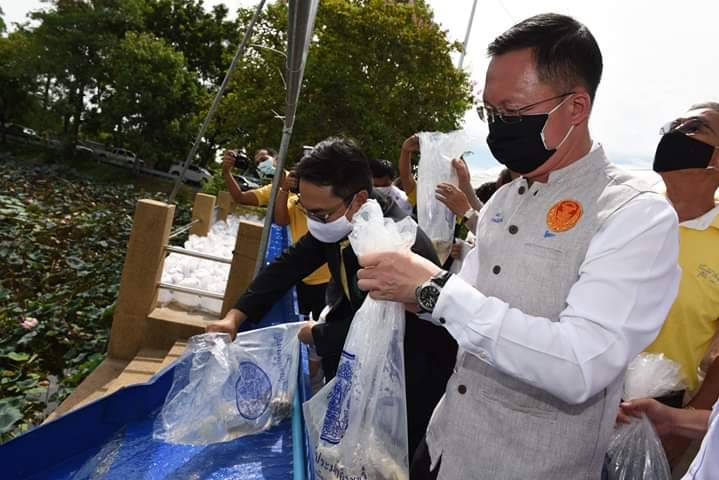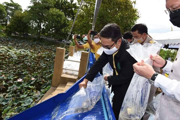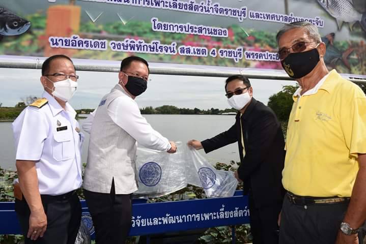 สำนักงานประมงจังหวัดราชบุรี ร่วมกับศูนย์วิจัยและพัฒนาประมงน้ำจืดราชบุรี และเทศบาลตำบลกระจับ จัดกิจกรรมปล่อยพันธุ์สัตว์น้ำ เพื่อฟื้นฟูทรัพยากรสัตว์น้ำในบึงกระจับ กว่า 300,000 ตัว