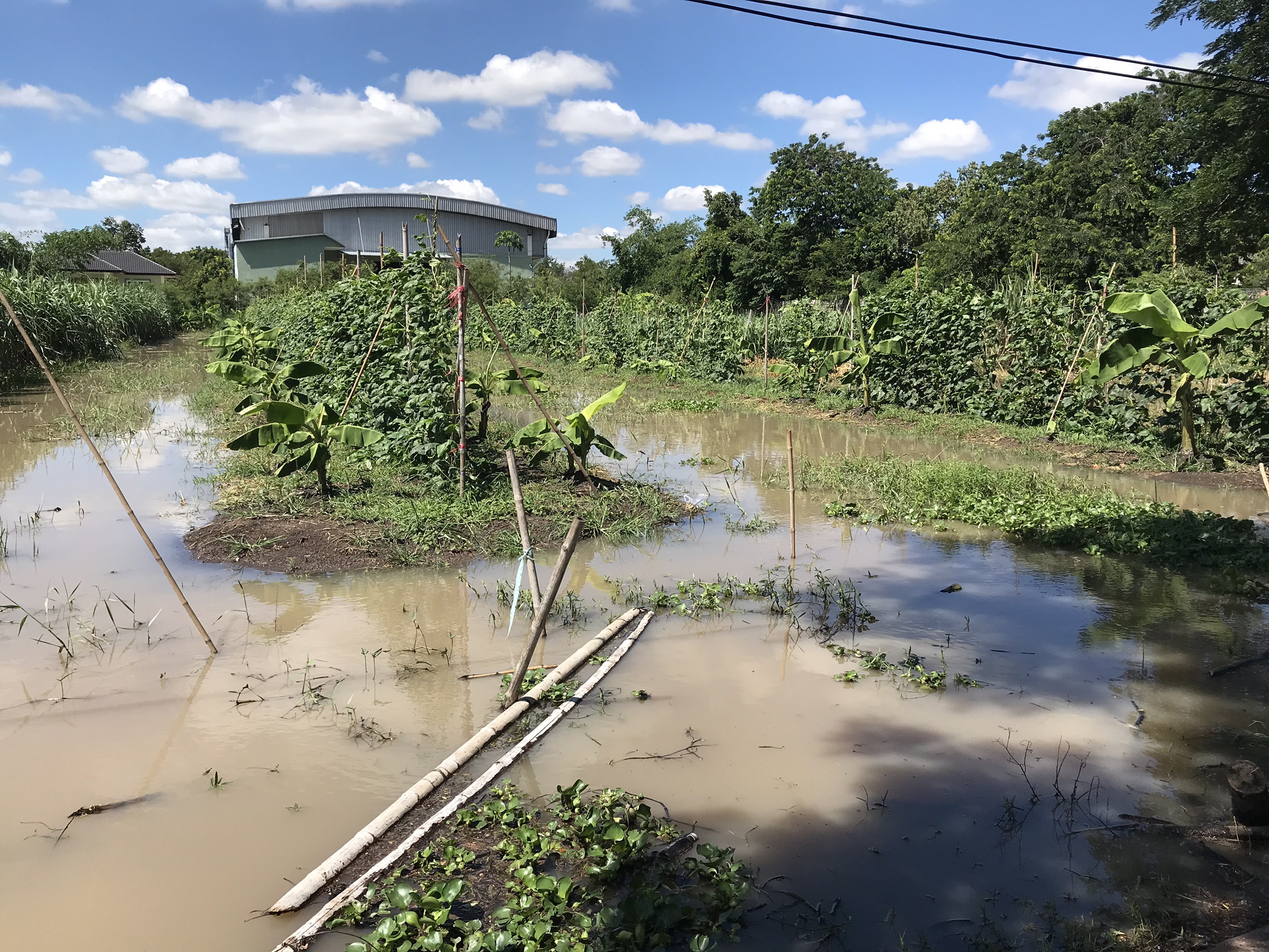 ด้านนาย สรรวัสร์ สิริแสงจันทร์ กล่าวเปิดเผยว่า ตั้งแต่เมื่อช่วงเย็นประมาณ 4 โมงเย็นฝนเริ่มตกและตกหนักนานถึงประมาณ 2-3 ทุ่ม ทำให้น้ำท่วมทั่วไปหมด ในสวนของตนเองที่ปลูกอ้อย กล้วย และบ่อเลี้ยงปลา เลี้ยงกบ ถูกน้ำท่วมจนหมด ตอนนี้ต้องเร่งสูบและระบายน้ำออกจากสวนให้เร็วที่สุด เพราะหากทิ้งให้น้ำท่วมขังประมาณ 3 วันจะทำให้ต้นกล้วยต้นอ้อยเกิดปัญหารากเน่าและตายได้ อีกทั้งต้องเร่งระบายน้ำออกเพราะกลัวว่าหากวันนี้มีฝนตกลงมาซ้ำอีกจะทำให้เกิดความเสียหายหนักกว่านี้อีก