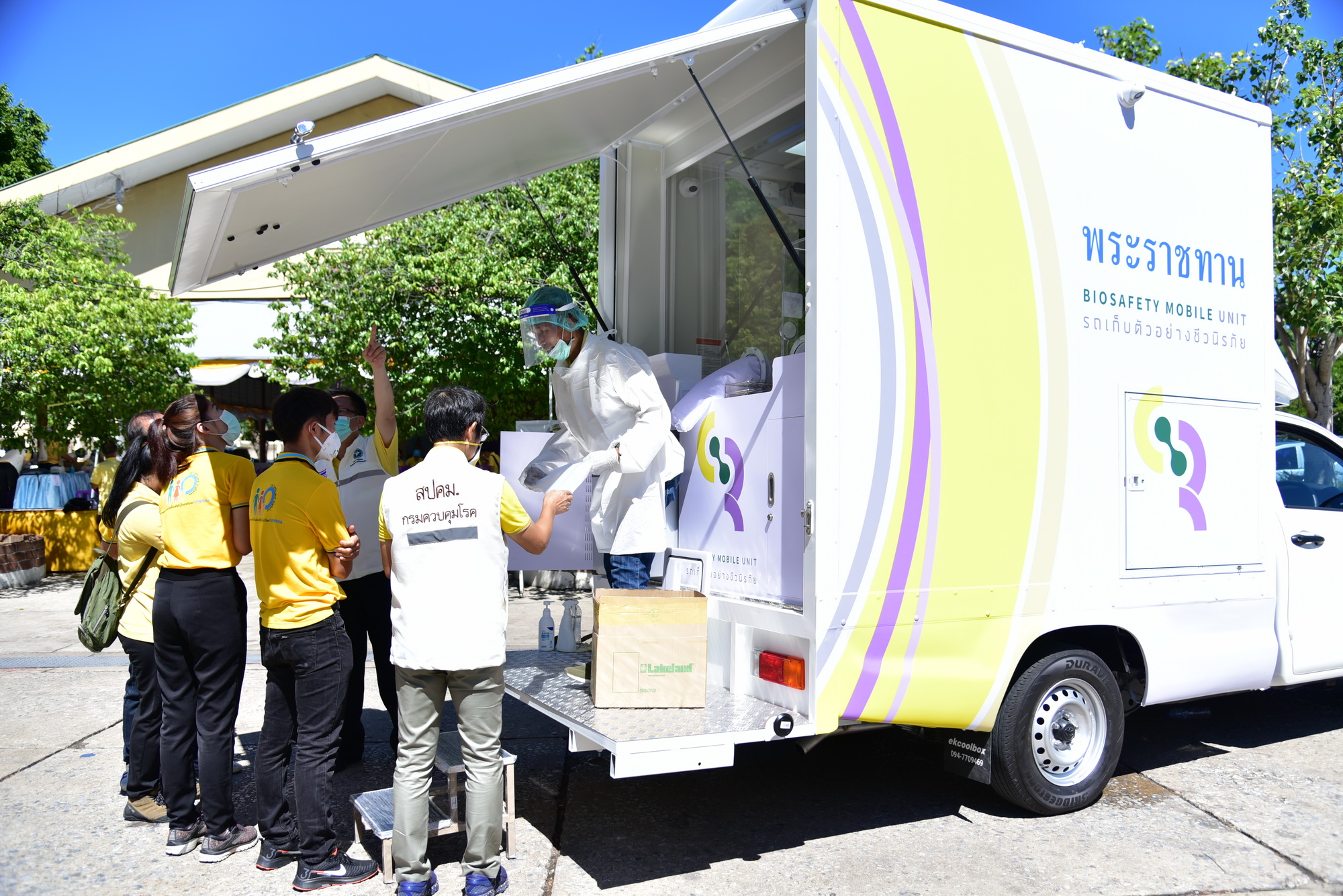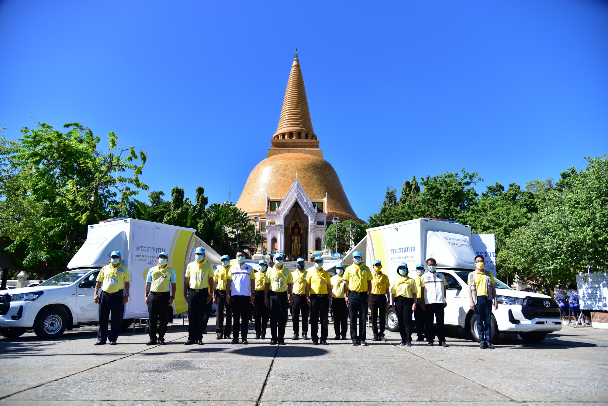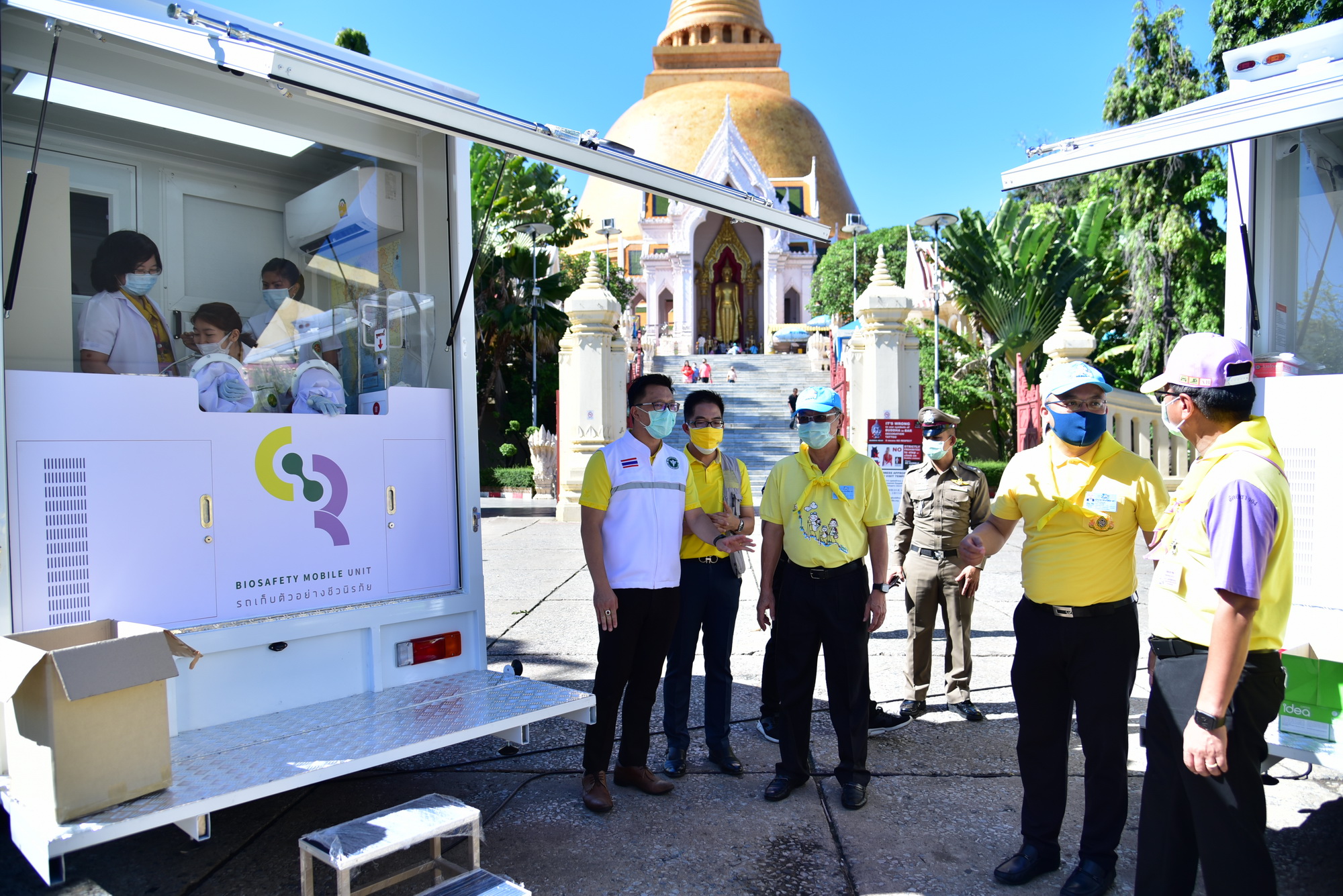 นายชาญนะ เอี่ยมแสง ผู้ว่าราชการจังหวัดนครปฐม กล่าวว่า จังหวัดนครปฐมได้รับพระมหากรุณาธิคุณ จากพระบาทสมเด็จพระวชิรเกล้าเจ้าอยู่หัว และสมเด็จพระนางเจ้าฯ พระบรมราชินี ที่ทรงห่วงใยพสกนิกรของพระองค์ รถตรวจโรคติดเชื้อชีวนิรภัยพร้อมระบบสารสนเทศ เป็นห้องปฏิบัติการเคลื่อนที่ในการเก็บตัวอย่างโรคติดเชื้อไวรัสโคโรนา 2019 ซึ่งเป็นประโยชน์ต่อประชาชน บุคลากรทางการแพทย์และสาธารณสุข ในการปฏิบัติงานได้อย่างปลอดภัย สามารถเข้าถึงประชาชนในทุกพื้นที่ได้อย่างสะดวกรวดเร็ว อย่างไรก็ตาม ขอให้ทุกคนปฏิบัติตามมาตรการต่างๆ ที่รัฐบาล และทางจังหวัดกำหนดอย่างเคร่งครัด เพื่อให้จังหวัดนครปฐมปลอดภัยจากเชื้อไวรัสโคโรนา 2019