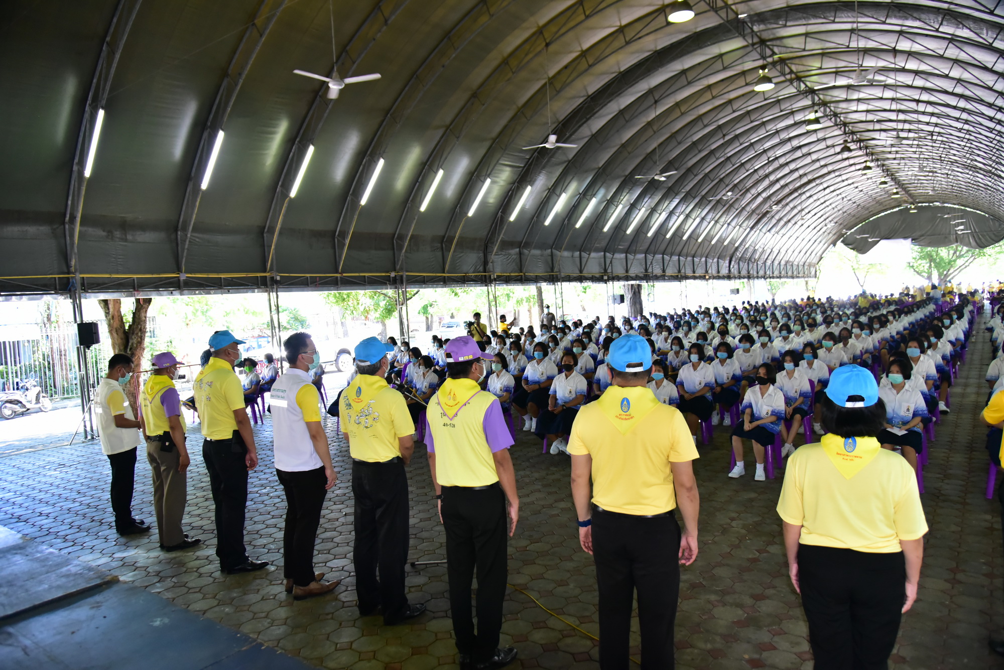 วันนี้ (17 ก.ค.63) ที่กองอำนวยการองค์พระปฐมเจดีย์ นายชาญนะ เอี่ยมแสง ผู้ว่าราชการจังหวัดนครปฐม เป็นประธานในการจัดกิจกรรมค้นหาโรคโควิด-19 เชิงรุกในชุมชน พร้อมด้วย ร้อยตรี พงศธร ศิริสาคร รองผู้ว่าราชการจังหวัดนครปฐม พญ.อัมพร เบญจพลพิทักษ์ ผู้ตรวจราชการกระทรวงสาธารณสุข เขตสุขภาพที่ 5 นายแพทย์สามารถ ถิระศักดิ์ นายแพทย์สาธารณสุขจังหวัดนครปฐม นายแพทย์สมาน ฟูตระกูล ผู้อำนวยการสำนักงานป้องกันควบคุมโรคที่ 5 จังหวัดราชบุรี นายแพทย์อเนก มุ่งอ้อมกลาง ผู้อำนวยการสถาบันป้องกันควบคุมโรคเขตเมือง พญ.ดารารัตน์ รัตนรักษ์ ผู้อำนวยการโรงพยาบาลนครปฐม หัวหน้าส่วนราชการ และประชาชนจิตอาสาตรวจคัดกรองค้นหาโรคติดเชื้อไวรัสโคโรนา 2019 เชิงรุก โดยใช้ “รถตรวจโรคติดเชื้อชีวนิรภัยพร้อมระบบสารสนเทศ” ที่ได้รับพระราชทานจากพระบาทสมเด็จพระวชิรเกล้าเจ้าอยู่หัว ออกให้บริการกับนักเรียน/นักศึกษา และเจ้าหน้าที่ที่เกี่ยวข้อง รวม 1,000 คน เพื่อป้องกันและควบคุมการแพร่ระบาดของโรคติดเชื้อไวรัสโคโรนา 2019 ให้กับประชาชนในจังหวัดนครปฐม และถวายเป็นพระราชกุศล เนื่องในโอกาสวันเฉลิมพระชนมพรรษา พระบาทสมเด็จพระวชิรเกล้าเจ้าอยู่หัว 28 กรกฎาคม 2563