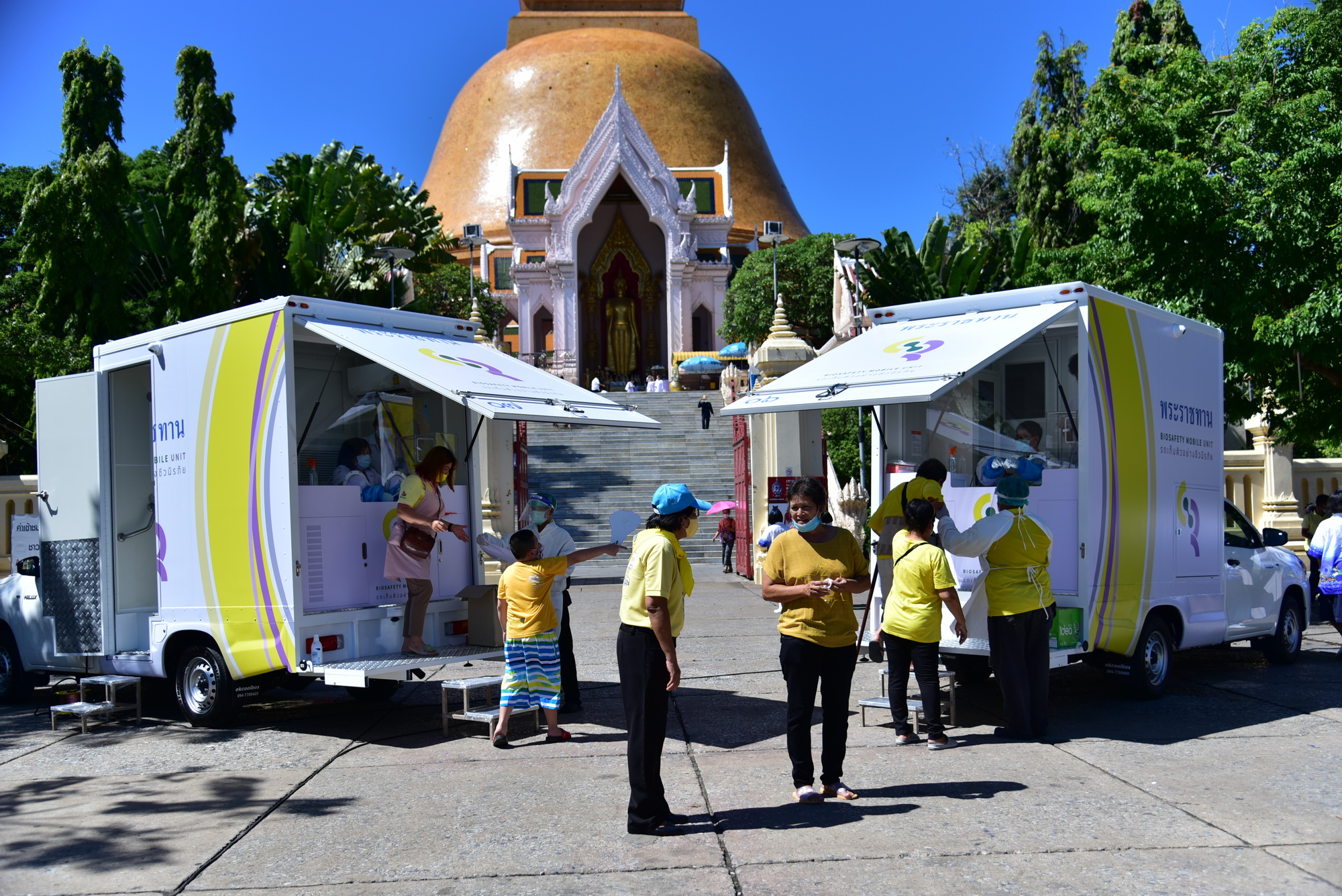 สำหรับรถตรวจโรคติดเชื้อชีวนิรภัยพร้อมระบบสารสนเทศ ที่ให้บริการในจังหวัดนครปฐมครั้งนี้ จำนวน 4 คัน ให้บริการ 3 พื้นที่ ที่กองอำนวยการองค์พระปฐมเจดีย์ โรงเรียนสิรินธรราชวิทยาลัย และที่มหาวิทยาลัยราชภัฏนครปฐม กลุ่มเป้าหมาย 1,000 ราย ประกอบด้วย นักเรียนโรงเรียนสาธิต แห่งมหาวิทยาลัยราชภัฏนครปฐม 300 คน นักเรียนโรงเรียนราชินีบูรณะ 200 คน นักเรียนโรงเรียนสิรินธรราชวิทยาลัย 200 คน นักศึกษามหาวิทยาลัยศิลปากร นครปฐม 200 คน และครู ผู้ปกครอง และประชาชน 100 คน
