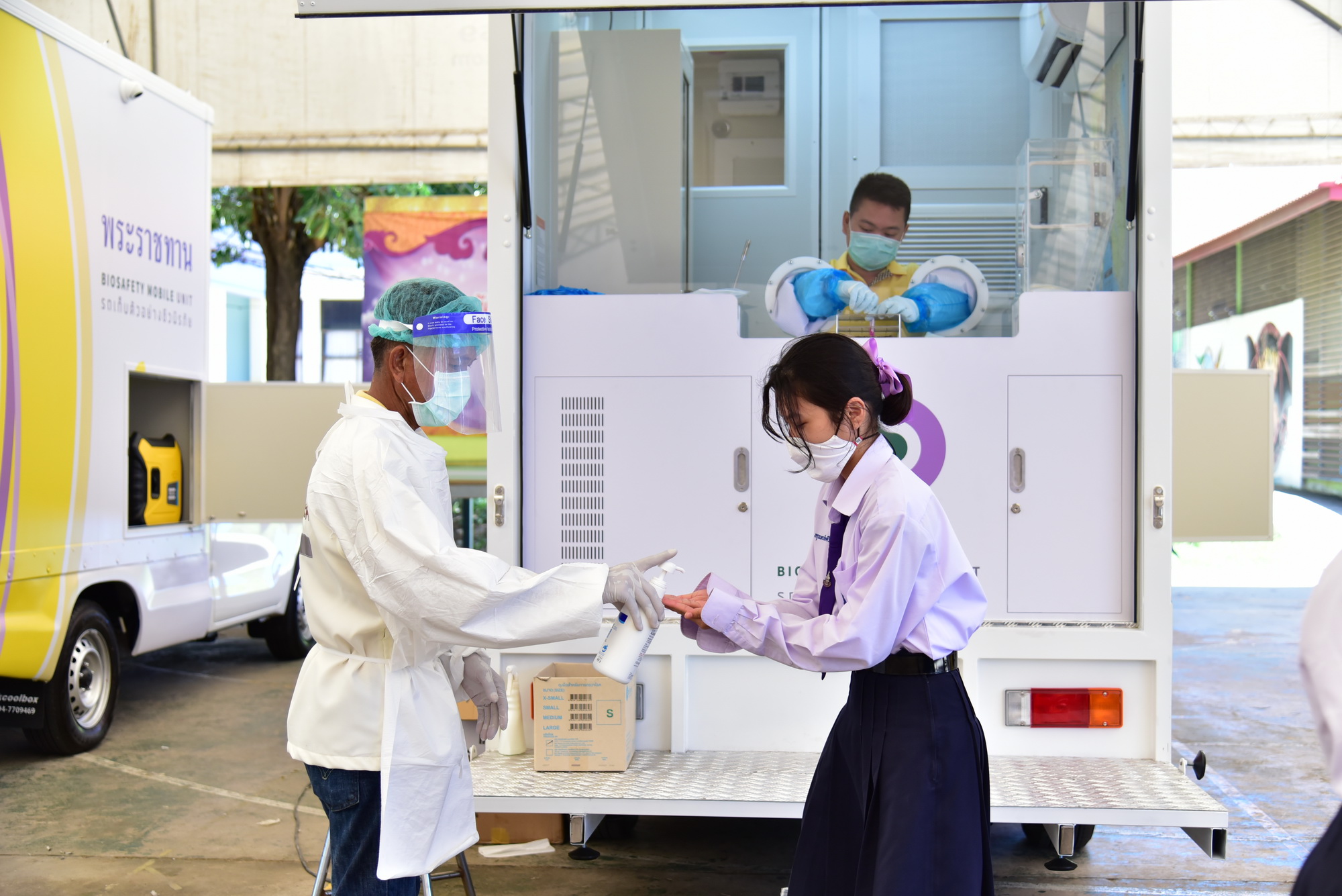 จังหวัดนครปฐมเพิ่มประสิทธิภาพในระบบการเฝ้าระวัง และค้นหาผู้ป่วยโรคติดเชื้อโรคไวรัสโคโรนา 2019 เชิงรุก ด้วยรถตรวจโรคติดเชื้อชีวนิรภัยพร้อมระบบสารสนเทศ ที่พระบาทสมเด็จพระเจ้าอยู่หัวพระราชทานให้แก่กระทรวงสาธารณสุข เริ่มดำเนินการในกลุ่มนักเรียน นักศึกษาที่รวมกลุ่มกันจำนวนมาก และมีความเสี่ยงในการสัมผัสใกล้ชิด เป้าหมาย 1,000 คน