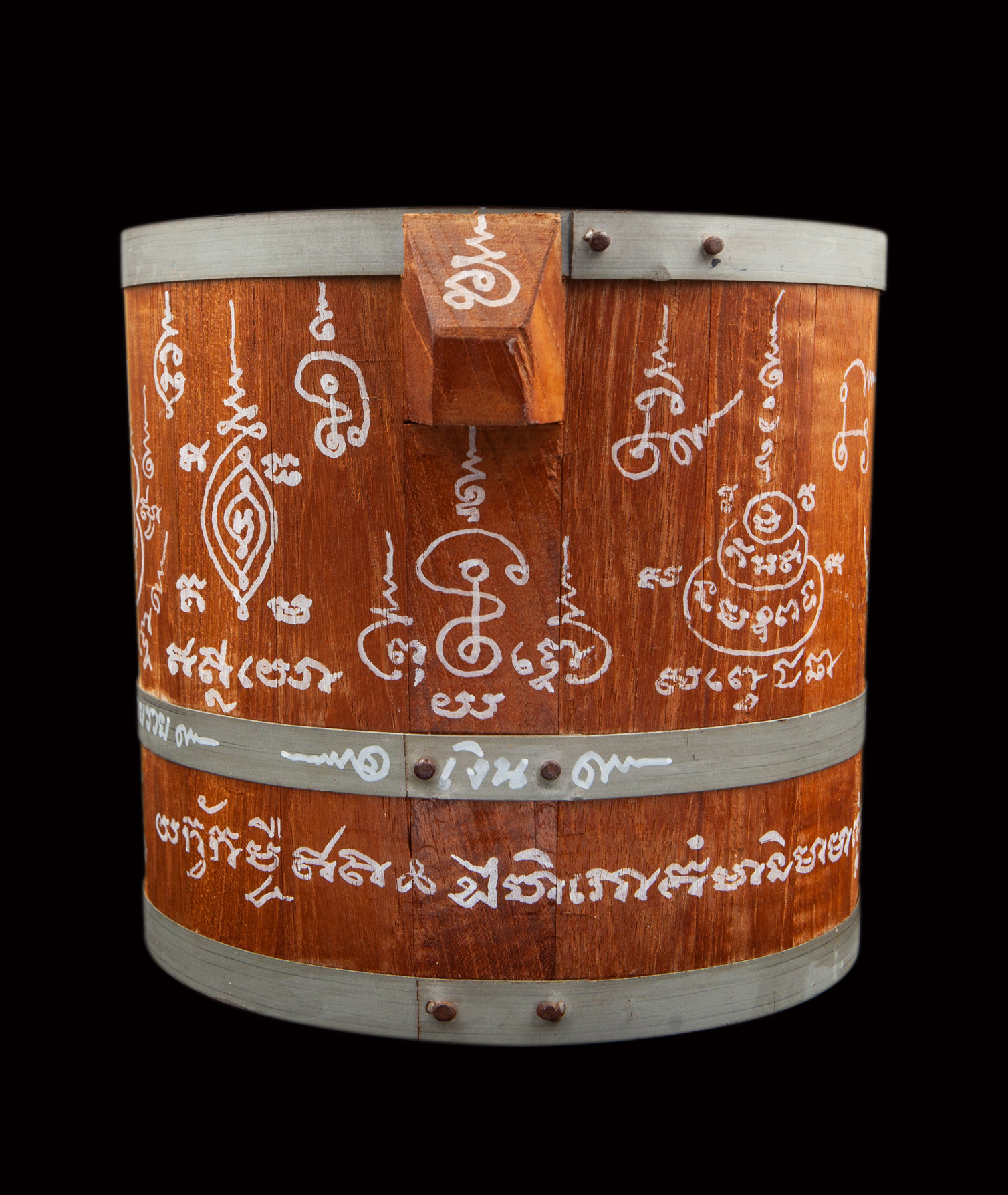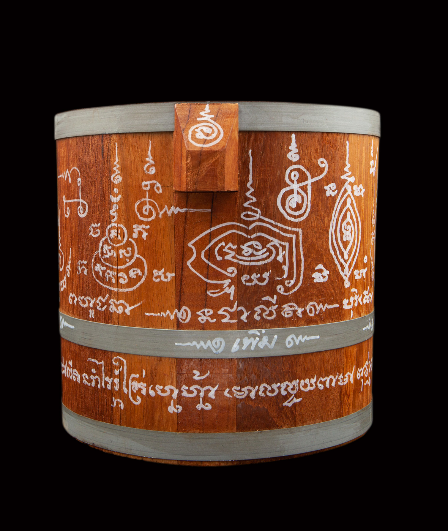 และเป็นพระเกจิที่ท่านเคารพมากที่สุดคือ หลวงพ่อเงิน วัดดอนยายหอม โดยได้รับคำแนะนำในการเจริญสมาธิภาวนา การเขียนอักขระเลขยันต์ ปลุกเสกวัตถุมงคล วิชาอาคมต่างๆหลวงพ่อเงินเมตตาเป็นผู้ถ่ายทอดอย่างไม่ปิดบัง ซึ่งถังเรียกทรัพย์ไม้สักทอง นี้ยังมีอักขระยันต์เรียกทรัพย์ ยันต์โภคทรัพย์ต่างๆที่มีพุทธคุณด้านโภคทรัพย์ ส่งเสริมด้านเมตตามหานิยม ทำมาค้าขึ้น มีเงินไหลมาเทมาไว้รอบถัง ภายในก้นถังยังมีแผ่นทองตะกรุดอักขระยันต์สาลิกาเมตตาเรียกทรัพย์ อีกด้วย เพื่อสมทบทุนบูรณะปฎิสังขรณ์ศาลาประดิษฐานสังขารหลวงพ่อพูลวัดไผ่ล้อม พระเถราจารย์ผู้เข้มขลัง เป็นพระผู้มีเมตตา เป็นพระผู้พัฒนา และเพื่อให้สาธุชนได้กราบนมัสการเพื่อความเป็นมงคลชีวิตต่อไป
