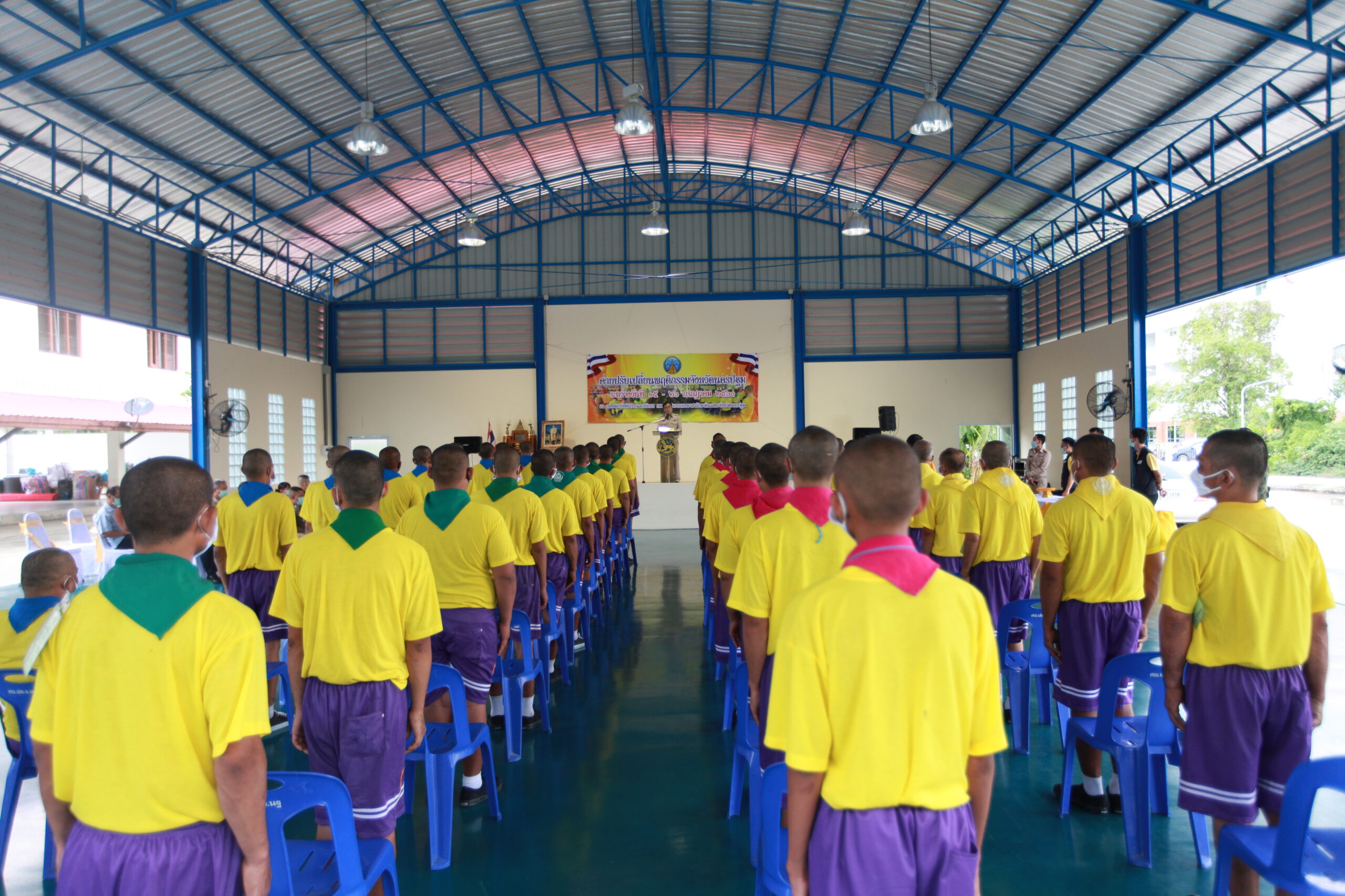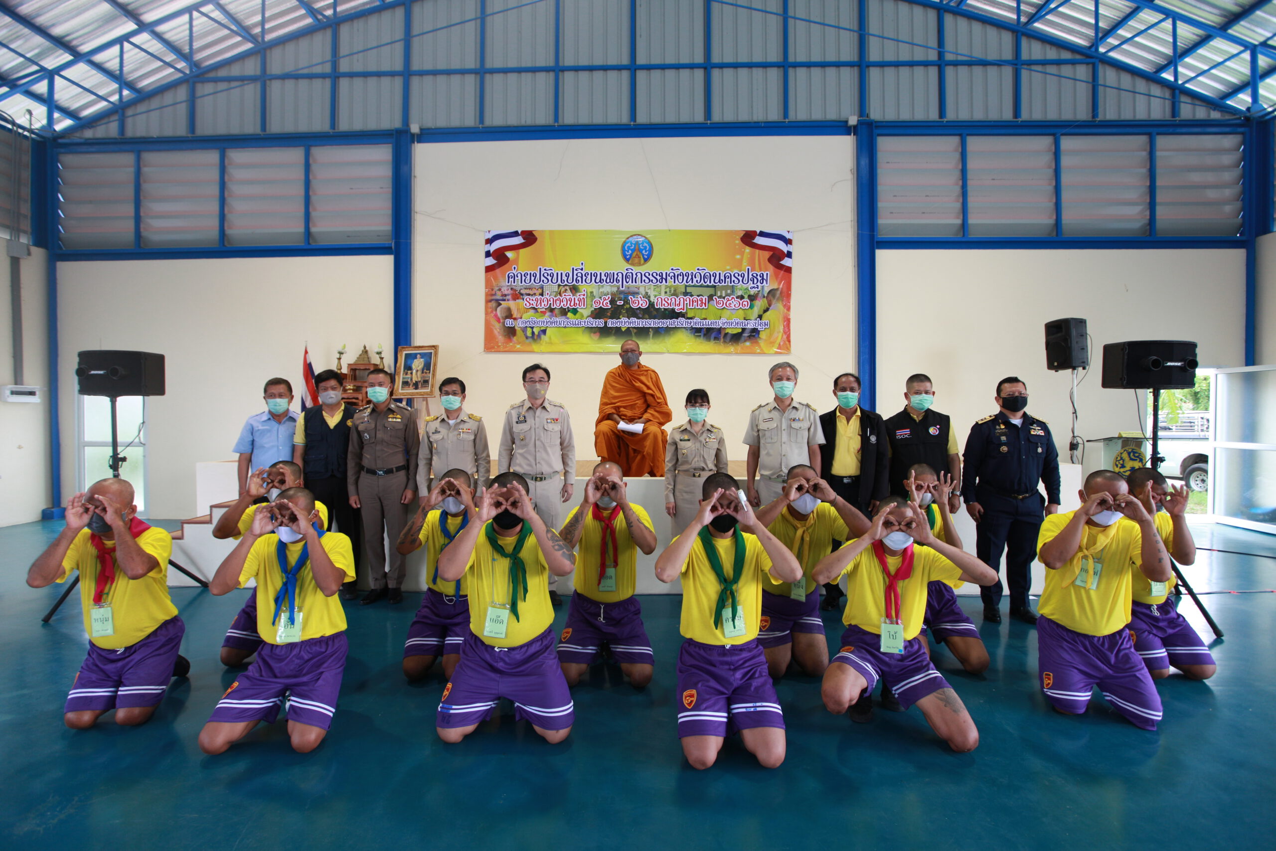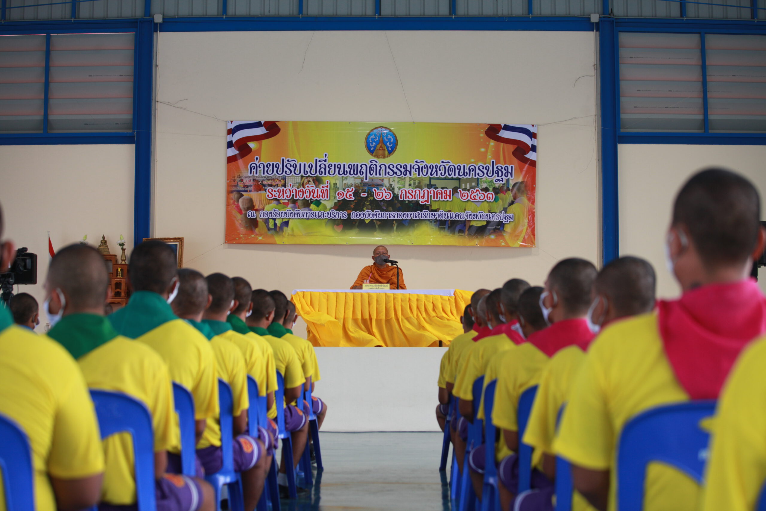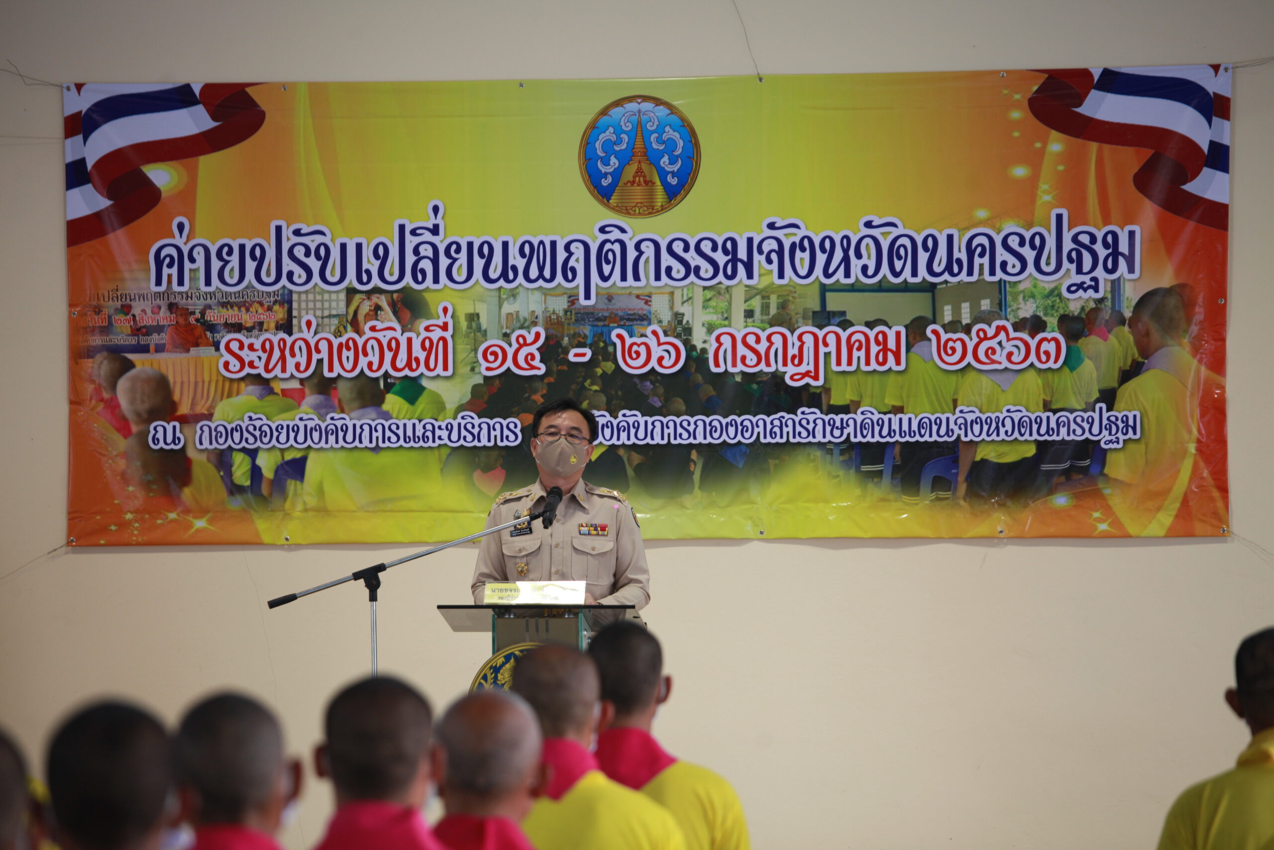 เมื่อวันที่ 21 ก.ค. 63 ที่กองร้อยบังคับการและบริการ กองบังคับการกองอาสารักษาดินแดนจังหวัดนครปฐม นายขจรเกียรติ รักพาณิชมณี รองผู้ว่าราชการจังหวัดนครปฐม เป็นประธานเปิด ค่ายปรับเปลี่ยนพฤติกรรมจังหวัดนครปฐม รุ่นที่ 3 โดยมีนายอนุพงษ์ วงวามูล ปลัดจังหวัดนครปฐม นายนภดล สุกิจปราณีกิจ ป้องกันจังหวัดนครปฐม หัวหน้าส่วนราชการ จังหวัดนครปฐม เข้าร่วมพิธี ซึ่งในการอบรมดังกล่าวมีผู้เข้ารับการบำบัดจำนวน 42 คน ซึ่งเป็นการอบรมรุ่นแรกที่มีขึ้น โดยได้มีการนำรูปแบบการป้องกันการแพร่ระบาดของโควิด-19 เช่นการสวมหน้ากากอนามัย และการเว้นระยะห่างทางสังคม เข้ามาใช้ เป็นรูปแบบใหม่ของการบริหารจัดการภายในค่ายบำบัด ซึ่งในกิจกรรม ได้นิมนต์ พระครูปลัดสิทธิวัฒน์ หลวงพี่น้ำฝน เจ้าอาวาสวัดไผ่ล้อม ตำบลพระปฐมเจดีย์ อำเภอเมือง จังหวัดนครปฐม เป็นองค์บรรยายพิเศษเกี่ยวกับเรื่องปัญหาและพิษภัยของยาเสพติดที่เกิดขึ้นในสังคมให้ผู้เข้าร่วมภายในพิธีได้รับฟังเป็นแนวทางในการป้องกันตัวให้ตระหนักถึงพิษภัยของยาเสพติดที่เกิดขึ้นในแง่มุมต่างๆ และให้ธรรมะเป็นทางสว่างสำหรับผู้ที่กำลังหลงผิดในช่วงที่โลกกำลังเกิดวิกฤติของสังคม ในขณะนี้