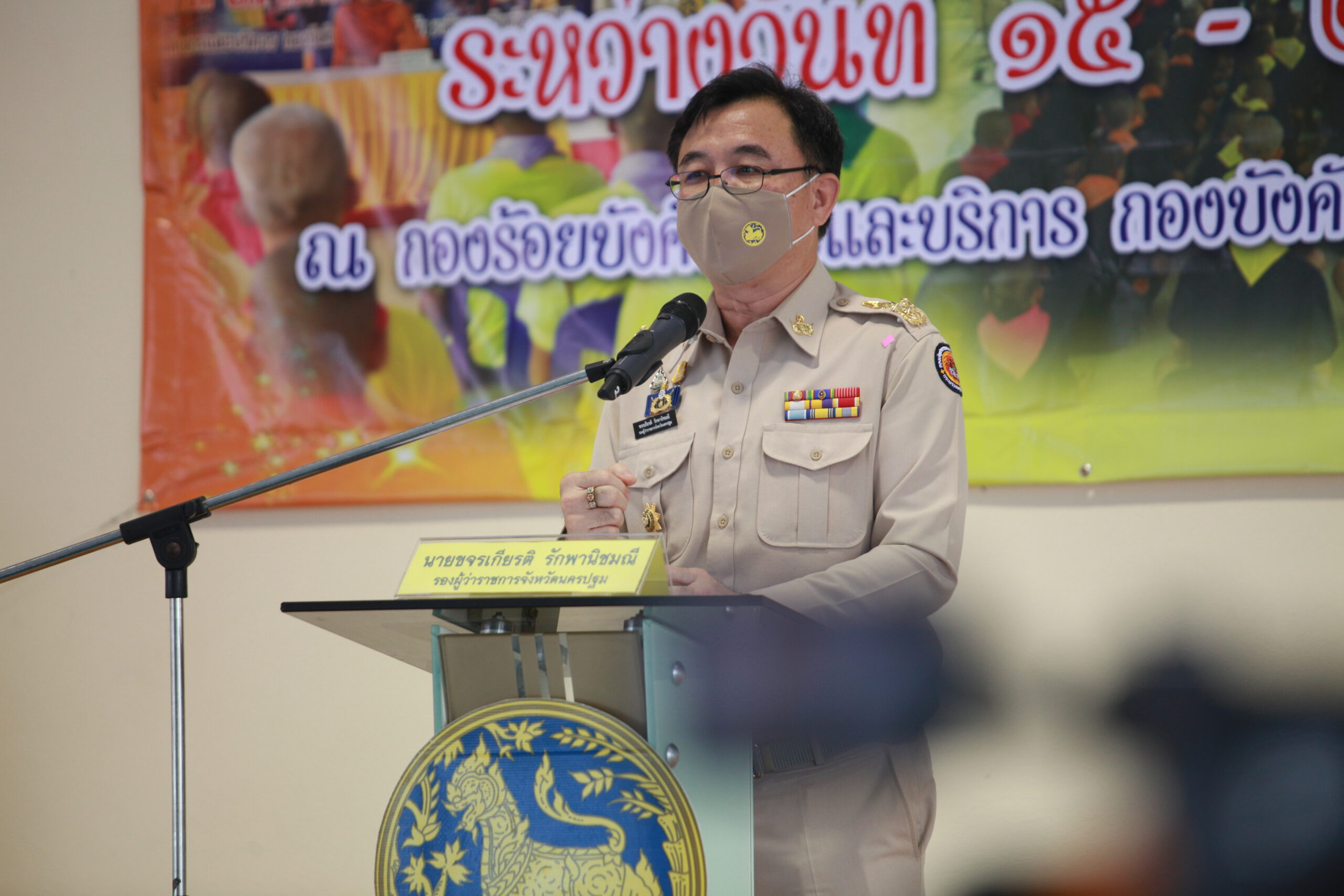 โดยนายขจรเกียรติ รักพาณิชมณี รองผู้ว่าราชการจังหวัดนครปฐม ได้กล่าวเปิดงานและให้โอวาทกับผู้เข้าร่วมโครงการฯว่า แม้จังหวัดนครปฐมจะไม่ได้เป็นแหล่งผลิตยาเสพติดแต่ก็ถือว่าเป็นเส้นทางผ่านของยาเสพติดเพื่อนำไปจำหน่ายยังภูมิภาคอื่นๆ ซึ่งปัจจุบันยังพบว่ายาเสพติดได้มีการแพร่กระจายไปในพื้นที่ชุมชนต่างๆ บริเวณพื้นที่โรงงานอุตสาหกรรม สถานศึกษา ซึ่งแม้จะมีการพยาพยามของทุกภาคส่วนที่จะมีการป้องกันและปราบปรามปัญหาดังกล่าวโดยการตัดวงจรของความต้องการหรือกระบวนการต่างๆ เพิ่มขึ้น ซึ่งยังพ่วงด้วยการเปิดโอกาสให้ผู้ที่คิดจะเริ่มกลับตัวกลับใจ โดยมีการเปิดค่ายปรับเปลี่ยนพฤติกรรมเพื่อเป็นการแก้ไขปัญหาดังกล่าว