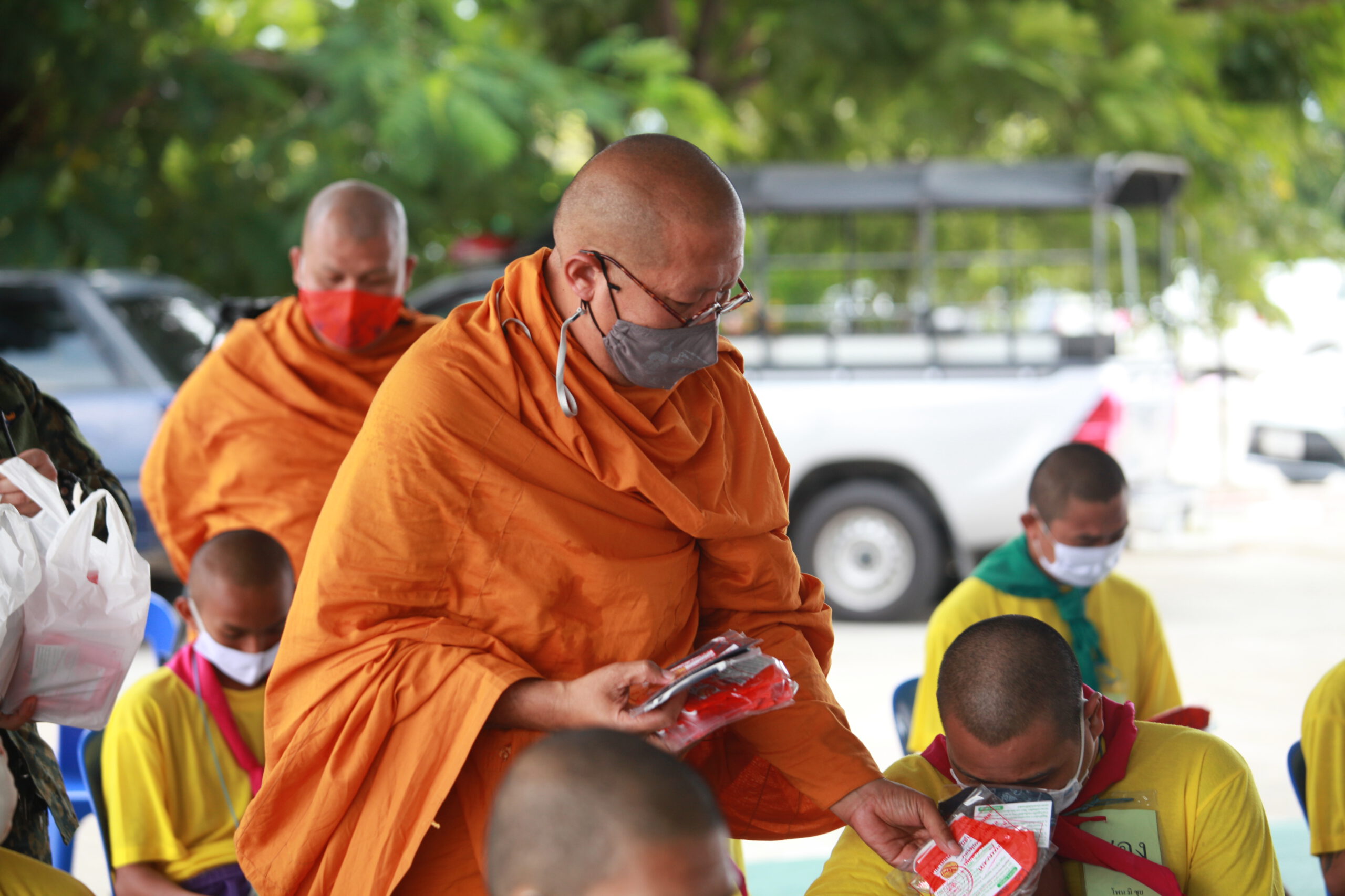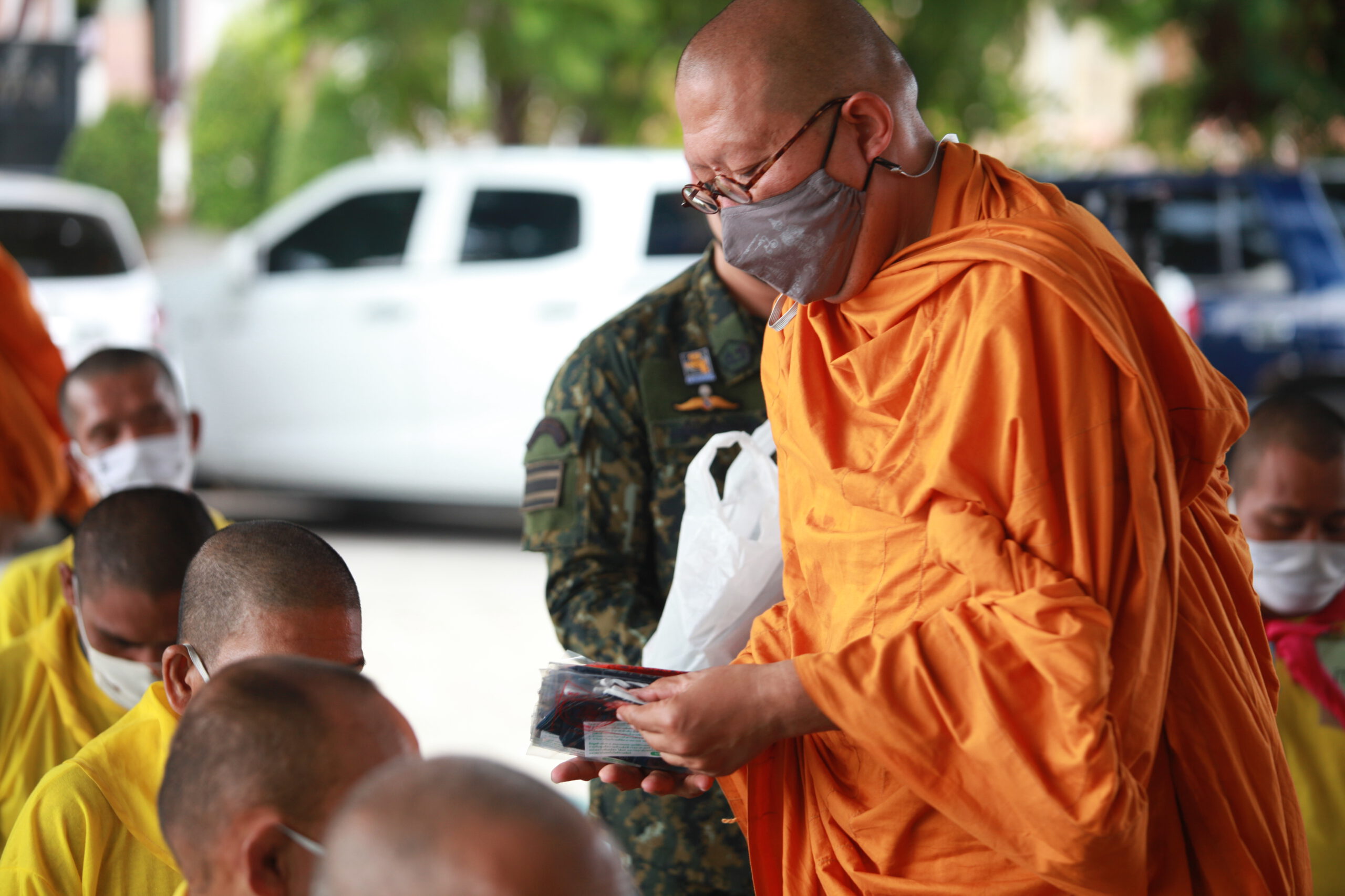 โดยหลังการบรรยายธรรม หลวงพี่น้ำฝน เจ้าอาวาสวัดไผ่ล้อม ยังได้มีการนำหน้ากากอนามัยผ้ามัสลีน นะปัดตลอด มาแจ้งให้กับผู้เข้าร่วมการอบรม เพื่อใช้สำหรับในการเข้าค่ายปรับเปลี่ยนพฤติกรรม พร้อมประสานให้กับเจ้าหน้าที่ที่ทำการฝึกอบรมว่าหากผู้ที่เข้าค่ายจบแล้วยังไม่สามารถจะเลิกยาเสพติดได้ให้ประสานมาเข้าโครงการของวัดไผ่ล้อมเพื่อการเลิกยาอย่างถาวรรวมทั้งเปิดโอกาสให้เข้าร่วมพิธีอุปสมบทหมู่ในเดือนพฤศจิกายนที่จะถึงนี้เพื่อเป็นการชุบชีวิตใหม่กลับตัวเป็นคนดีของสังคมถวายเป็นพระราชกุศลฯ แด่ พระบาทสมเด็จพระเจ้าอยู่หัว สมเด็จพระนางเจ้าฯพระบรมราชินี และสมเด็จพระนางเจ้าสิริกิติ์ พระบรมราชินีนาถ พระบรมราชชนนีพันปีหลวง อีกด้วย