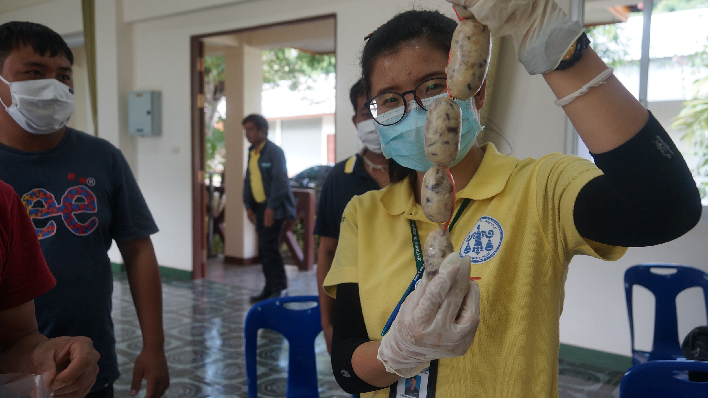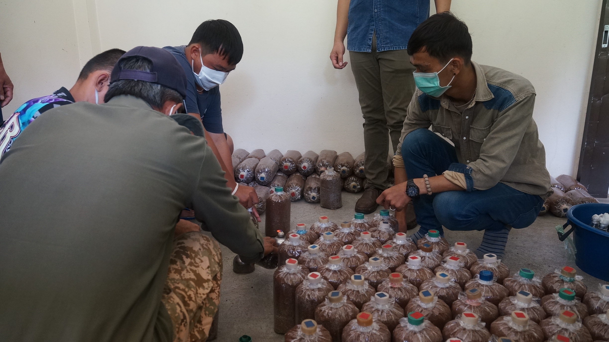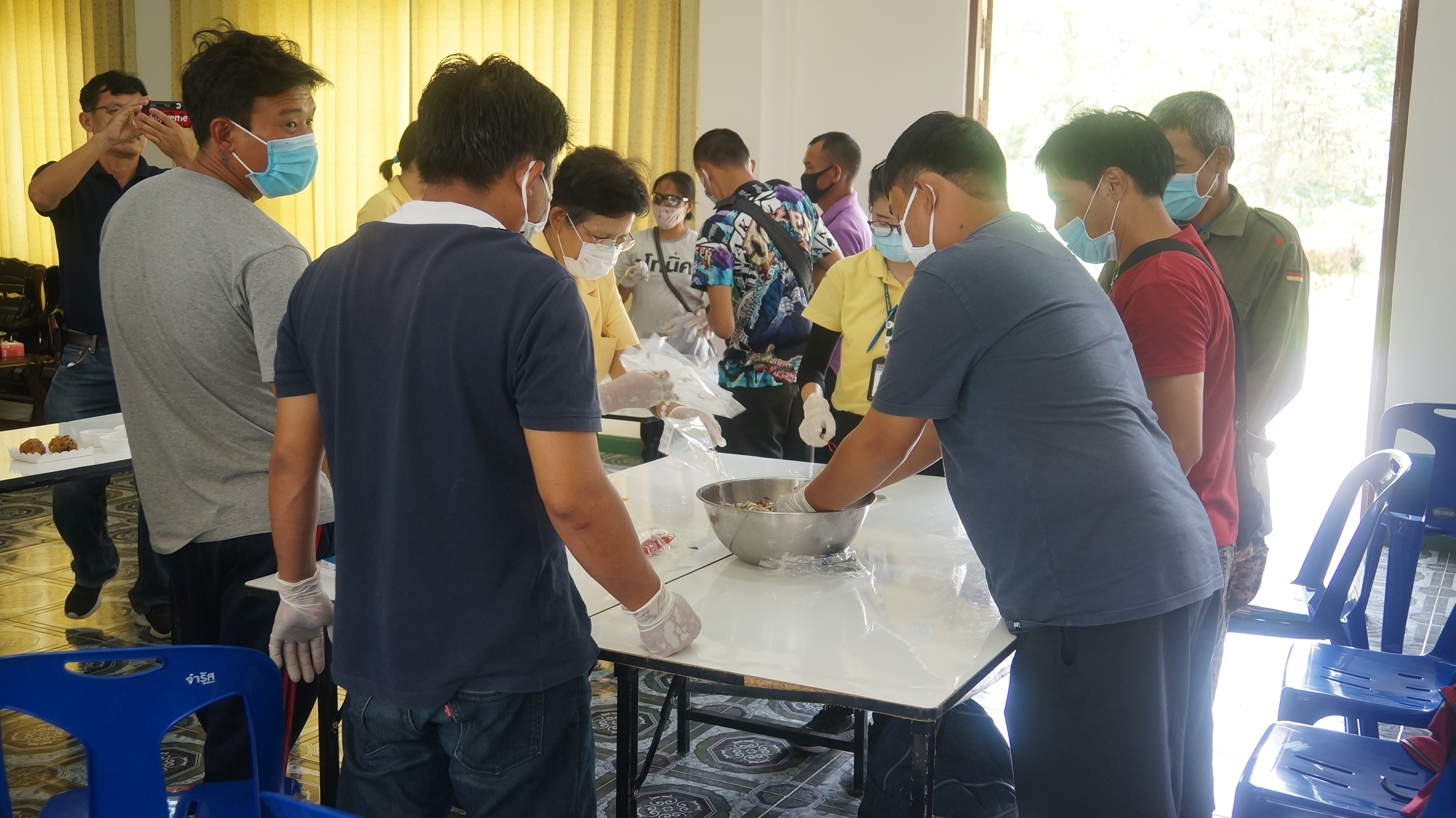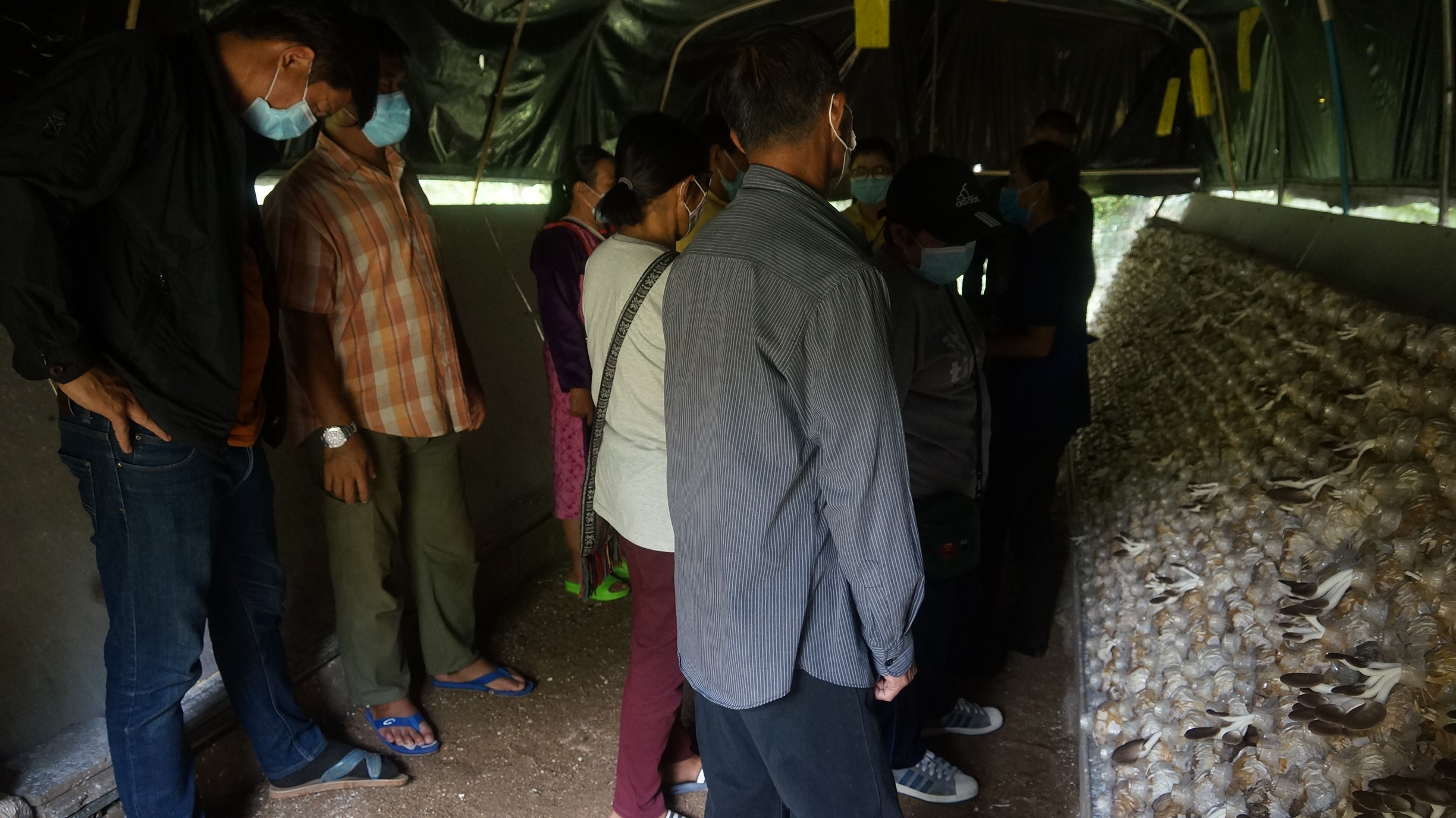 จากนั้นทางนายมนตรี รักชาติ เจ้าหน้าที่ฝ่ายแปรรูปโครงการศึกษาวิจัยและพัฒนาเกษตรกรรมบนพื้นที่สูงของมูลนิธิชัยพัฒนา ได้ฝึกปฏิบัติจริงเกี่ยวกับการแปรรูปเห็ดนางฟ้า เห็ดภูฐาน โดยจัดฝึกทำการแปรรูปเห็ดทำเป็นแหนมเห็ด ใส้กรอกเห็ด ข้าวยำเห็ด ซึ่งสร้างความสนใจกับผู้เข้ารับการฝึกอบรมในวันนี้ ซึ่งได้มีผู้เข้าฝึกอบรมได้สั่งจองก้อนเชื้ออาหารเห็ด เพื่อจะนำไปเพาะเห็ดที่บ้านของตนเองโดยทางฝ่ายผลิตโครงการศึกษาวิจัยและพัฒนาเกษตรกรรมบนพื้นที่สูงของมูลนิธิชัยพัฒนา ได้จัดทำก้อนเชื้อสำเร็จออกจำหน่ายสำหรับประชาชนทั่วไป ซึ่งเป็นก้อนอาหารที่ทำการเขี่ยเชื้อเห็ดแล้วพร้อมที่จะออกผลผลิต ในราคาที่ถูกมากๆเหมาะสำหรับเกษตรกรที่สนใจนำไปบ่มเพาะในเรือนโรงที่บ้านได้เอง และสามารถเก็บรับประทานเองที่เหลือจำหน่ายได้อีกและถ้าออกมามากก็สามารถแปรรูปได้อีกเป็นการสร้างงานเสริมรายได้จากอาชีพหลัก หรือจะนำไปประกอบเป็นอาชีพหลักก็ได้ซึ่งรายได้ดีด้วย ทางสำนักงานคุมประพฤติจังหวัดเชียงใหม่สาขาฝาง และอาสาสมัครคุมประพฤติจังหวัดเชียงใหม่สาขาฝาง ได้หาทางช่วยเหลือผู้กระทำผิดหรือผู้ถูกคุมประพฤติ มาทำการฝึกอาชีพจัดหาทุนเพื่อประกอบอาชีพให้ยืม อีก ซึ่งทำให้หลายๆคนสามารถมีความรู้ความสามารถนำไปประกอบอาชีพได้จริง