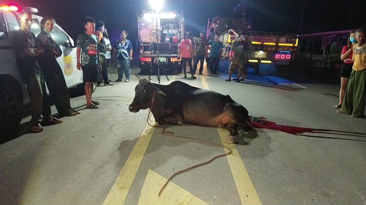เมื่อเวลาประมาณ 22.30 น.ของวันที่ 23 กรกฎาคม 2563 ศูนย์วิทยุสถานีตำรวจภูธรกระทุ่มแบน จ.สมุทรสาคร ได้รับแจ้งมีวัวถูกรถยนต์ชนได้รับบาดเจ็บสาหัส และรถยนต์เก๋งได้รับความเสียหาย 1 คัน เหตุเกิดบนถนนสายใยรัก ต.ดอนไก่ดี อ.กระทุ่มแบน จ.สมุทรสาคร จึงได้แจ้งให้ ร.ต.อ.สมพิษ บุญลือ รองสารวัตรสอบสวน สภ.กระทุ่มแบน เข้าตรวจสอบ และประสานขอกำลังเจ้าหน้าที่กู้ภัยมูลนิธิร่วมกตัญญู เข้าช่วยเหลือวัวที่ได้รับบาดเจ็บ โดยในที่เกิดเหตุพบวัวเพศเมีย สีดำ ชื่อเจ้าเป็ด อายุประมาณ 8 ปี กำลังตั้งท้องแก่ สภาพกึ่งนั่งกึ่งนอน คอตกหมดแรงอยู่กลางถนน มีบาดแผลสาหัสที่ลำตัวด้านหลังข้างขวาเลือดไหลนองพื้นและขาหลังทั้ง 2 ข้างหัก ห่างออกไปประมาณ 10 เมตร พบรถยนต์เก๋งโตโยต้าสีขาว จอดอยู่ สภาพหน้ารถฝั่งขวา มีรอยชนจนบุบ กันชนหน้ารถแตกหลุดออกมา ซึ่งผู้ขับขี่และผู้ที่นั่งมาด้วยในรถเป็นผู้หญิงทั้งคู่ ยืนรอให้การกับเจ้าหน้าที่ตำรวจ แต่ก็ยังมีอาการตกใจ โดยบอกว่า ขณะที่ตนเองขับรถกำลังจะกลับบ้านนั้น ถึงที่เกิดเหตุค่อนข้างจะมืดมาก ตนมองไม่เห็นวัวแม่ลูก 2 ตัว ที่โผล่ออกมาจากข้างทางแล้วกำลังพากันเดินข้ามถนน จนกระทั่งจวนเจียนจะถึงตัววัวแล้ว จึงมองเห็นก็รีบหักหลบแต่ไม่พ้น หน้ารถไปเฉี่ยวชนกับด้านหลังของแม่วัวที่กำลังตั้งท้องลูกอีก 1 ตัว ทำให้ได้รับบาดเจ็บสาหัส