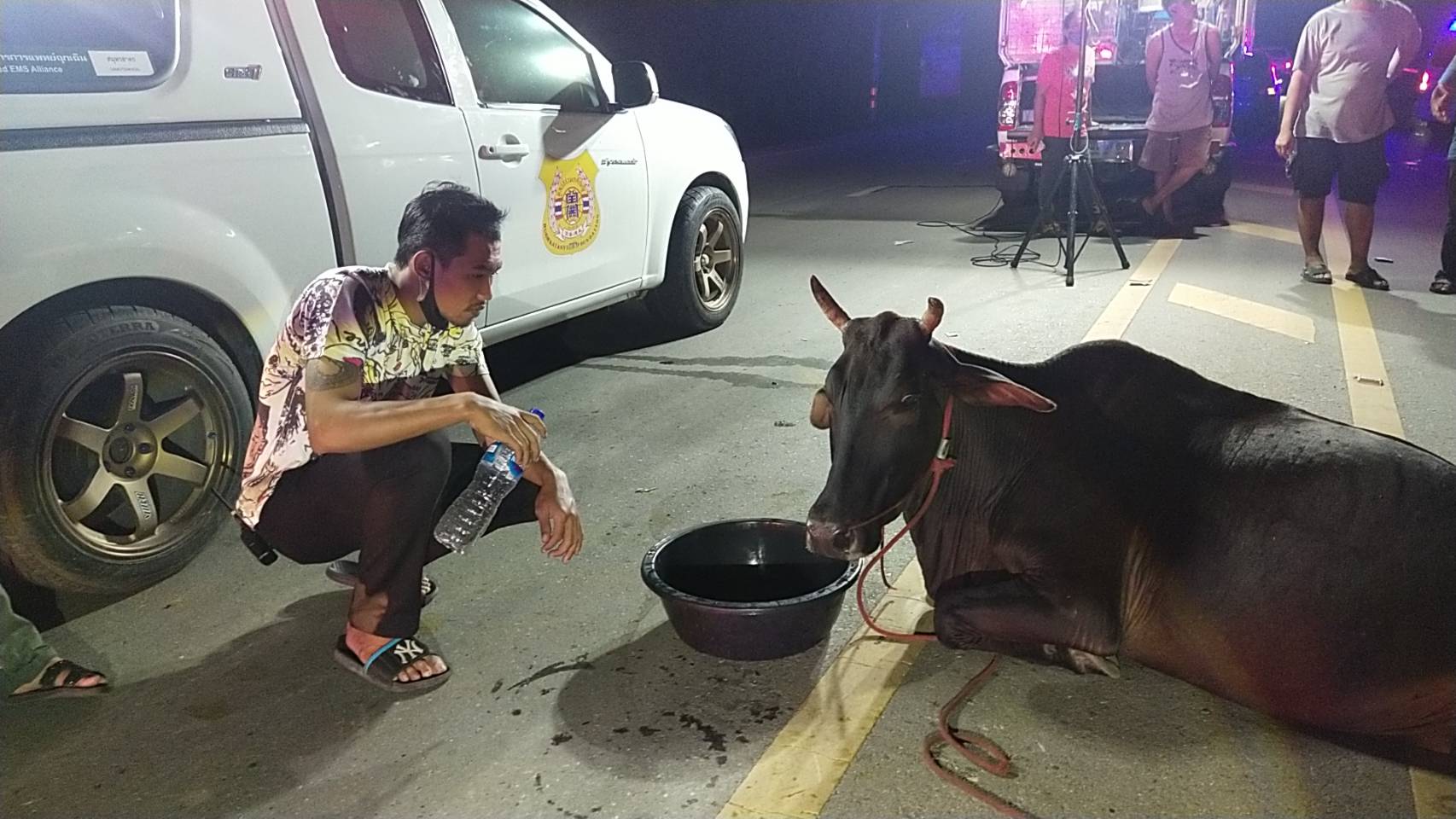 ทั้งนี้เบื้องต้นหลังเกิดเหตุนายบุญส่ง แตงเอี่ยม อายุ 54 ปี ที่อยู่ 35/4 หมู่ที่ 2 ต.ดอนไก่ดี อ.กระทุ่มแบน จ.สมุทรสาคร เจ้าของวัวได้นำลูกวัวกลับไปผูกไว้ที่คอกวัว ซึ่งห่างจากที่เหตุไปราวๆ 2 -3 กิโลเมตร ก่อนที่จะกลับมาให้ปากคำกับเจ้าหน้าที่ตำรวจและพร้อมที่จะรับผิดชอบค่าเสียหายที่เกิดขึ้นตามกฎหมาย เพราะปล่อยให้วัวออกมาเดินบนทางสาธารณะจนทำให้เกิดอุบัติเหตุ แต่ทางเจ้าของรถยนต์เก๋ง ซึ่งตกเป็นผู้เสียหายนั้น ได้ขอให้รีบหาทางพาวัวไปรักษาก่อน ส่วนเรื่องค่าเสียหายเอาไว้ค่อยไปตกลงกันที่โรงพัก