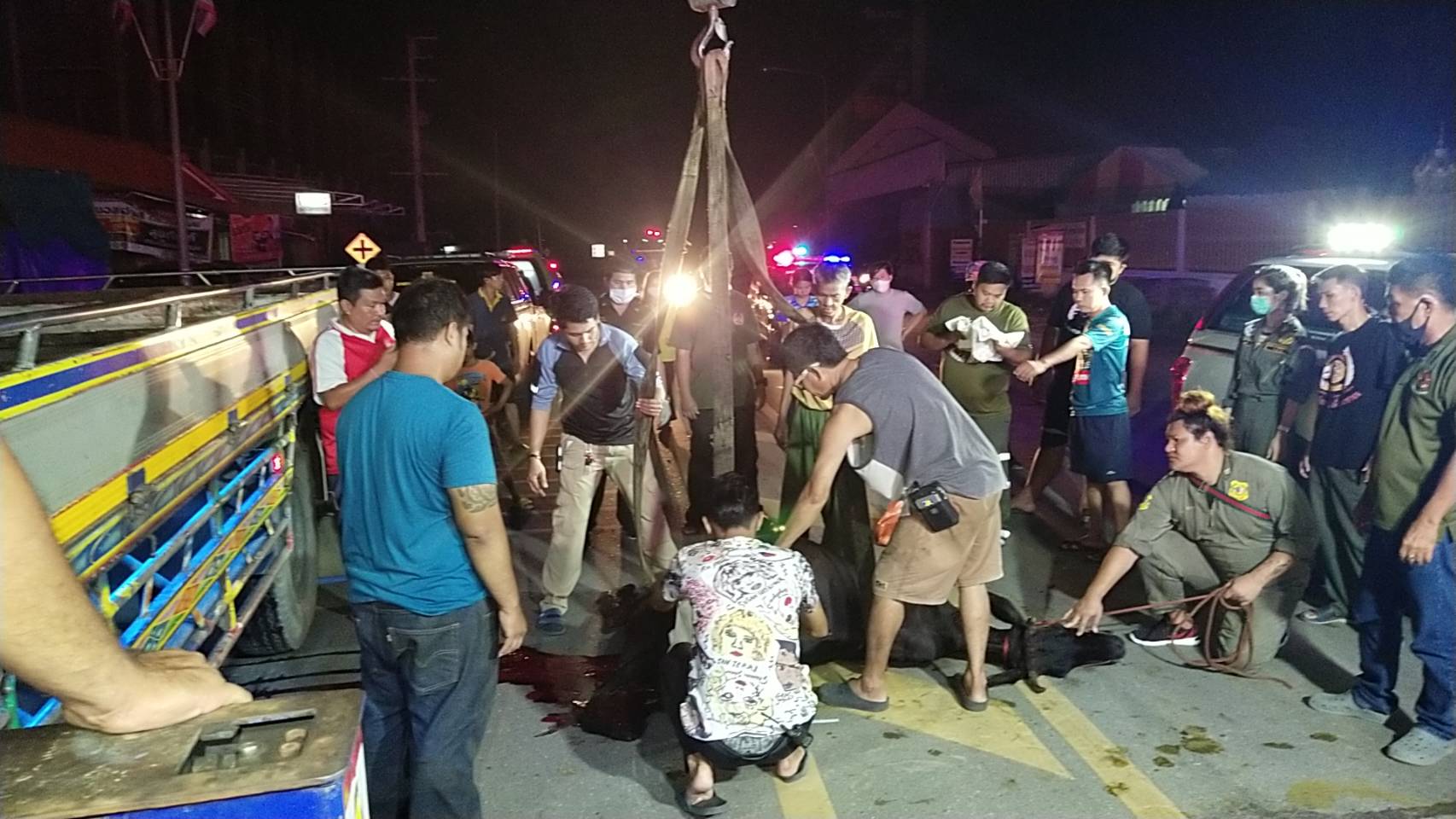 ส่วนทางด้านของเจ้าหน้าที่กู้ภัยมูลนิธิร่วมกตัญญูนั้น ก็ได้พยายามที่จะช่วยกันยื้อชีวิตเจ้าเป็ดแม่วัวที่กำลังตั้งท้องตัวนี้ให้รอดปลอดภัย โดยพยายามที่จะหาที่พาไปรักษา แต่เนื่องจากเป็นเวลากลางคืนสถานพยาบาลสัตว์ใหญ่ปิด และดวงชะตาแม่วัวก็คงถึงคาดแล้ว เพราะสุดท้ายแม่วัวทนพิษบาดแผลไม่ไหวตายลงพร้อมกับลูกในท้อง สร้างความเศร้าสลดใจให้กับเจ้าของวัว รวมถึงเจ้าหน้าที่กู้ภัยทุกคนที่อยู่ในเหตุการณ์ ที่พยายามช่วยอย่างถึงที่สุดแล้ว ซึ่งซากแม่วัวกับลูกในท้องนั้น ก็จะได้ให้ทางเจ้าของวัวนำกลับไปทำการฝังต่อไป