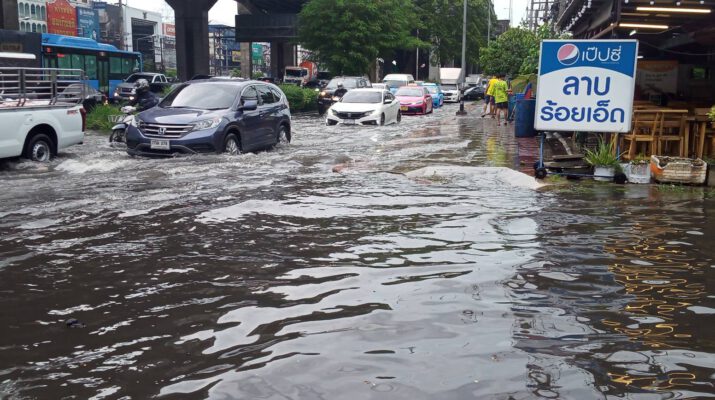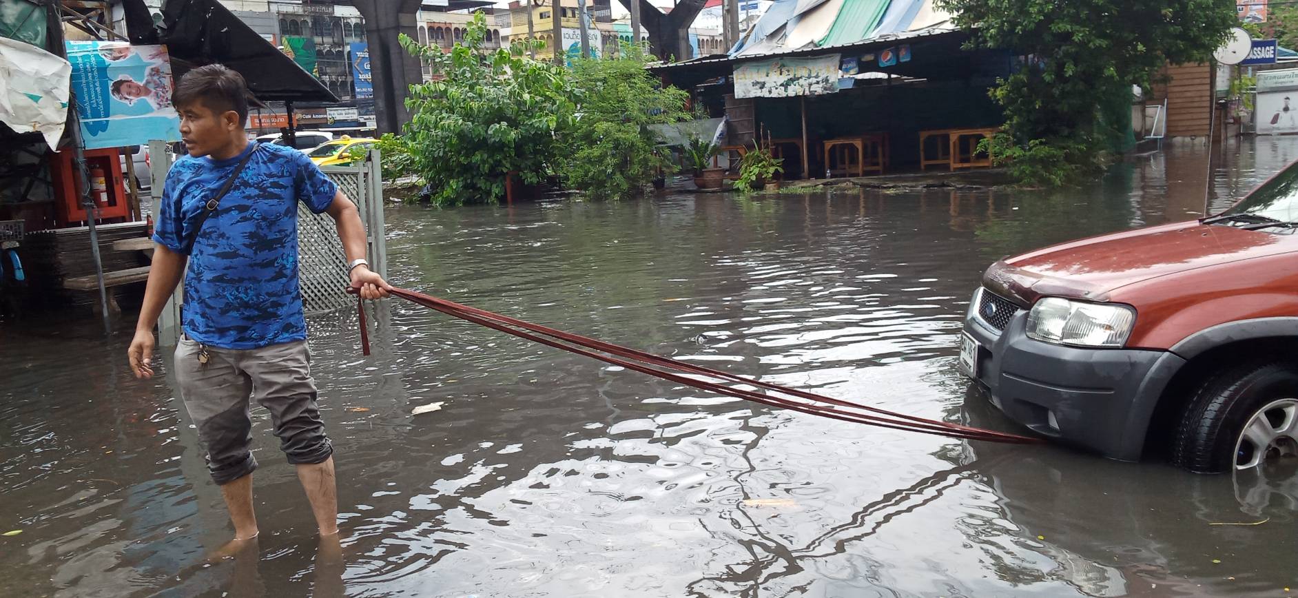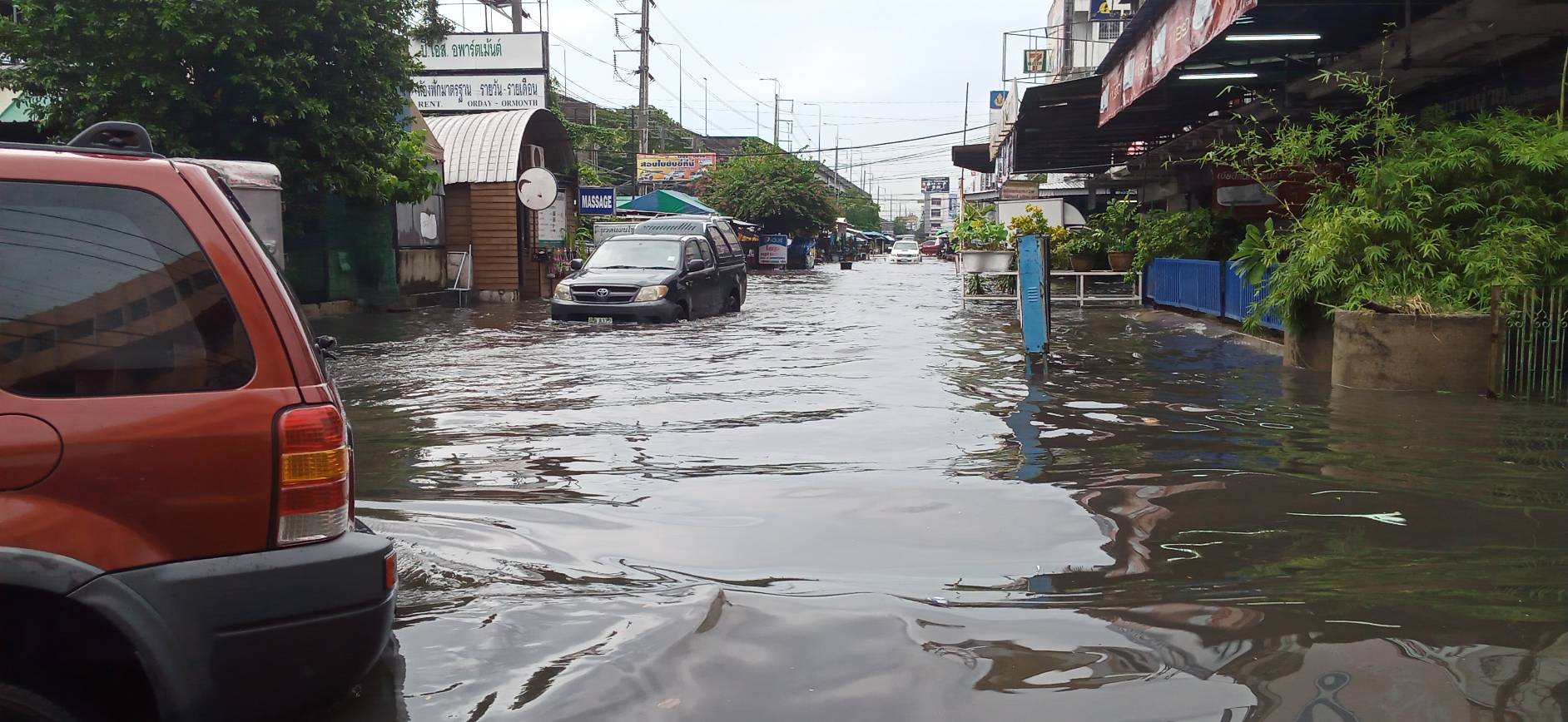 ปทุมธานี ฝนถล่มย่านคูคตอ่วมร้านค้าท่วม การจราจรติดขัดเป็นทางยาว
