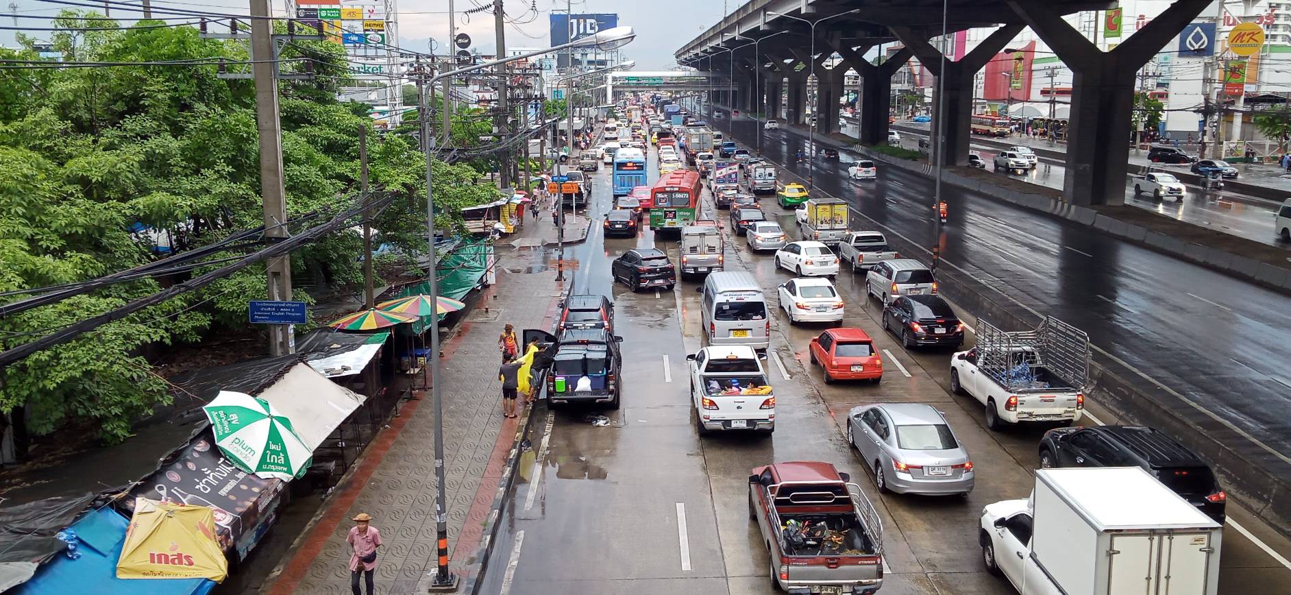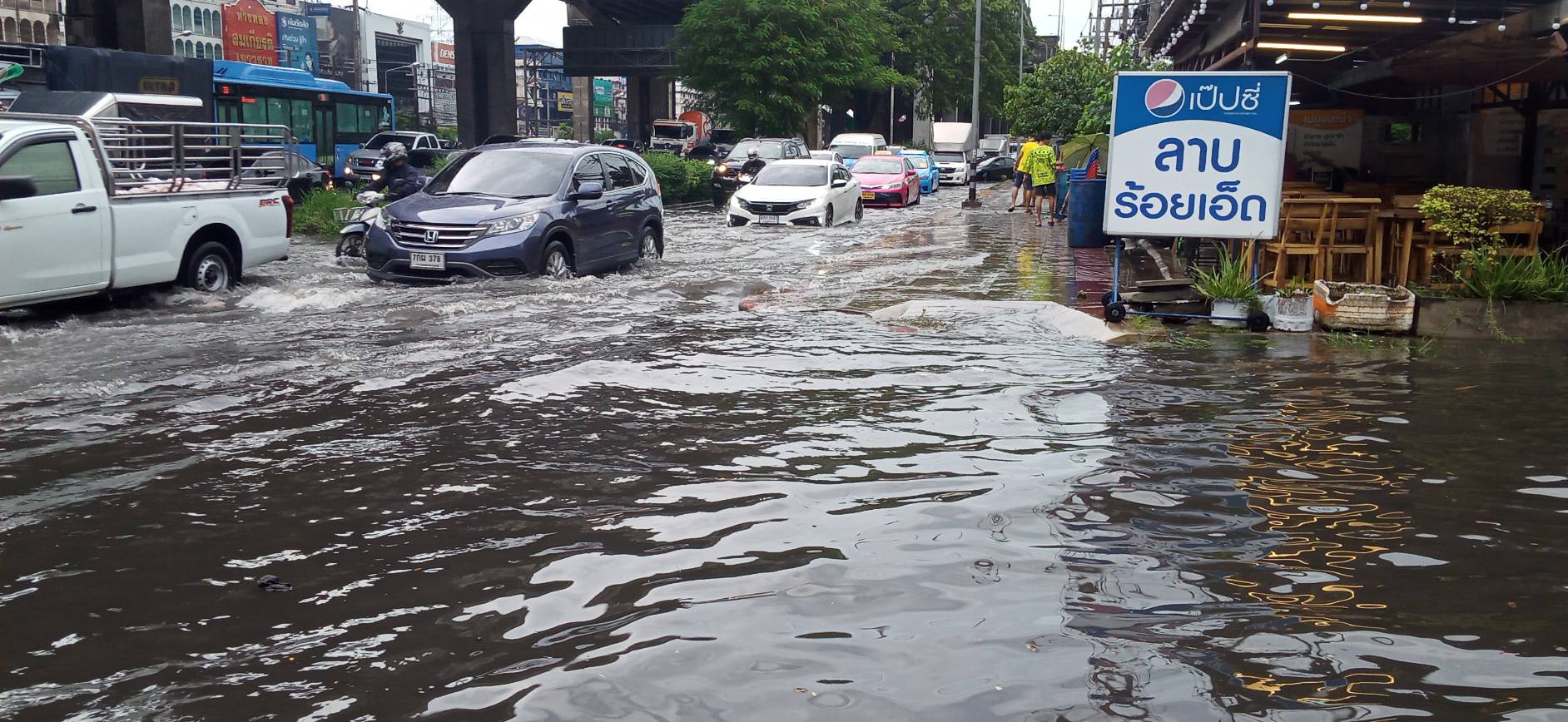 เบื้องต้น ในขณะรายงานยังมีปริมาณน้ำท่วมขังการจราจรติดขัดเป็นทางยาว