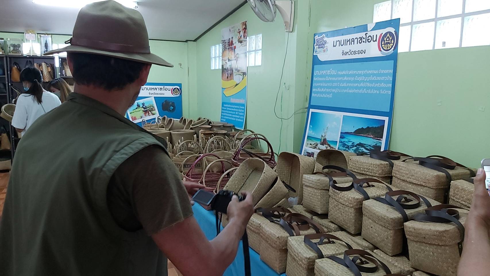 ก่อนที่จะพาคณะสื่อมวลชนเดินทางไปเยี่ยมชมหมู่บ้าน OTOP เพื่อการท่องเที่ยว บ้าน มาบเหลาชะโอน หรือบ้านจักสานบ้านกวี ในพื้นที่หมู่5 ตำบลซากพง อำเภอแกลง จังหวัดระยอง เพื่อเลือกชม ผลิตภัณฑ์ จักสานกระจูดบ้านมาบเหลาชะโอน ซึ่งการสานเสื่อกระจูดเป็นภูมิปัญญาดั้งเดิมของชาวบ้านมาบเหลาชะโอน ที่สืบทอดกันมานานกว่า 200 ปี