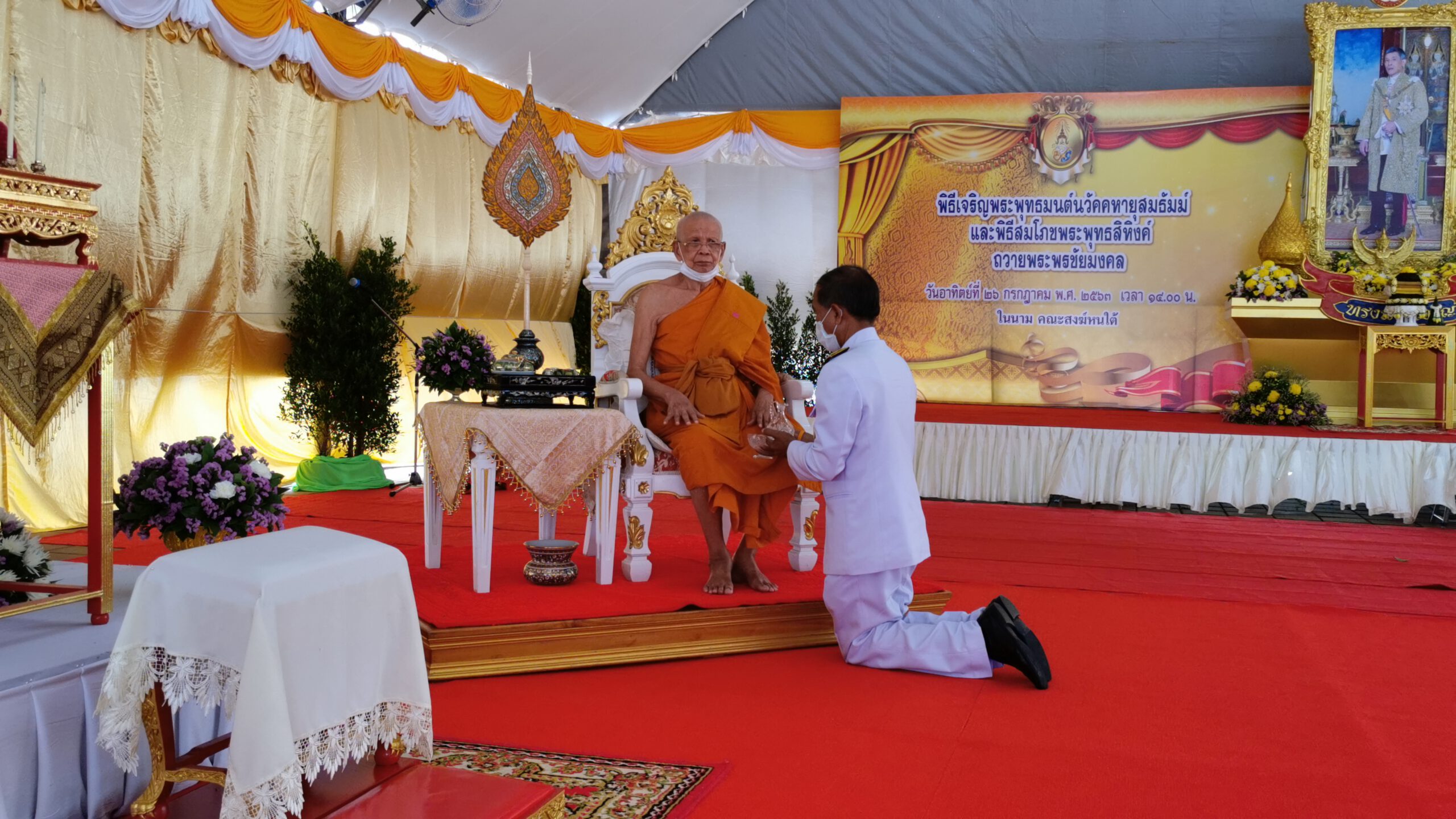 ตรัง จัดพิธีเจริญพระพุทธมนต์นวัคคหายุสมธัมม์ และพิธีสมโภชพระพุทธสิหิงค์ ถวายพระพรชัยมงคล แด่พระบาทสมเด็จพระเจ้า อยู่หัว เนื่องในโอกาสมหามงคลเฉลิมพระชนมพรรษา 28 กรกฎาคม 2563