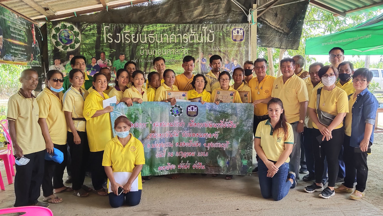 ทรัพยากรธรรมชาติ สิ่งแวดล้อม เพื่อป้องกันและแก้ไขปัญหาจากภัยธรรมชาติ และส่งเสริมการท่องเที่ยวชุมชน สร้างมูลค่าเพิ่มของทรัพย์สินบนดินจากมูลค่าของต้นไม้แล้วปรับ โครงการสร้างการผลิตเกษตรกรลูกค้าและสมาชิกในชุมชนให้มีความมั่นคง พัฒนาประชาชนในชุมชนไปสู่ความพออยู่ พอกิน พอใช้ ตามแนวทางปรัชญาเศรษฐกิจพอเพียง เพื่อเพิ่มศักยภาพในการประกอบอาชีพ สร้างห่วงโซ่คุณค่า (Value Chain) ของการผลิตทางการเกษตรและต้นไม้ และเพิ่มขีดความสามารถในการพัฒนาเศรษฐกิจระดับฐานราก ปัจจุบัน ธ.ก.ส.มีธนาคารต้นไม้ ทั้งประเทศ จำนวน 6,842 ชุมชน จำนวนผู้ขึ้นทะเบียนปลูกต้นไม้กับ ธนาคาร 120,011 ราย จำนวนต้นไม้ที่ขึ้นทะเบียนกับ ธนาคาร ทั้งสิ้น 11.9 ล้านต้น แยกเป็นประเภทพันธุ์ไม้ จำนวน กว่า 180 ชนิด