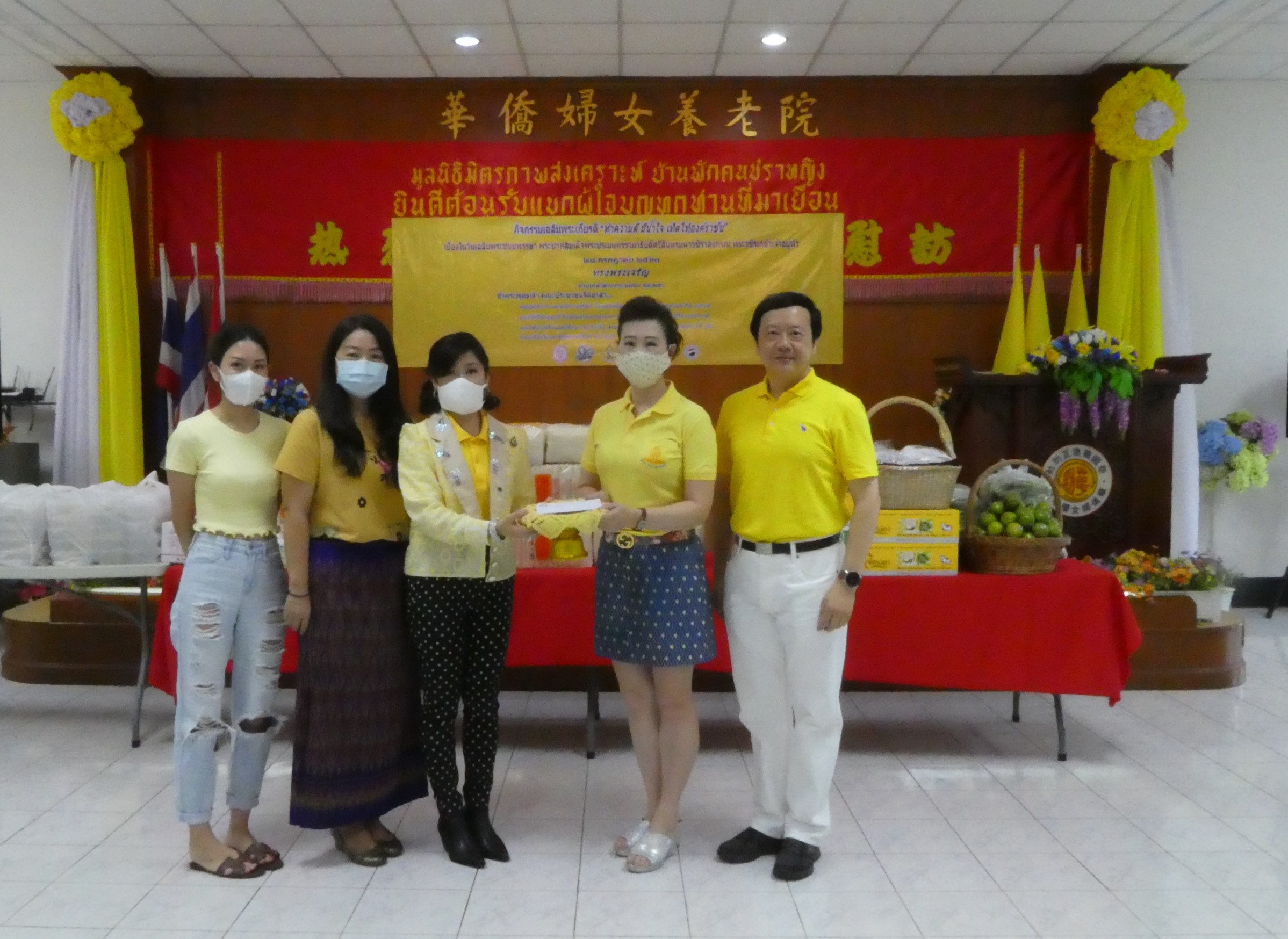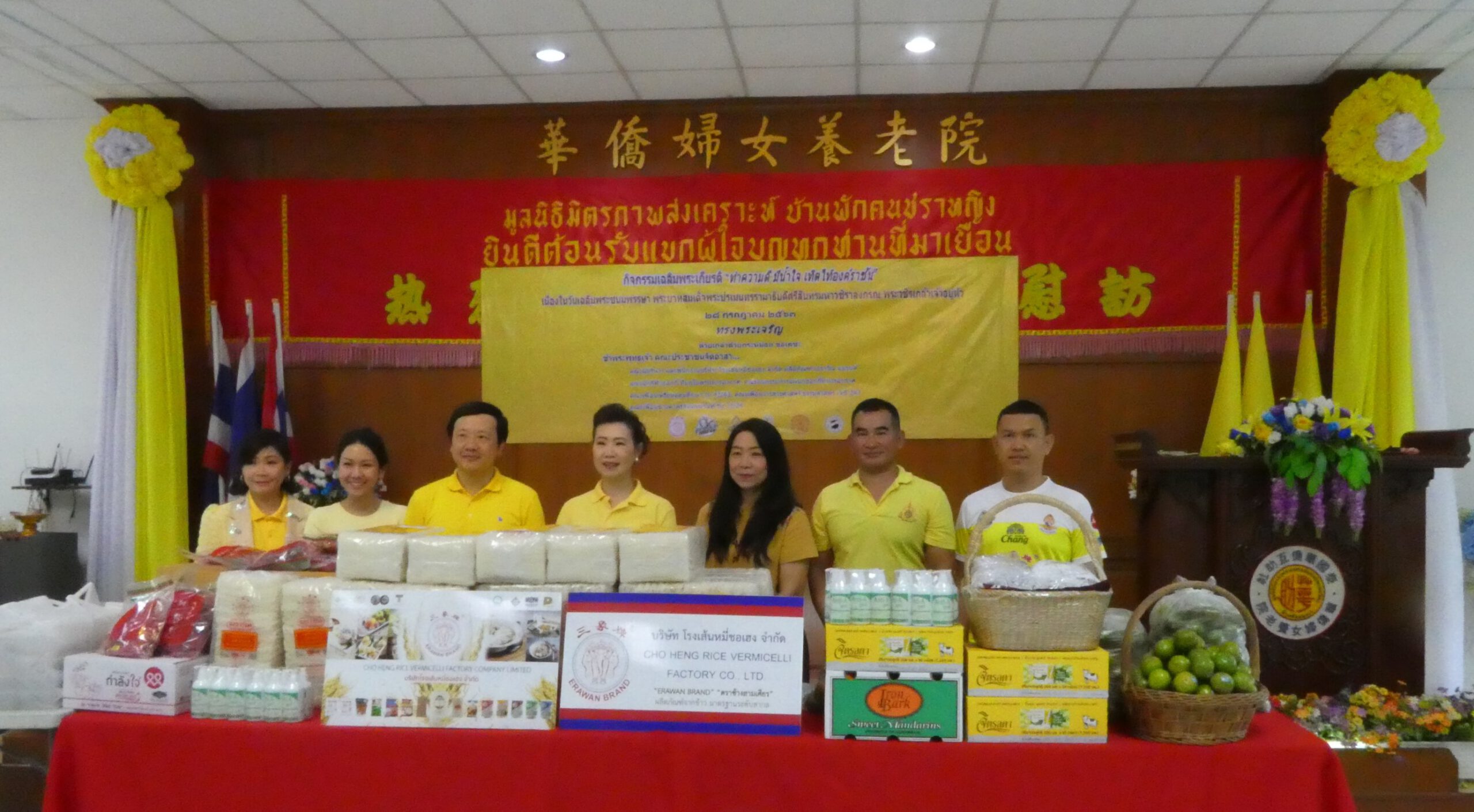 โดยจัดเลี้ยงอาหารกลางวันให้คนชราหญิงจำนวน 102 คนและเจ้าหน้าที่มูลนิธิ จำนวน16คน อีกทั้งมอบหน้ากากอนามัย เจลล้างมือ ผลิตภัณฑ์เส้นหมี่เอราวัณ ผลไม้ นมจิตรลดา น้ำดื่มสมุนไพรกำลังใจ และมอบเงินสนับสนุนค่าใช้จ่ายในมูลนิธิ โดยคุณอัญชลี นทีธำรงสทธิ์ ประธานมูลนิธิมิตรภาพสงเคราะห์บ้านพักคนชราหญิงติวานนท์ เป็นผู้รับมอบ .