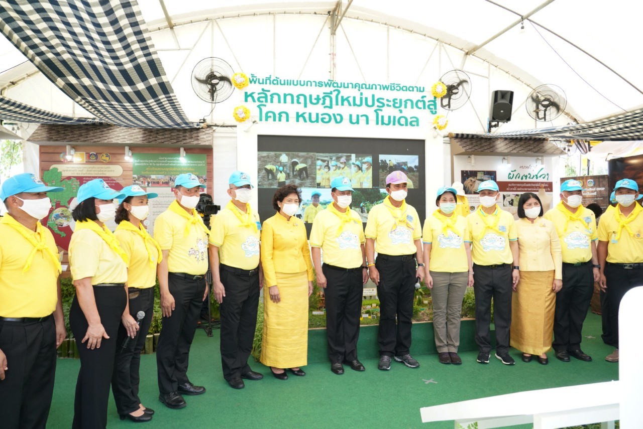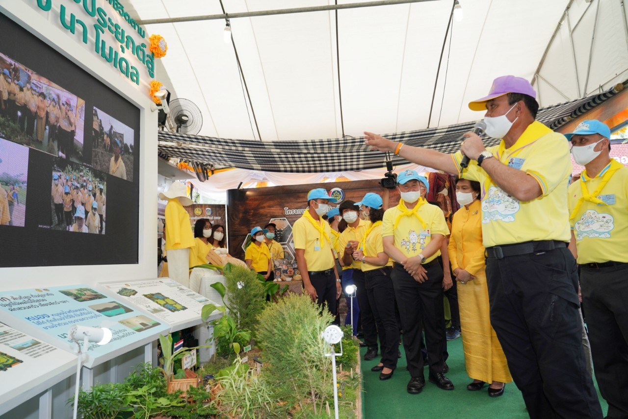 ขณะที่ นายสุทธิพงษ์ จุลเจริญ อธิบดีกรมการพัฒนาชุมชน (พช.) กล่าวว่า นิทรรศการที่ได้จัดแสดงครั้งนี้ แบ่งออกเป็น 3 ส่วน คือ ส่วนที่ 1 การสร้างความมั่นคงทางอาหาร เป็นการน้อมนำหลักปรัชญาของเศรษฐกิจพอเพียงมาปรับใช้ในการดำรงชีวิต กิจกรรมสาธิตการปลูกผักสวนครัว ส่วนที่ 2 การสร้างความมั่นคงด้านอาชีพ และรายได้ จัดฉายวีดิทัศน์และนิทรรศการการน้อมนำแนวทางโครงการอันเนื่องมาจากพระราชดำริมาสู่การปฏิบัติ การขับเคลื่อนโครงการพัฒนาพื้นที่ต้นแบบการพัฒนาคุณภาพชีวิตตามหลักทฤษฎีใหม่ ประยุกต์สู่ “โคก หนอง นา โมเดล” และส่วนที่ 3 การเชื่อมโยงผลิตภัณฑ์ชุมชนสู่ตลาด ตามวิถีแบบใหม่ (New Normal) จัดแสดงภูมิปัญญามาผสมผสานกับเทคโนโลยีสมัยใหม่ การแปรรูป พัฒนาผลิตภัณฑ์ การตลาดตามวิถีใหม่ New Normal