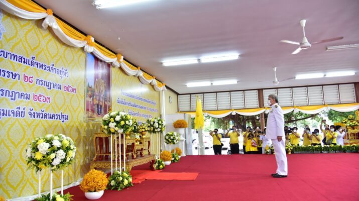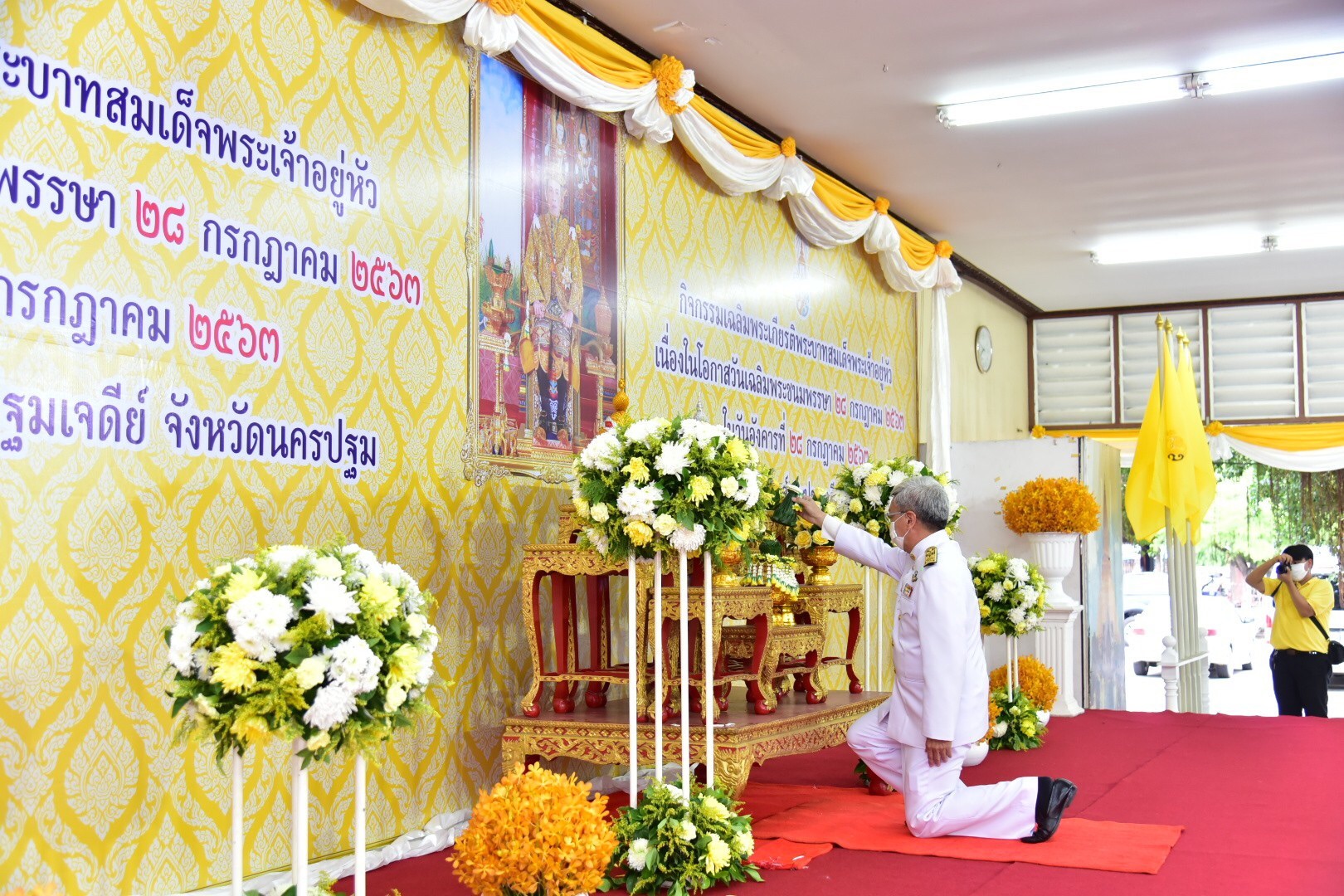 โดยผู้ว่าราชการจังหวัดนครปฐม เปิดกรวยกระทงดอกไม้ ธูปเทียนแพถวายราชสักการะ เบื้องหน้าพระบรมฉายาลักษณ์ พระบาทสมเด็จพระเจ้าอยู่หัว จากนั้นนำผู้เข้าร่วมพิธีลงนามถวายพระพรชัยมงคล นำกล่าวถวายสัตย์ปฏิญาณ และร่วมร้องเพลงสรรเสริญพระบารมี เพื่อน้อมรำลึกในพระมหากรุณาธิคุณของสมเด็จพระเจ้าอยู่หัว ที่ทรงประกอบพระราชกรณียกิจน้อยใหญ่ เพื่อความผาสุกของพสกนิกรชาวไทยทุกหมู่เหล่า