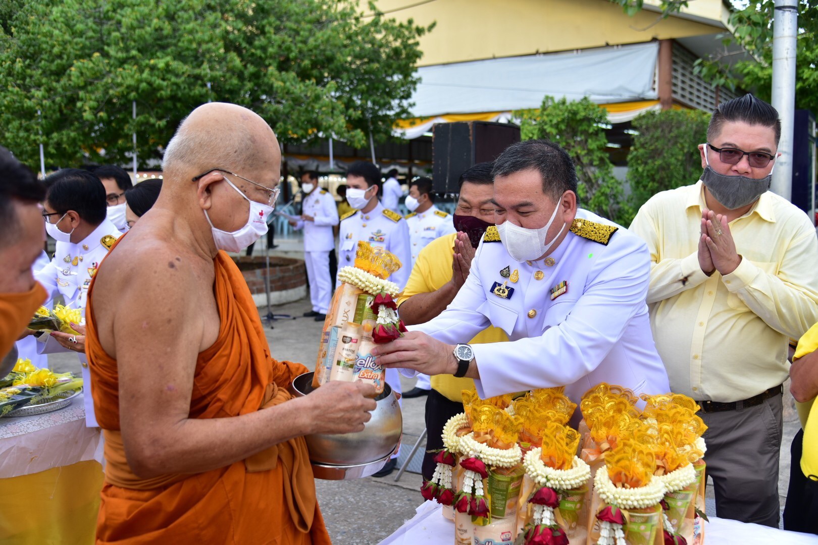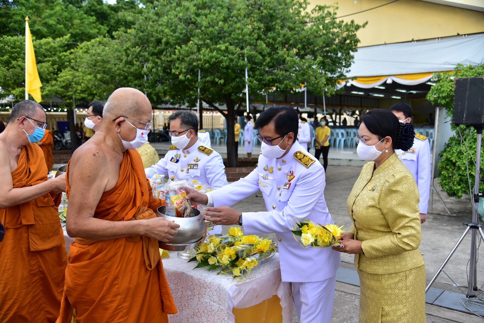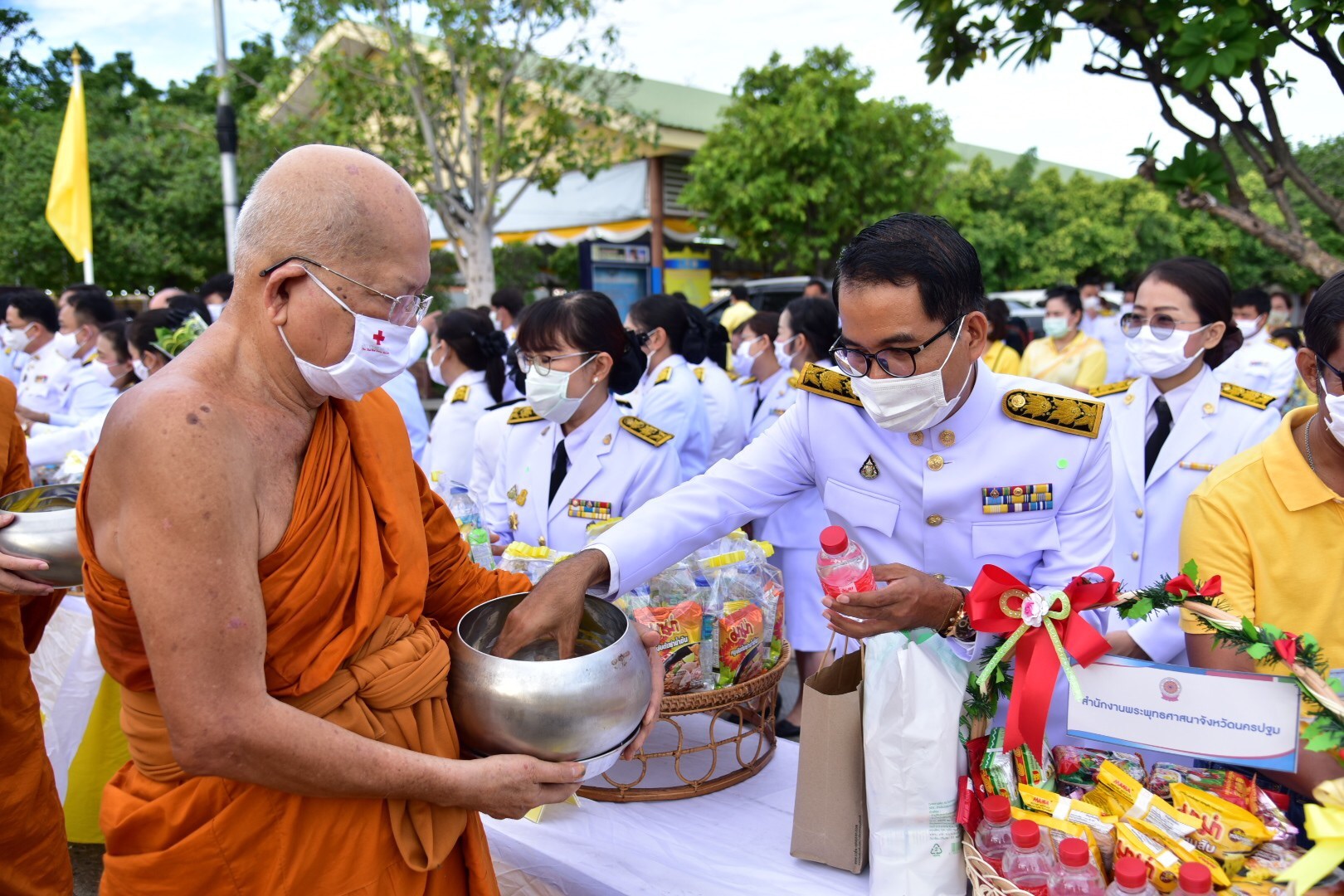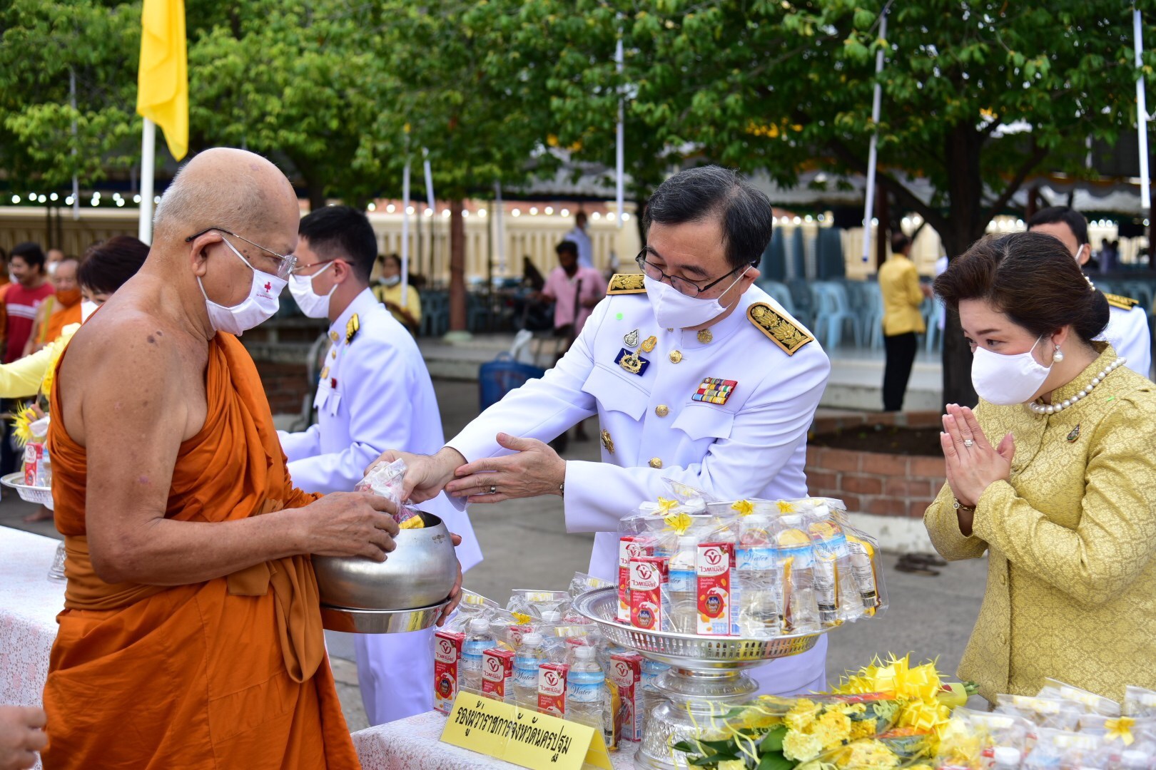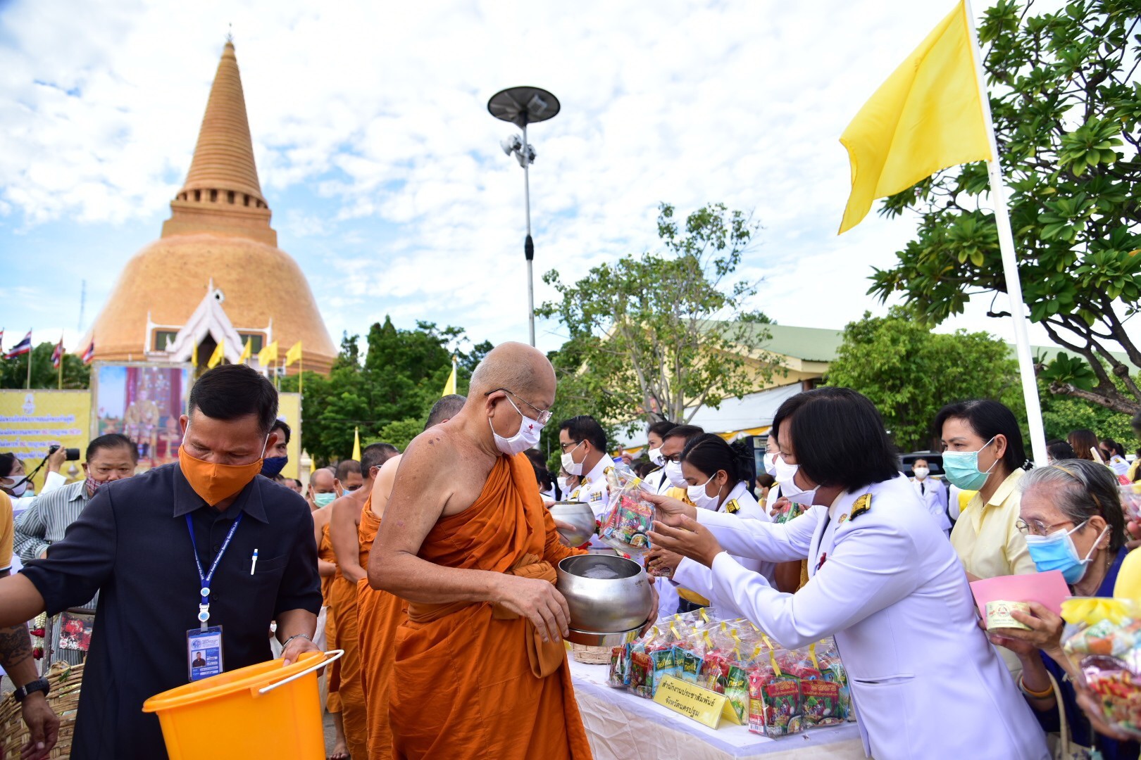 นครปฐม จัดพิธีทำบุญตักบาตรพระสงฆ์ 69 รูป ถวายพระราชกุศลแด่ พระบาทสมเด็จพระเจ้าอยู่หัว เนื่องในโอกาสมหามงคลวันเฉลิมพระชนมพรรษา 28 กรกฎาคม 2563