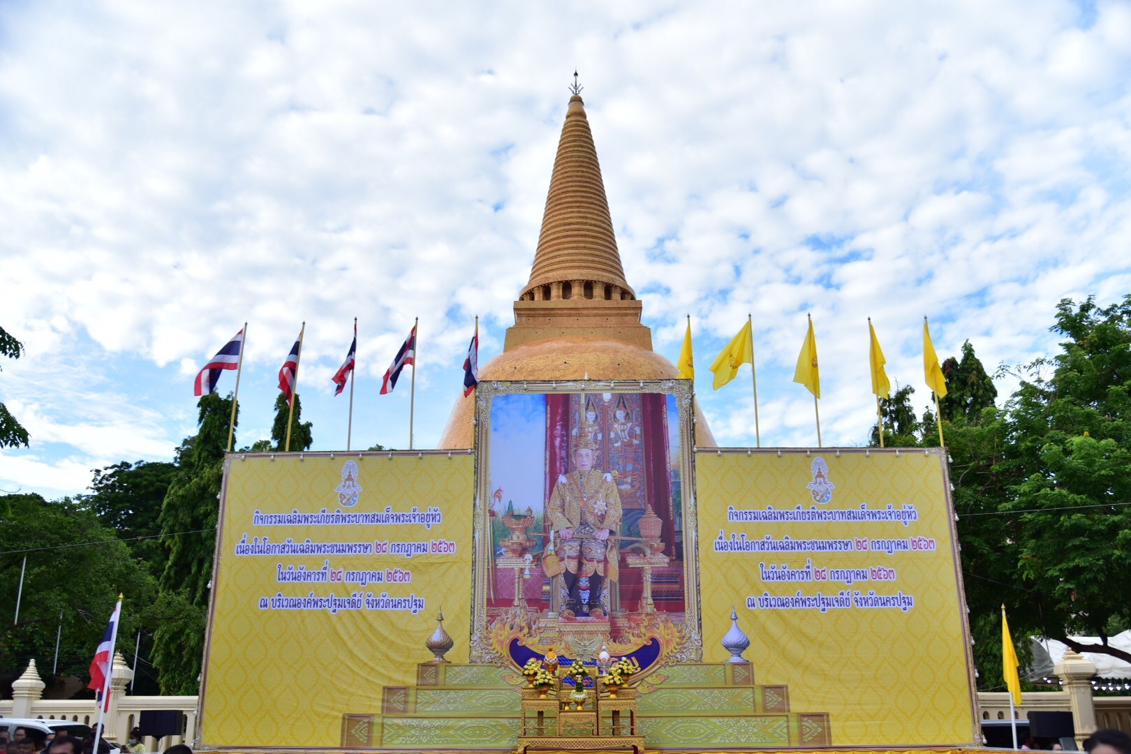 ซึ่งในวันนี้ จังหวัดนครปฐมได้จัดกิจกรรรมต่างๆ เนื่องในโอกาสวันเฉลิมพระชนมพรรษา พระบาทสมเด็จพระเจ้าอยู่หัว ประกอบด้วย พิธีลงนามถวายพระพรชัยมงคลและถวายราชสักการะ, พิธีถวายสัตย์ปฏิญาณเพื่อเป็นข้าราชการที่ดีของแผ่นดิน, การจัดกิจกรรมจิตอาสา “ชีวิตใหม่ใต้ร่มพระบารมี เราสร้างไปด้วยกัน” และพิธีถวายเครื่องราชสักการะ จุดเทียนถวายพระพรชัยมงคล ณ ศาลากองอำนวยการ องค์พระปฐมเจดีย์ ตั้งแต่เวลา 19.00 น.