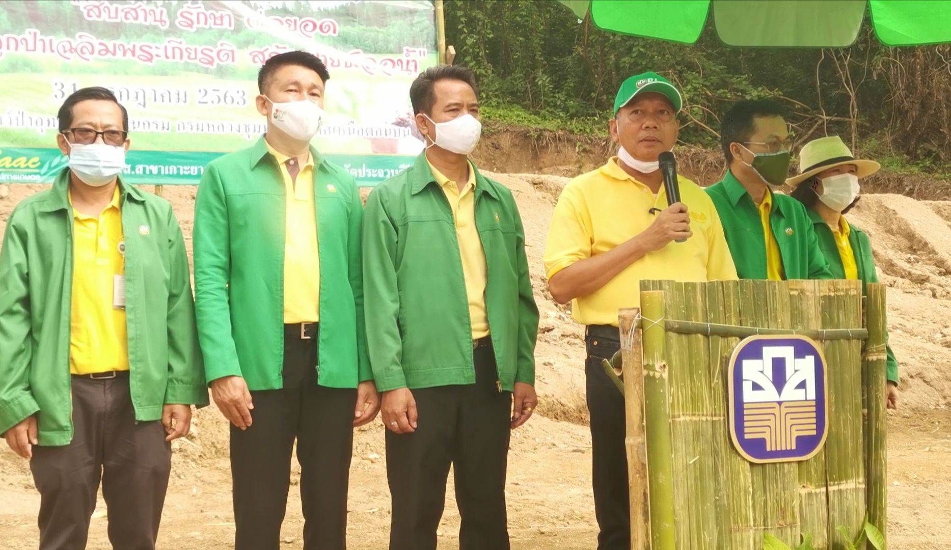วันที่ 31 กรกฎาคม 2563 ที่ป่าต้นน้ำ น้ำตกไทรคู่ เขตรักษาพันธุ์สัตว์ป่า อุทยานสด็จในกรม กรมหลวงชุมพรด้านทิศเหนือตอนบน จังหวัดประจวบคีรีขันธ์ นายเลิศยศแย้มพราย นายอำเภอบางสะพาน นายยุวพล วัตถุ ผู้อำนวยการฝ่ายกิจการสาขาภาคตะวันตก นายอดิเรก วงษ์คงคำ ผอ.ฝ่ายพัฒนาลูกค้าและชนบท พ.อ.กรกานต์ นาเวชวนิชกุล รอง ผอ.กอ.รมน.จ.ประจวบฯ นายนิทัศน์ จันทร์ทอง ผอ.สนง.ทรัพยากรธรรมชาติและสิ่งแวดล้อม จ.ประจวบฯ นายสามารถ เอี่ยมวงศ์ ผอ.สำนักงาน ธกส. จังหวัดประจวบศีรีขันธ์ นายจำลอง แก้วไทรนันท์ นายกอบต.ทองมงคล นายสมปอง นุชนงค์ กำนันตำบลทองมงคล พร้อม ผู้บริหารท้องถิ่น ผู้นำชุมชน ครู นักเรียน พนักงาน ธกส. เจ้าหน้าที่เขตรักษาพันธ์ฯ และชาวบ้านทองมงคล ร่วมเปิดงานโครงการสืบสาน รักษา ต่อยอด ปลูกป่าเฉลิมพระเกียรติ สร้างฝายชะลอน้ำ เนื่องในโอกาสมหามงคลเฉลิมพระชนมพรรษา 68 พรรษา พระบาทสมเด็จพระปรเมนทรรามาธิบดีศรีสินทรมหาวชิราลง พระวชิรเกล้าเจ้าอยู่หัว ในหลวงรัชกาลที่ 10