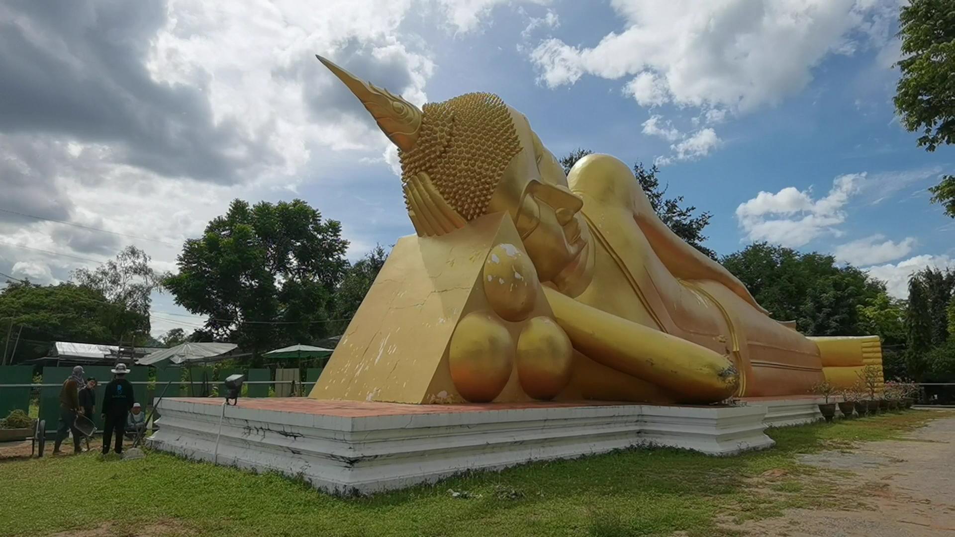 ส่วนด้านหลังพระปรางค์ใหญ่ ยังมีพระนอน ที่สร้างเมื่อ พ.ศ. 2030-2035 เป็นลักษณะหินทรายแดง มีความยาว 15 วา ทำการบูรณะซ่อมแซมใหม่ โดยการสร้างครอบองค์จริง องค์ที่สร้างใหม่ มีความยาว 30 วา ทำการบูรณะโดยท่านเจ้าพระคุณ พระมหาสมณวงค์ (แท่น) ครั้งสุดท้ายเมื่อ พ.ศ.2515 โดยกรมศิลปากรเป็นผู้ดำเนินการ และทำการบูรณะเสร็จเรียบร้อยเมื่อ พ.ศ.2547 ในสมัยของพระครูมงคลเจติยานรักษ์ (พระไฝ นาคาเสโน) เป็นเจ้าอาวาส.